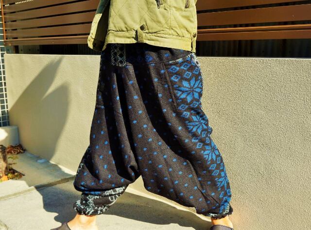 ☆エスニック柄の男女兼用ウール サルエルパンツです