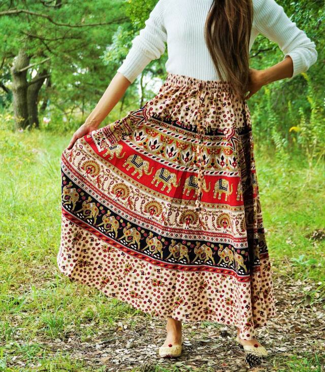 アジアン総柄のロングスカートです