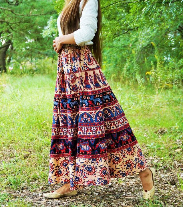 アジアン総柄のロングスカートです