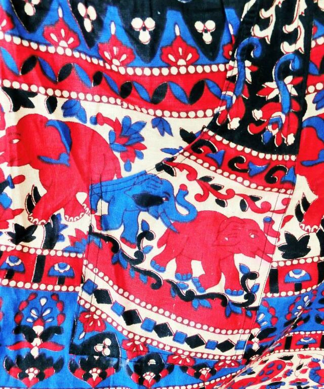 【ネパール】アジアン柄 ロングスカート フリーサイズ (ベージュ) ポケット×2
