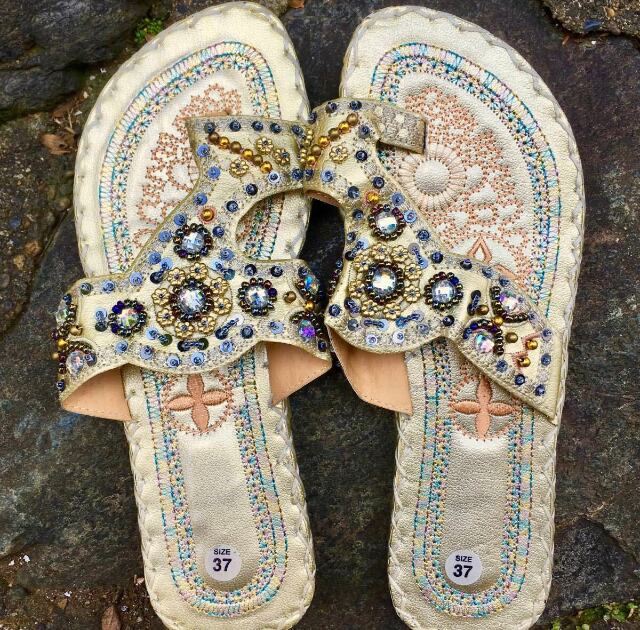 ハンドメイドの刺繍&ビーズのゴージャストングサンダルです!