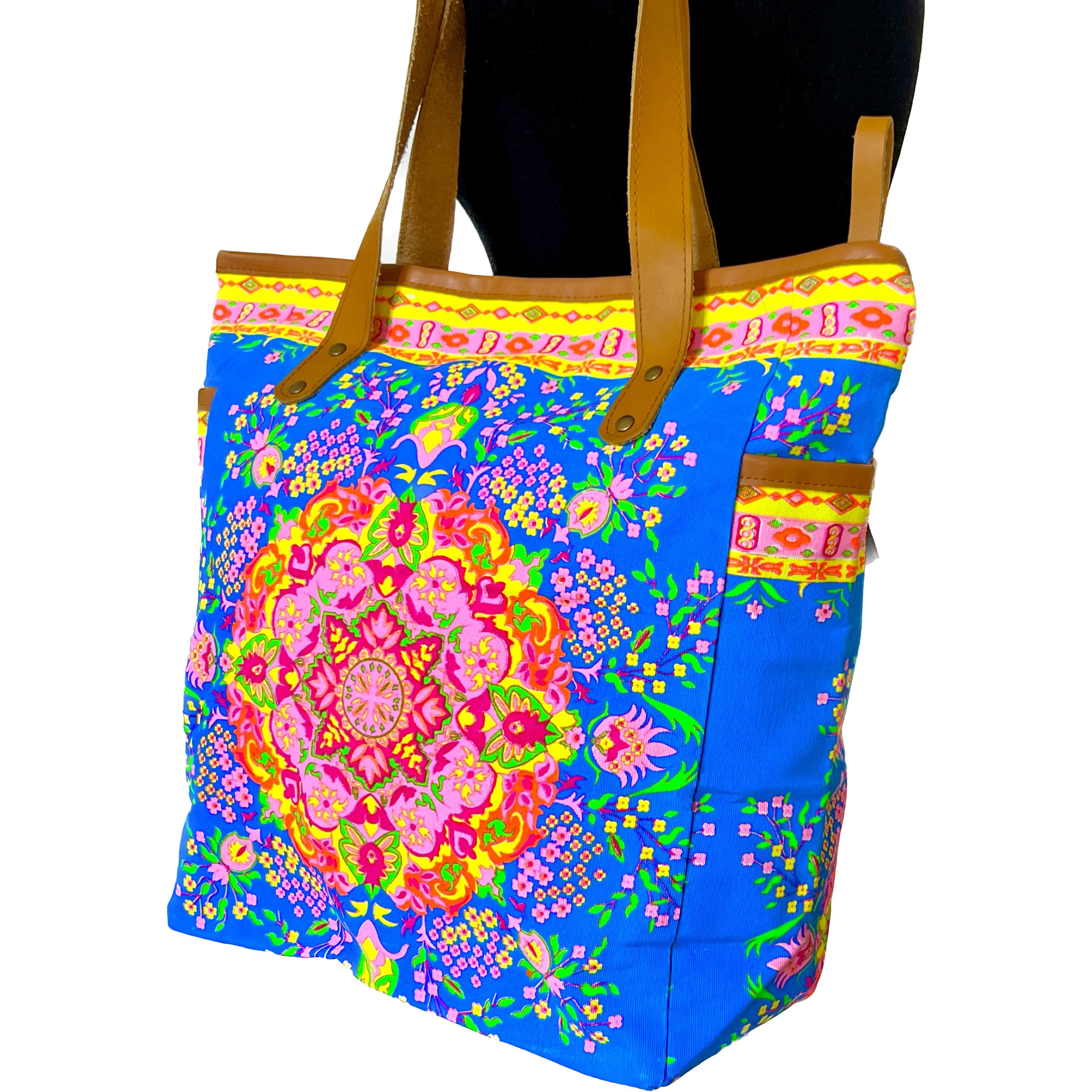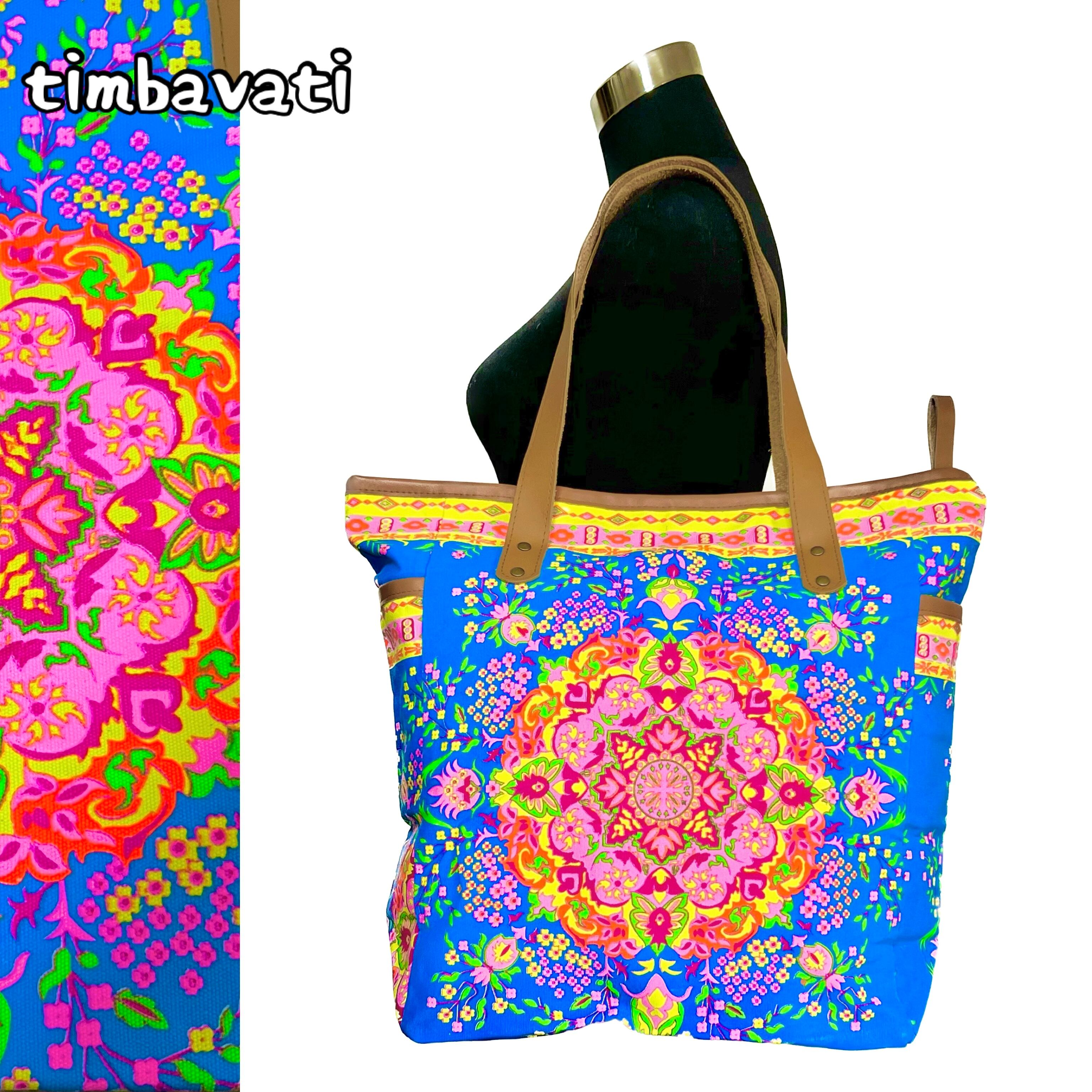色鮮やかなネオンカラーのエスニックトートバッグ