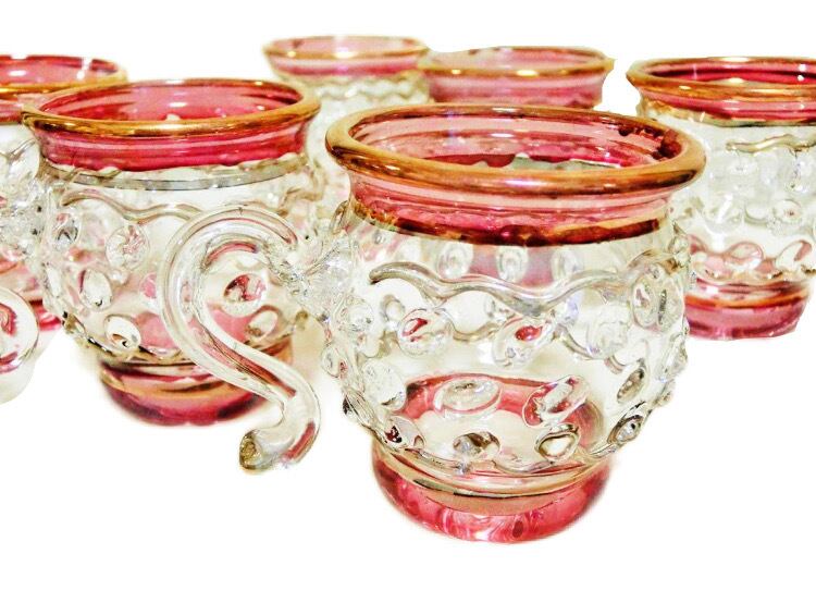 【エジプト】ガラス デキャンタ&グラス6個セット*ピンク *