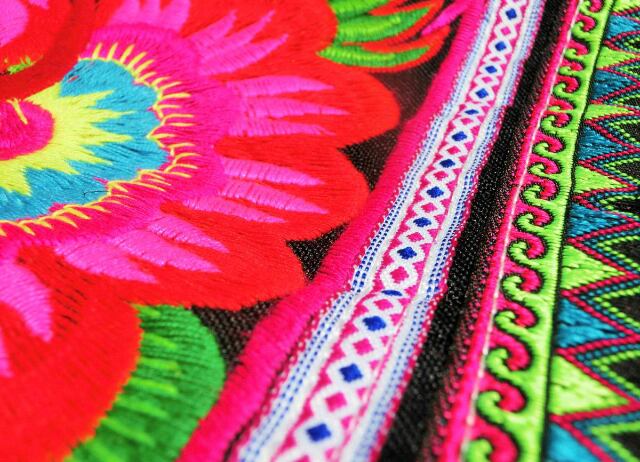 【タイ】花モン族 刺繍&ミラーワーク クラッチバッグ&ポーチ
