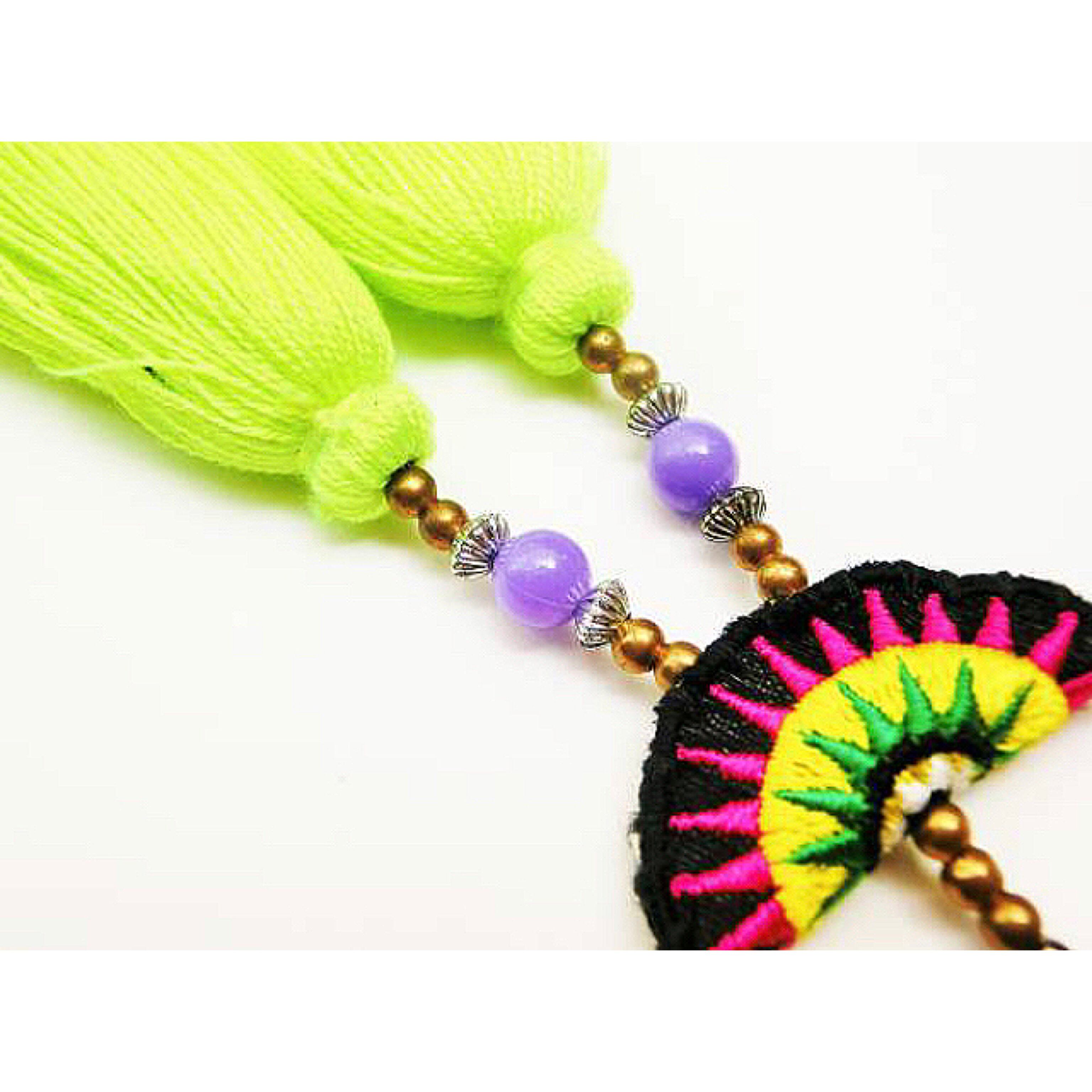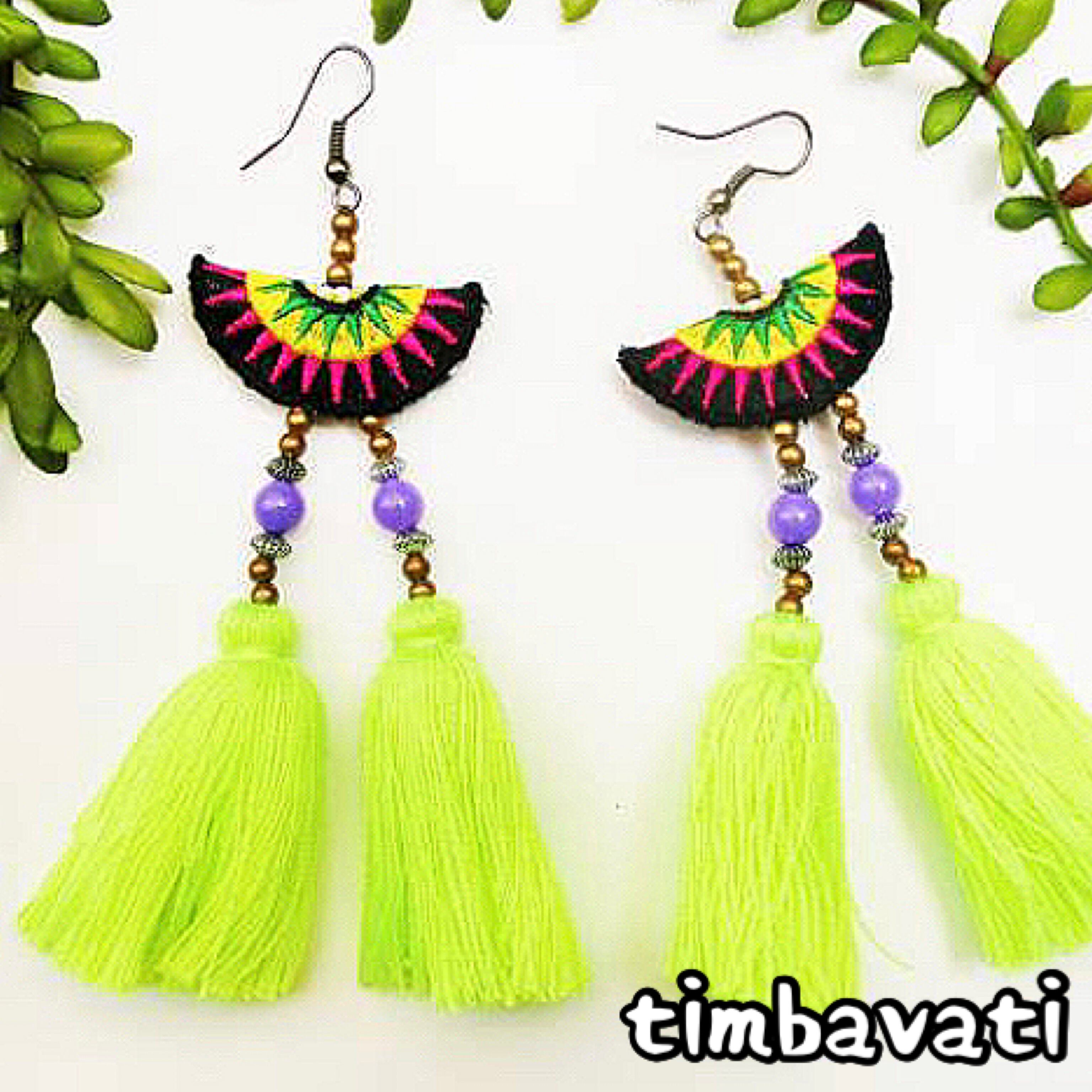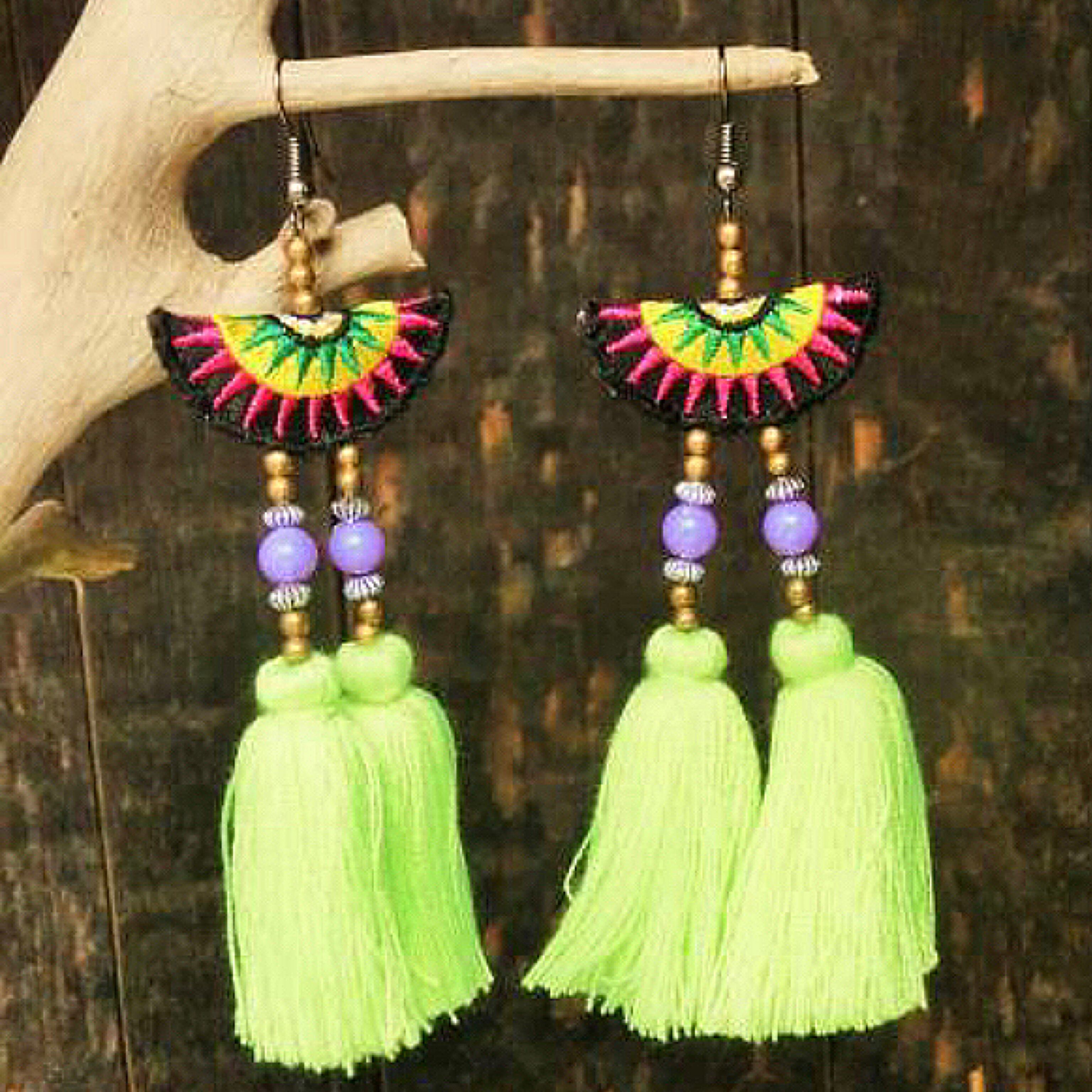 【タイ】モン族 刺繍&ビーズ フリンジピアス *ネオンカラー*