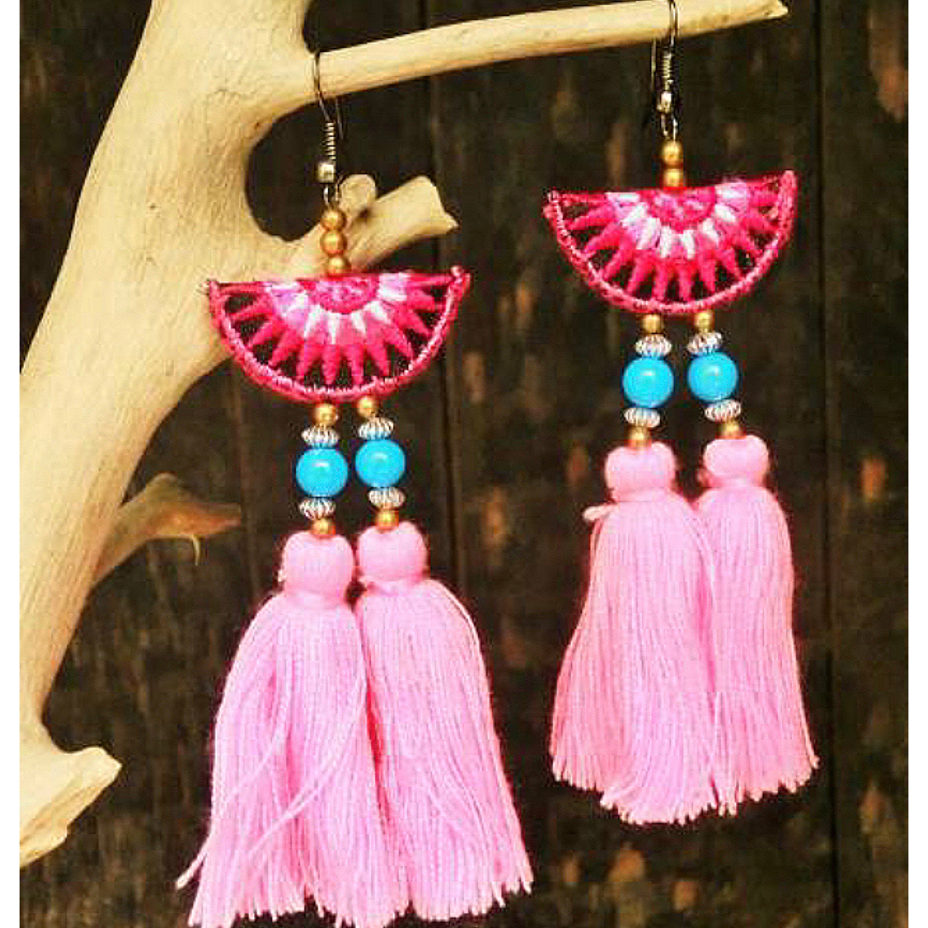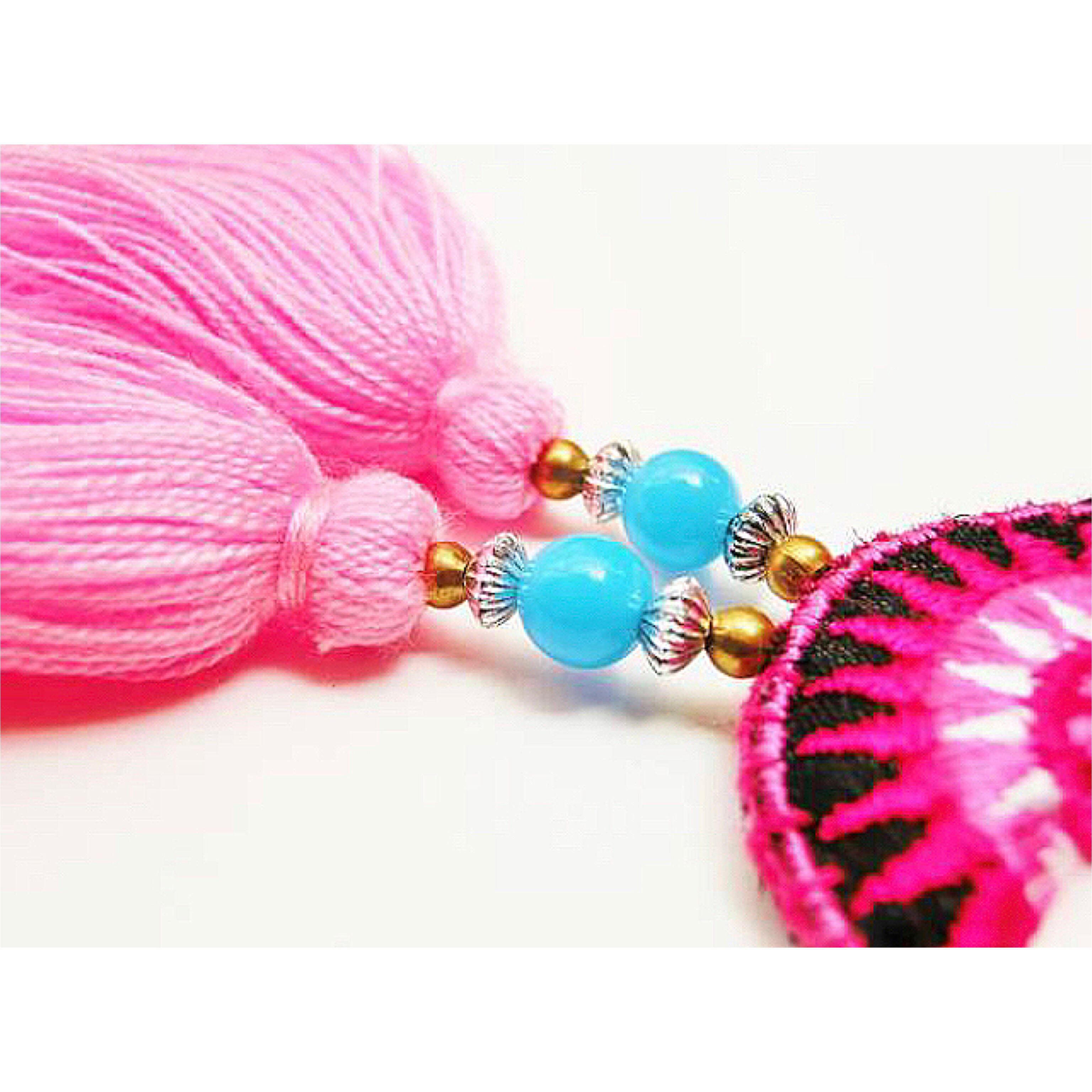 【タイ】モン族 刺繍&ビーズ フリンジピアス *ネオンカラー*