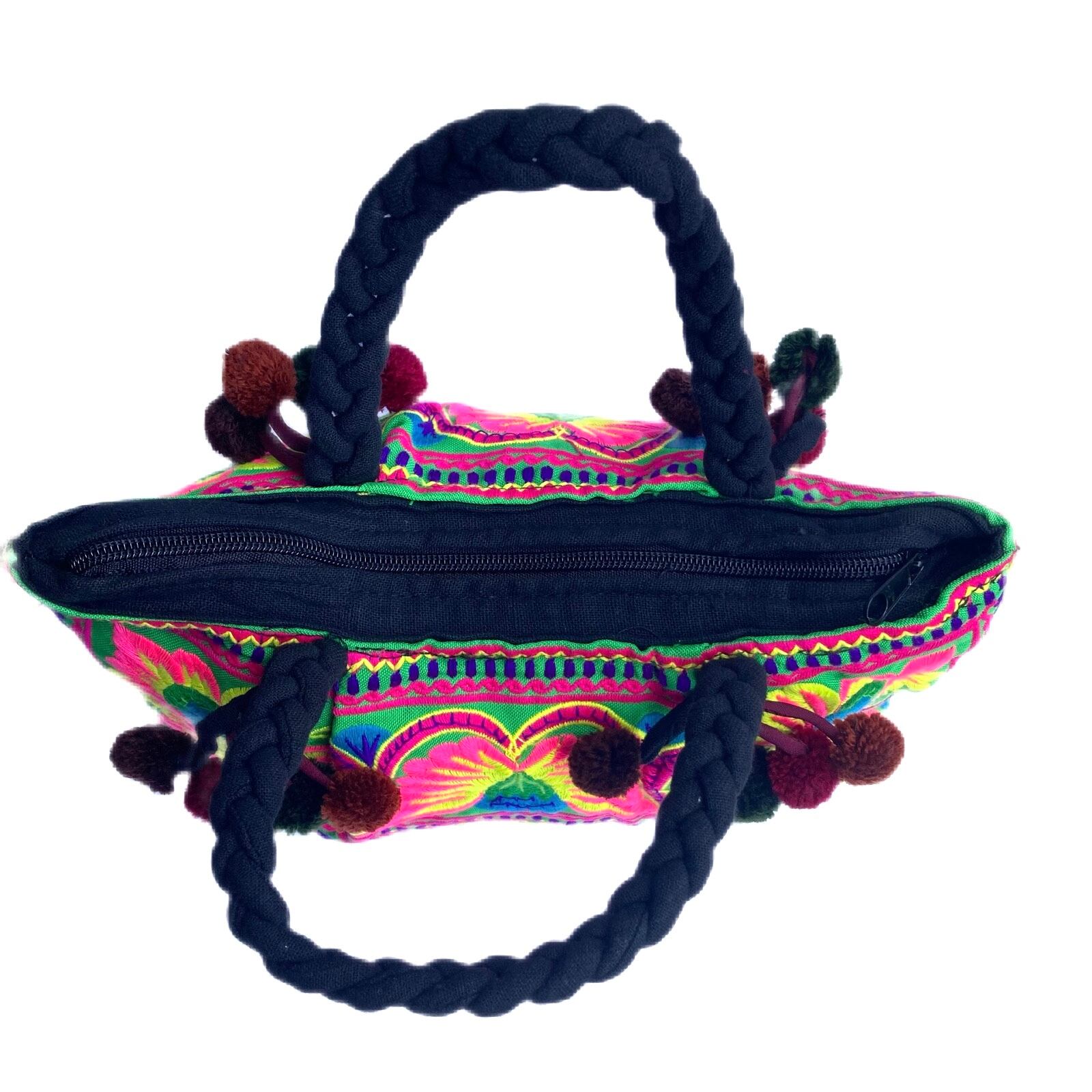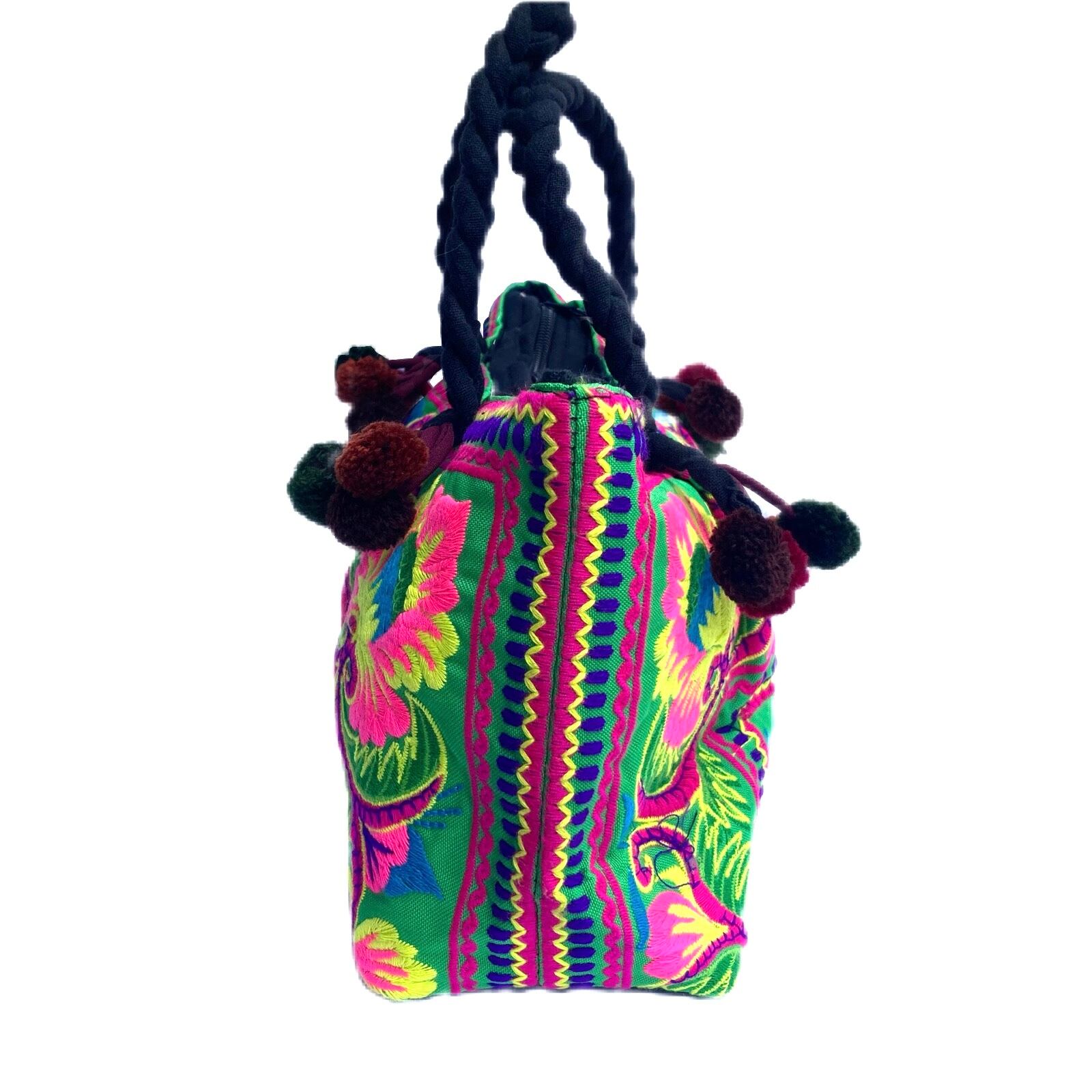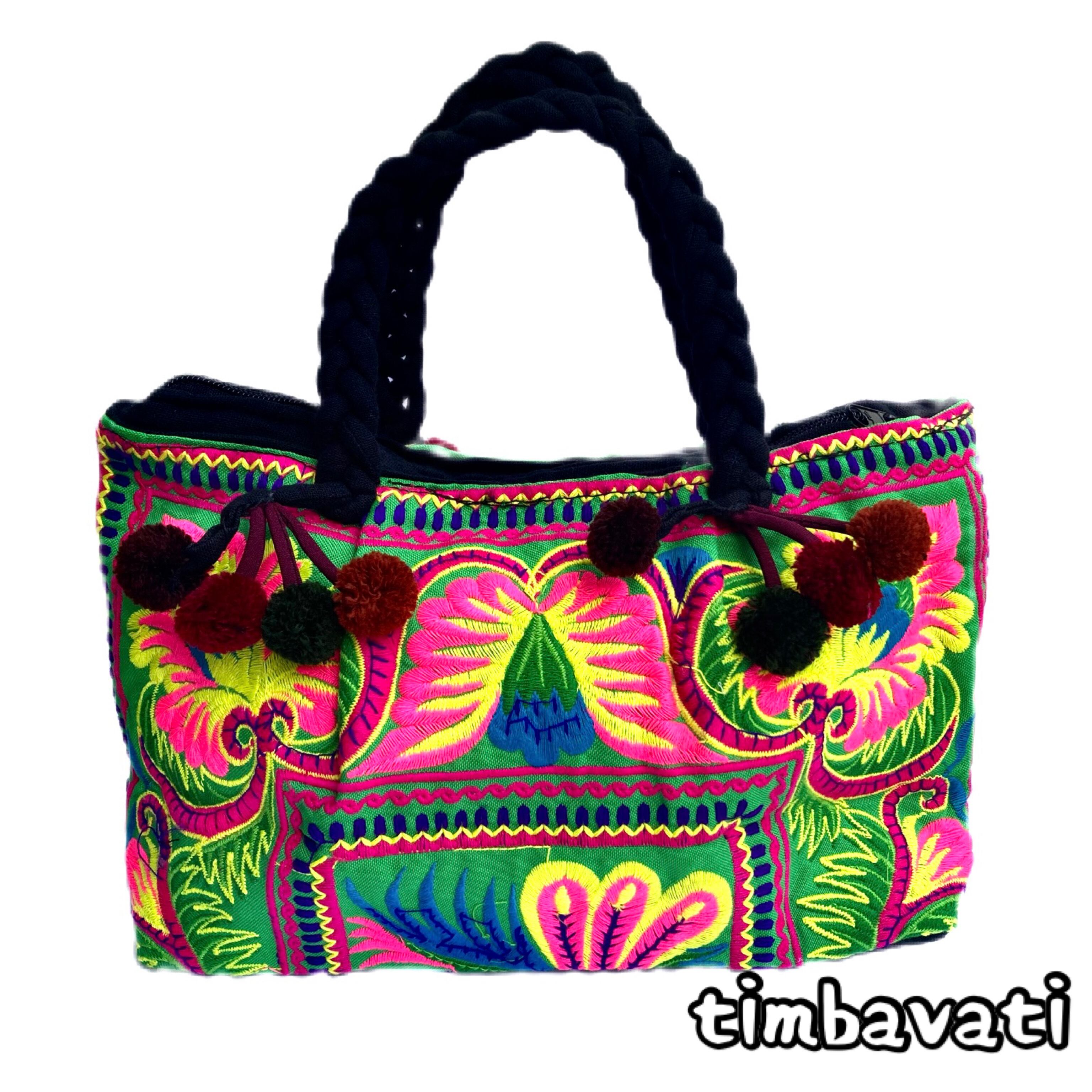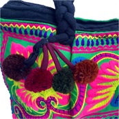 【タイ】モン族 刺繍 ポンポン ハンドバッグ