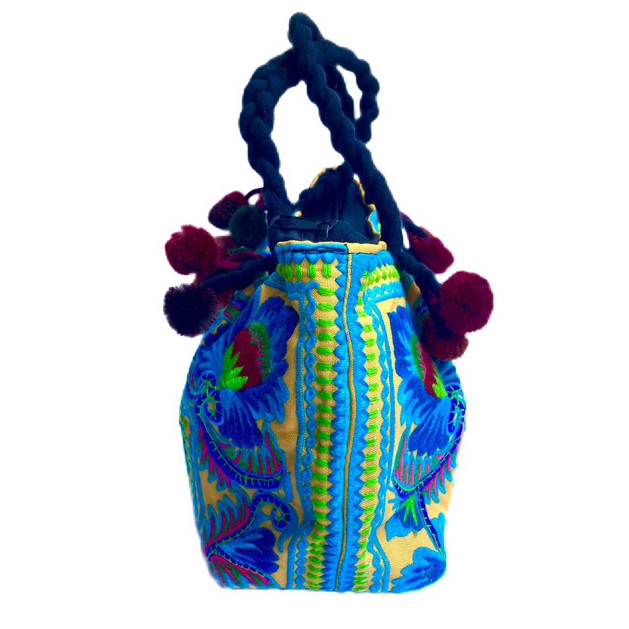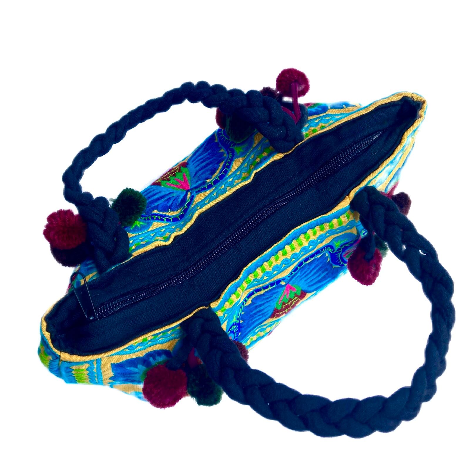 【タイ】モン族 刺繍 ポンポン ハンドバッグ