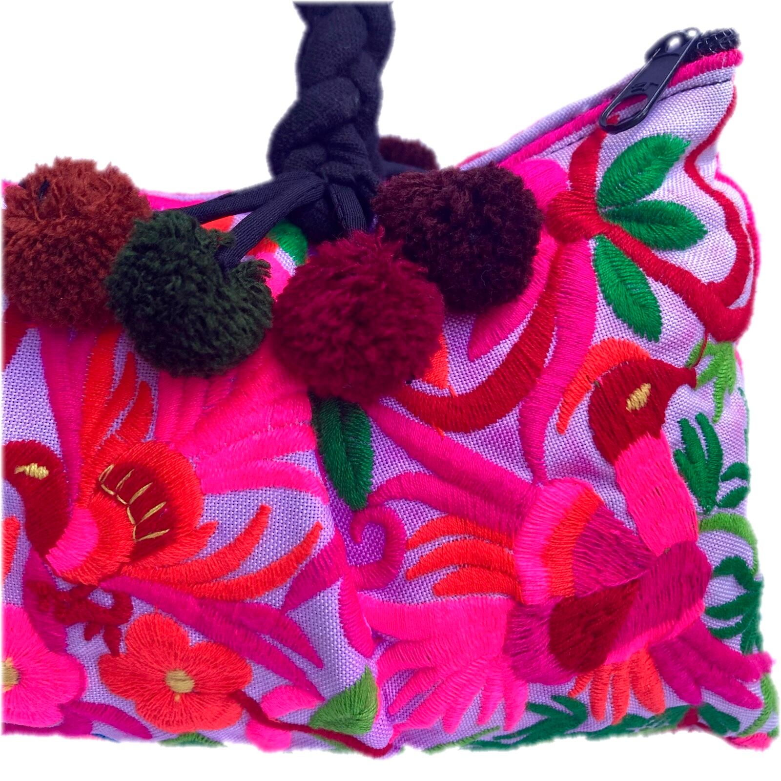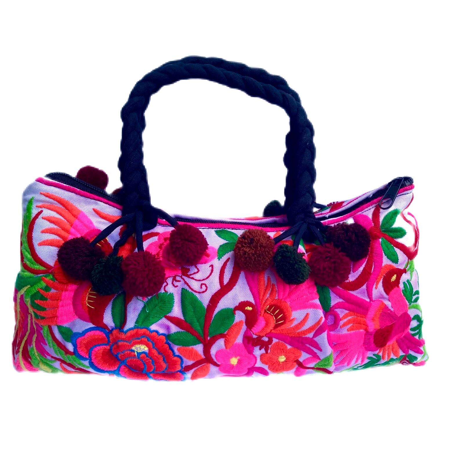 【タイ】モン族 刺繍 ポンポン ハンドバッグ
