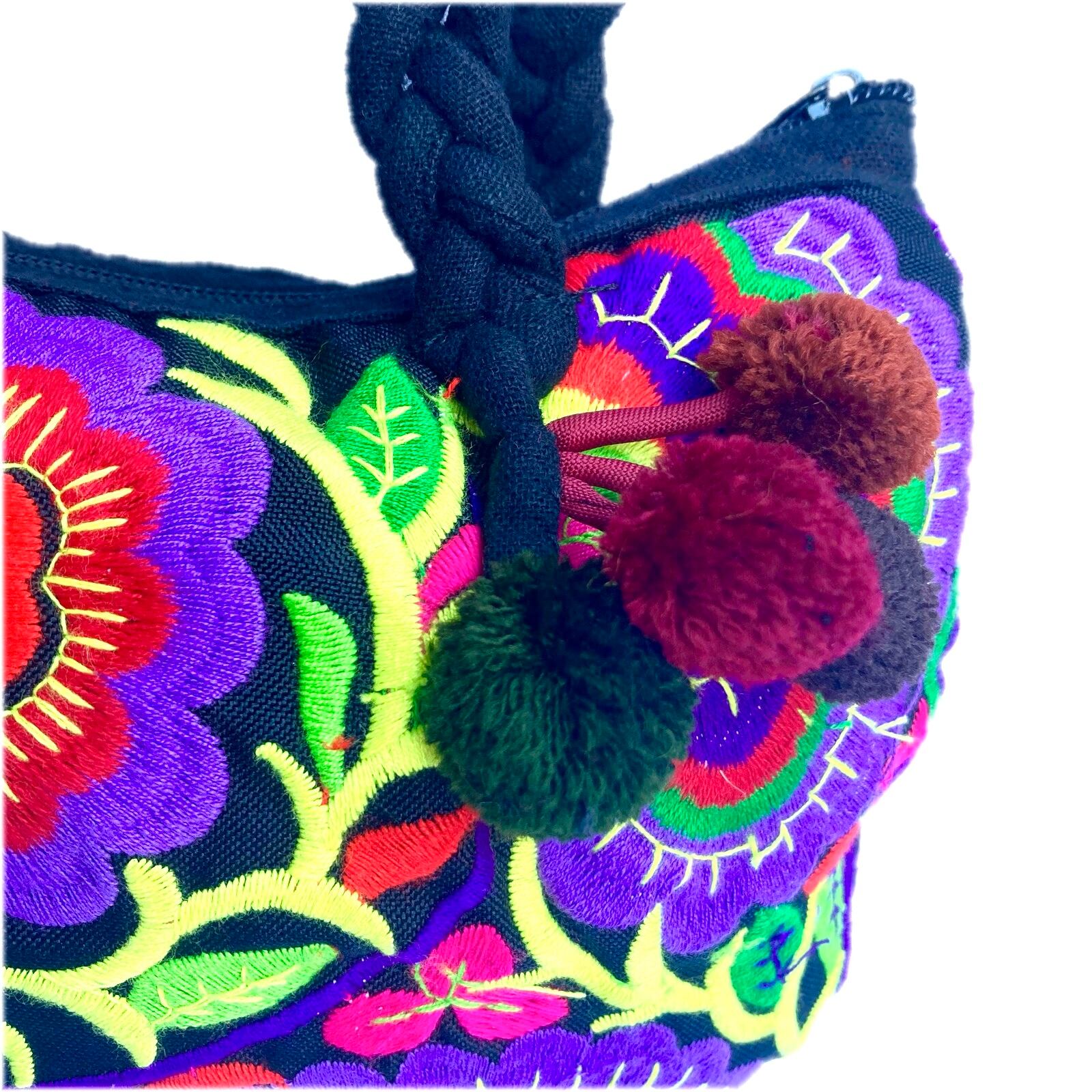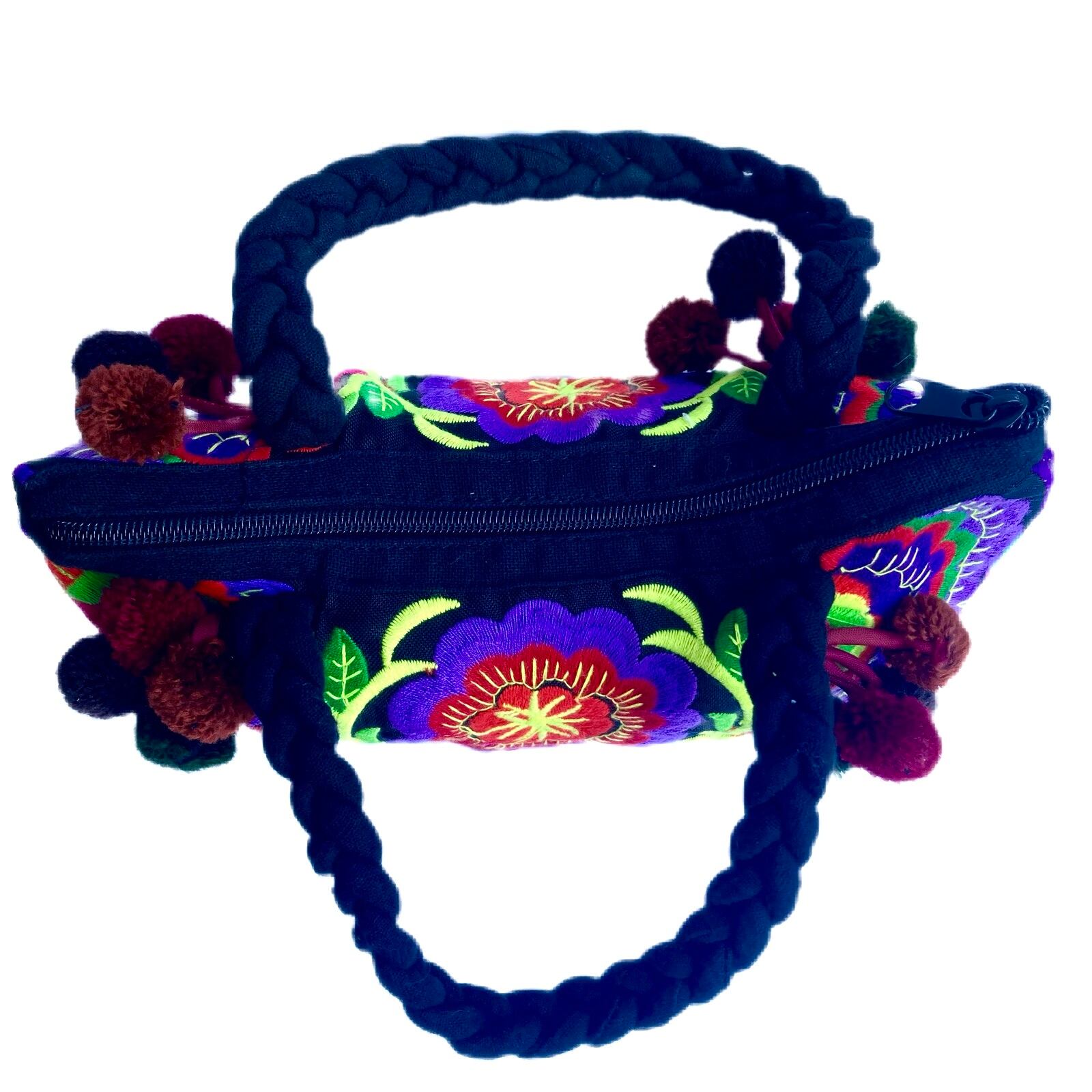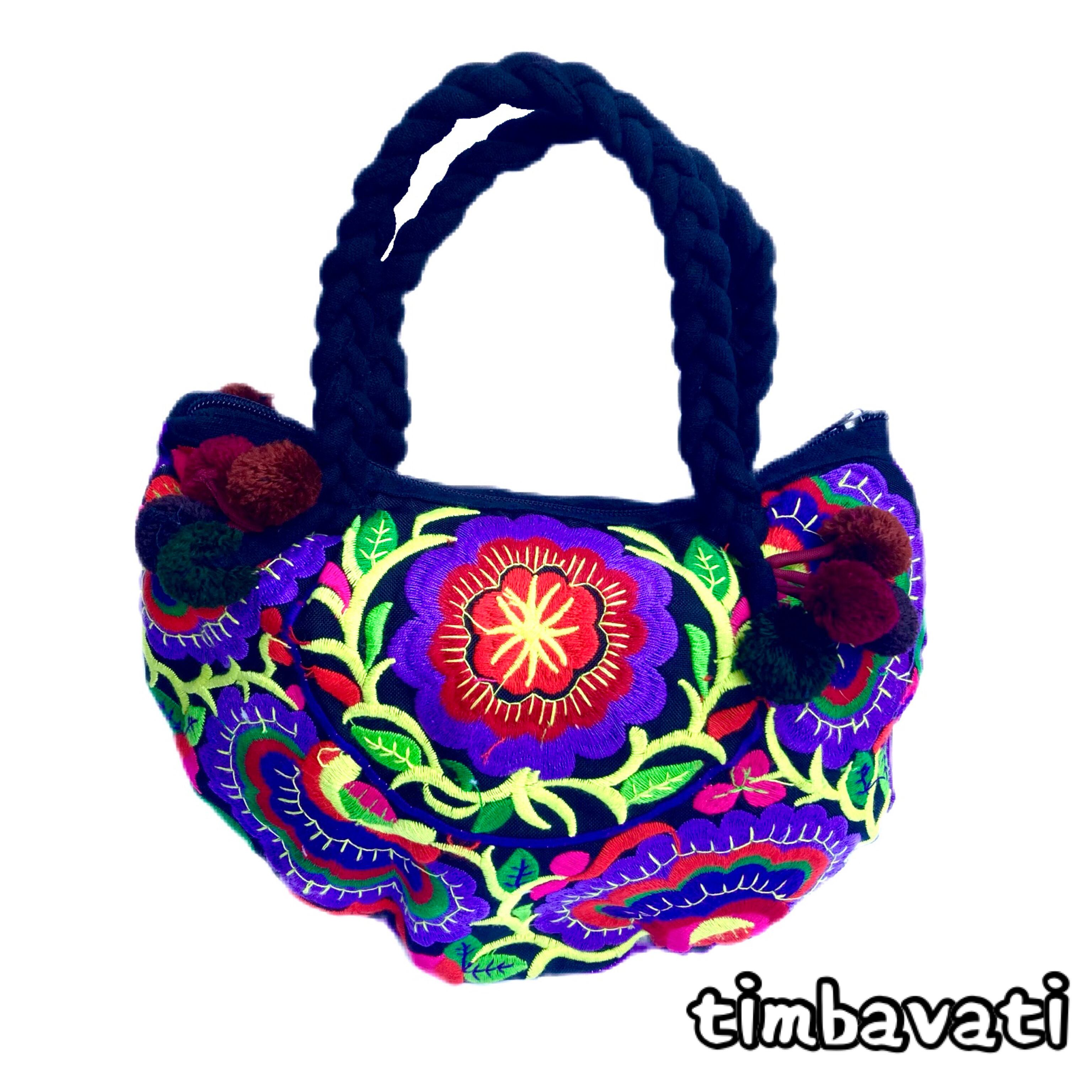 【タイ】モン族 刺繍 ポンポン ハンドバッグ