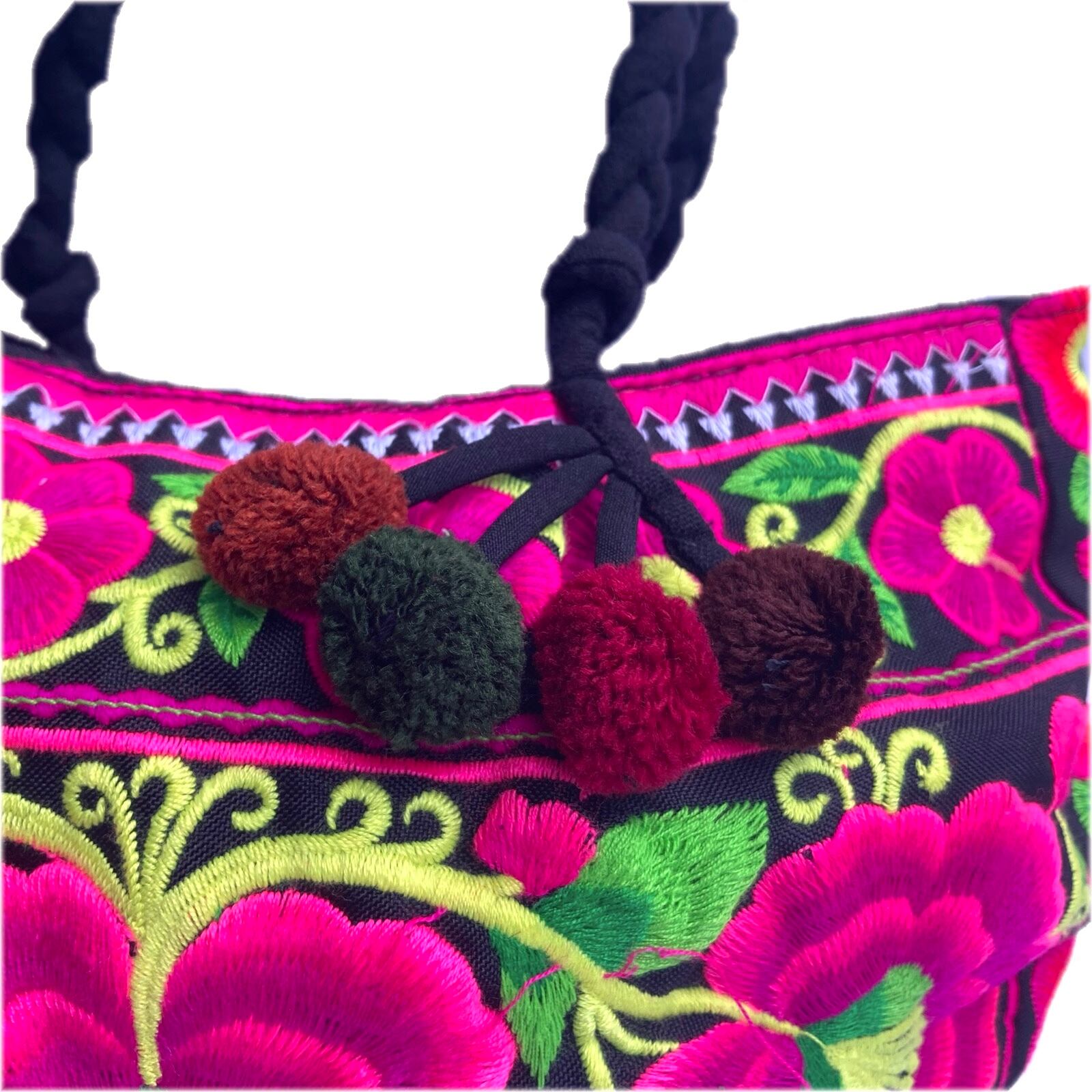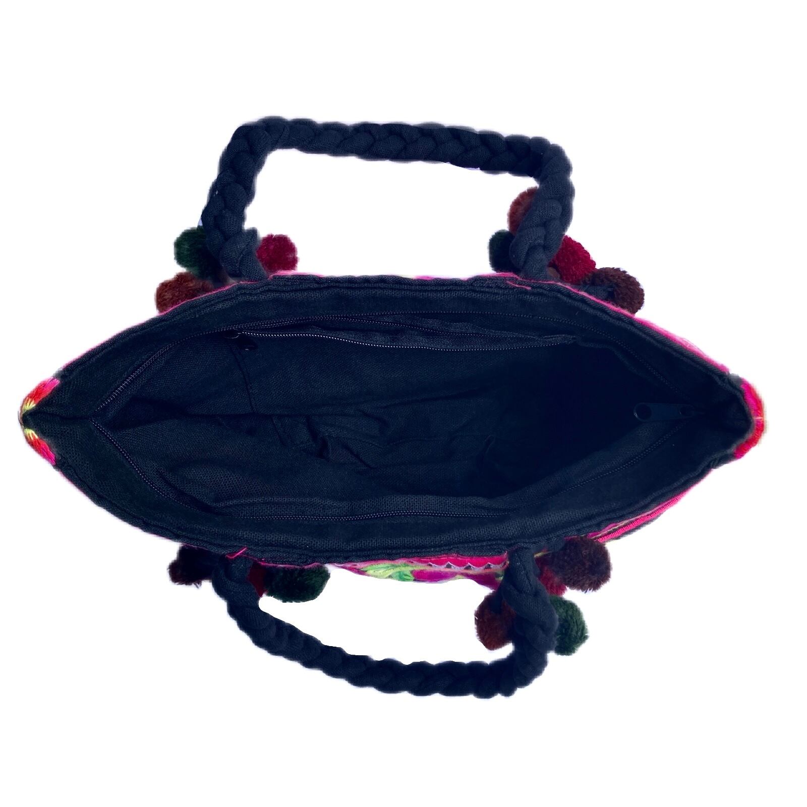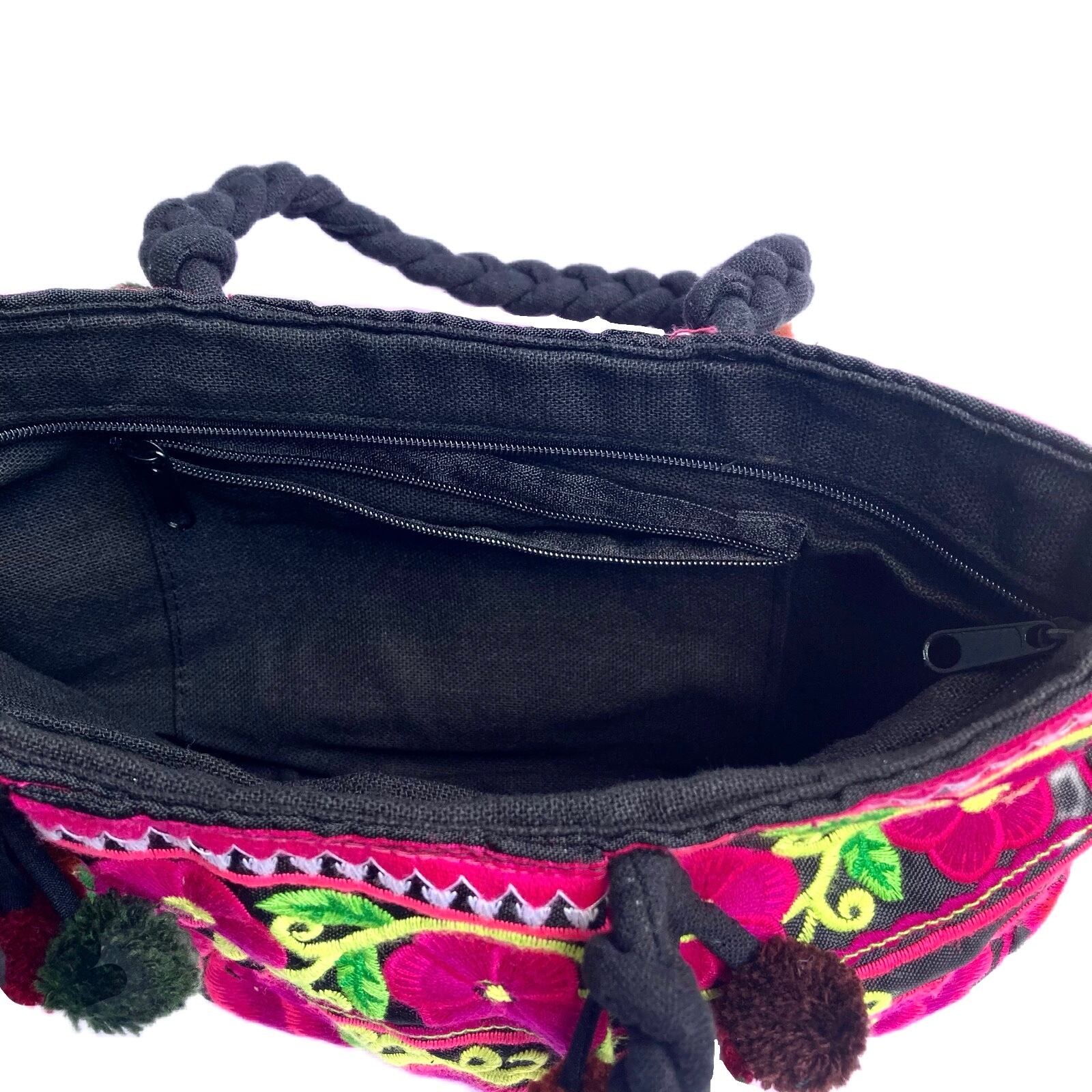 【タイ】モン族 刺繍 ポンポン ハンドバッグ