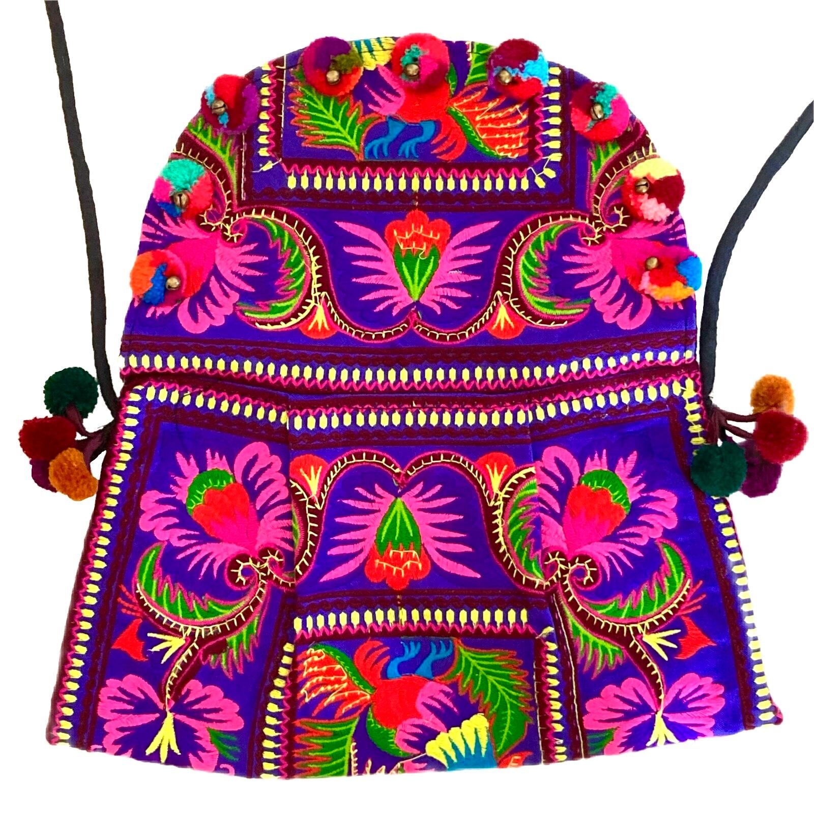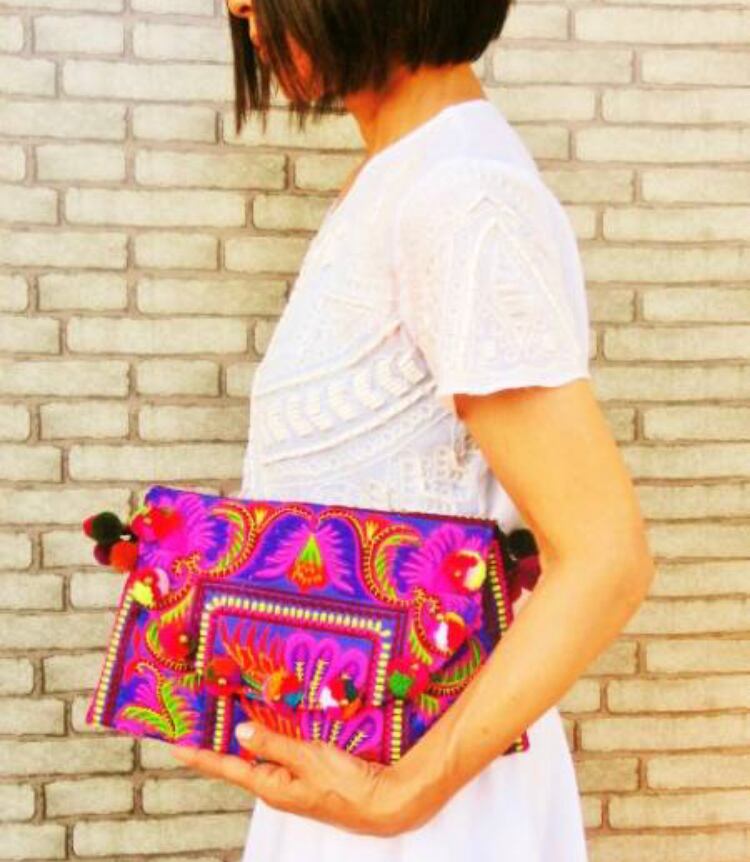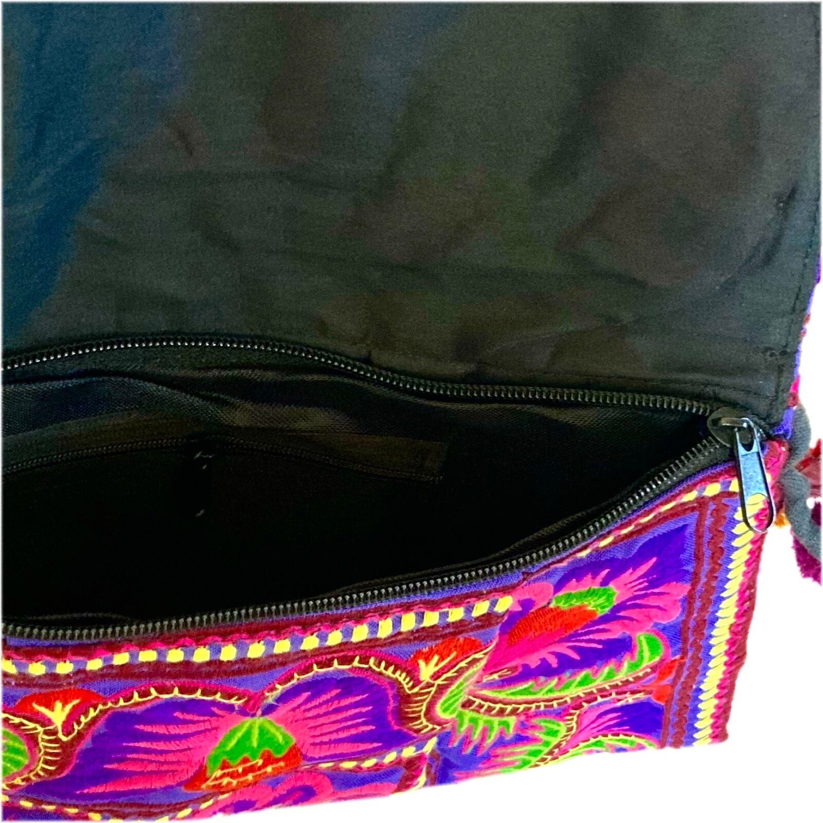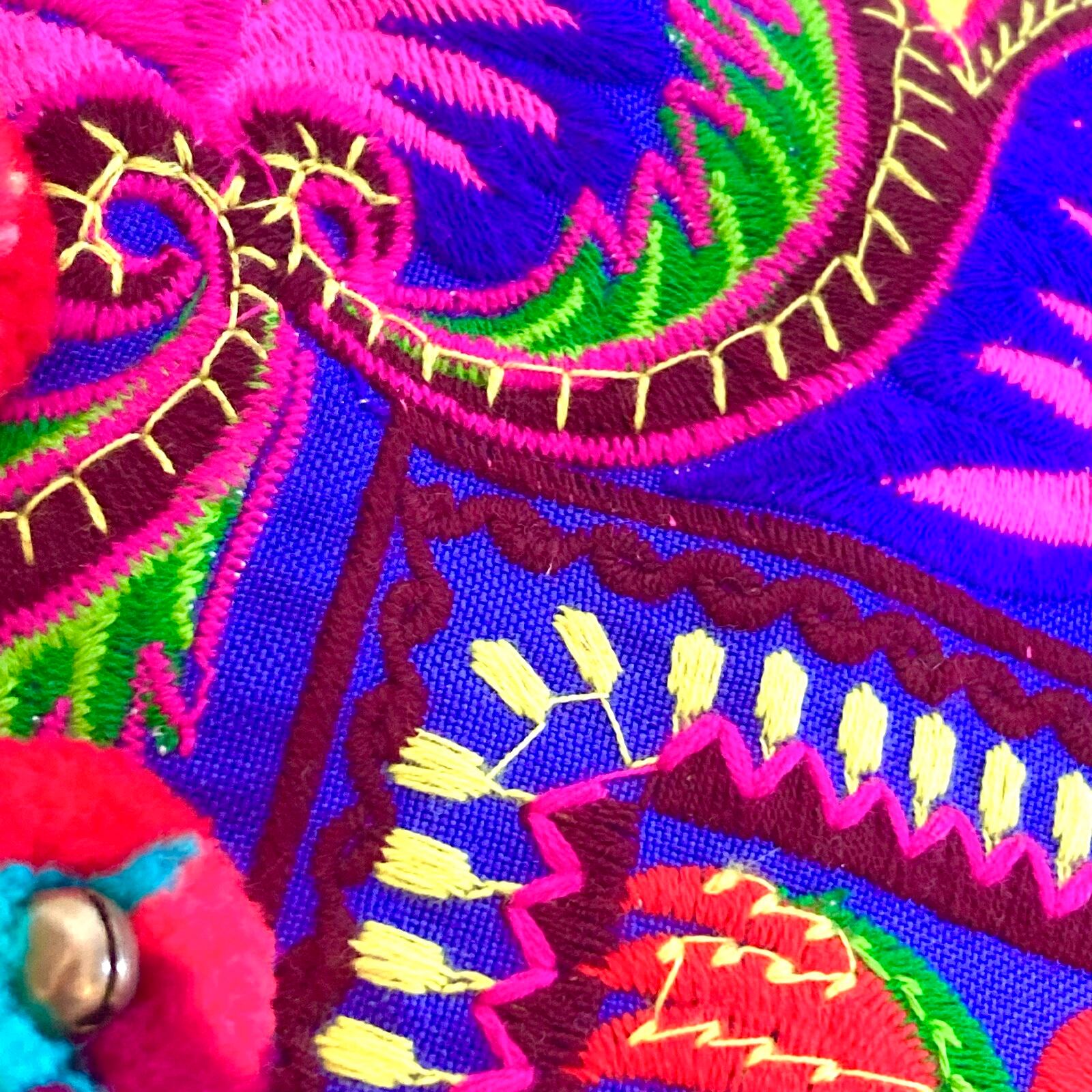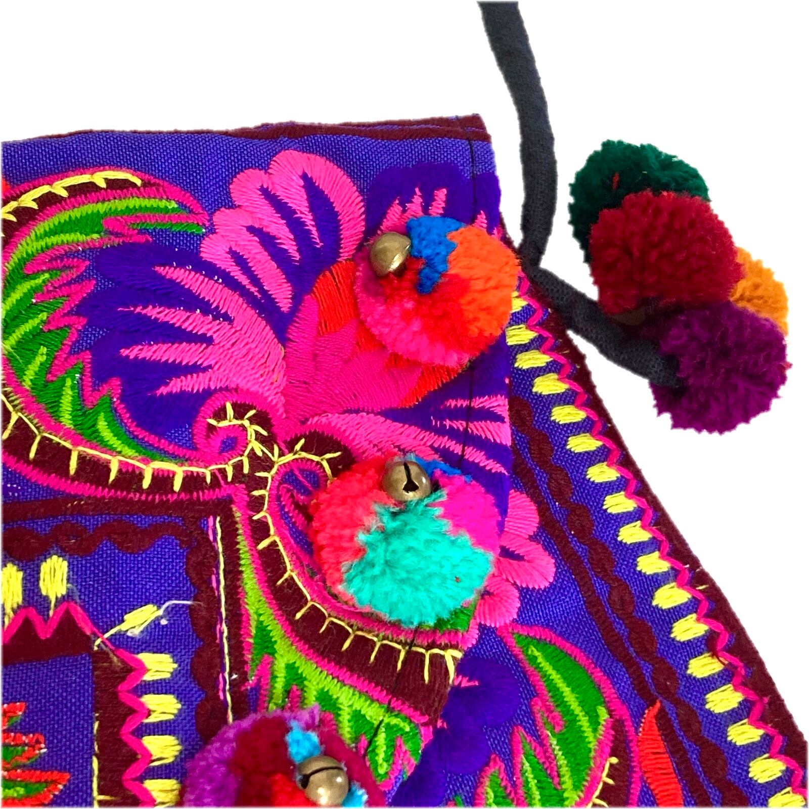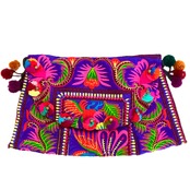 【タイ】モン族 刺繍&ポンポン 2WAYバッグ (クラッチバッグ ショルダーバッグ)