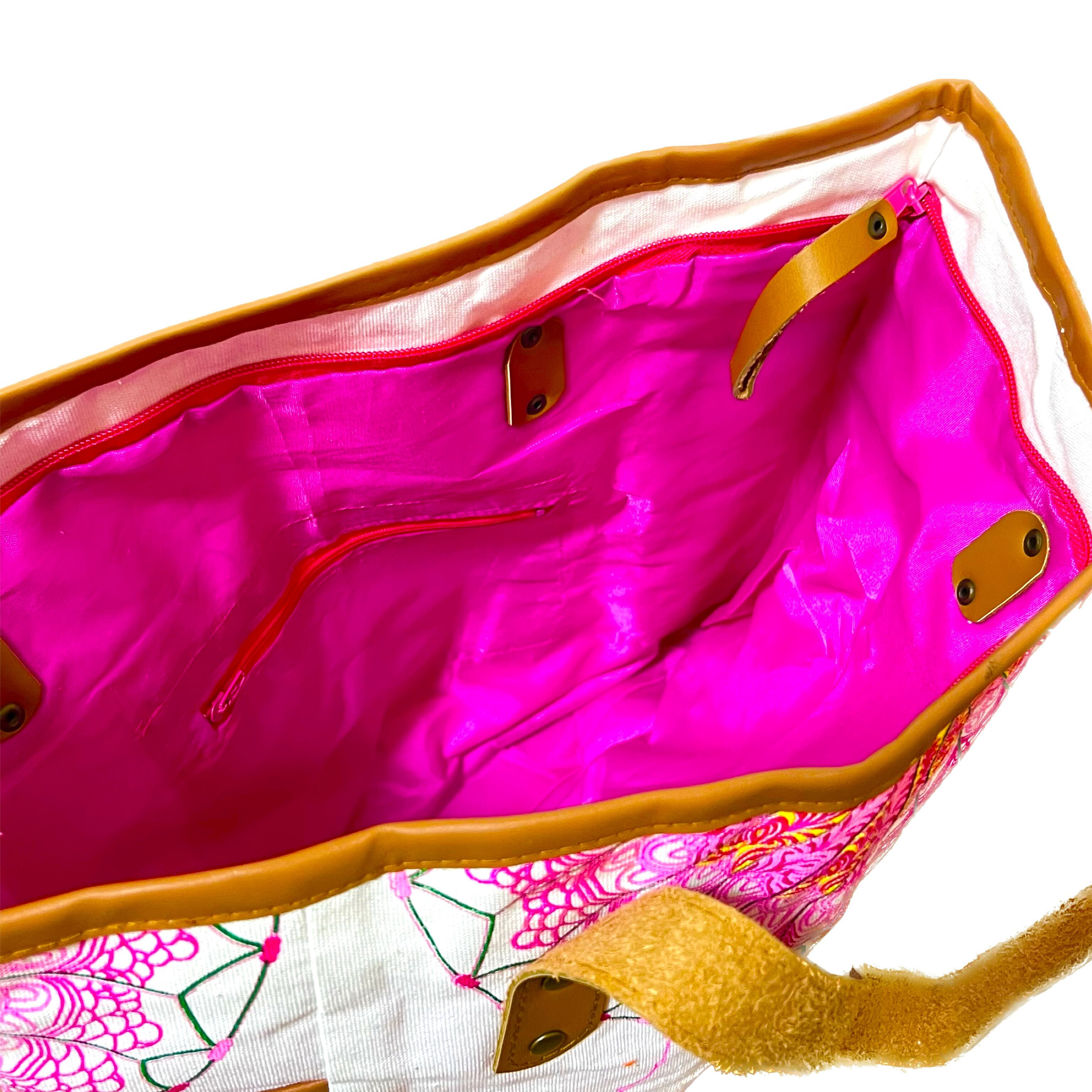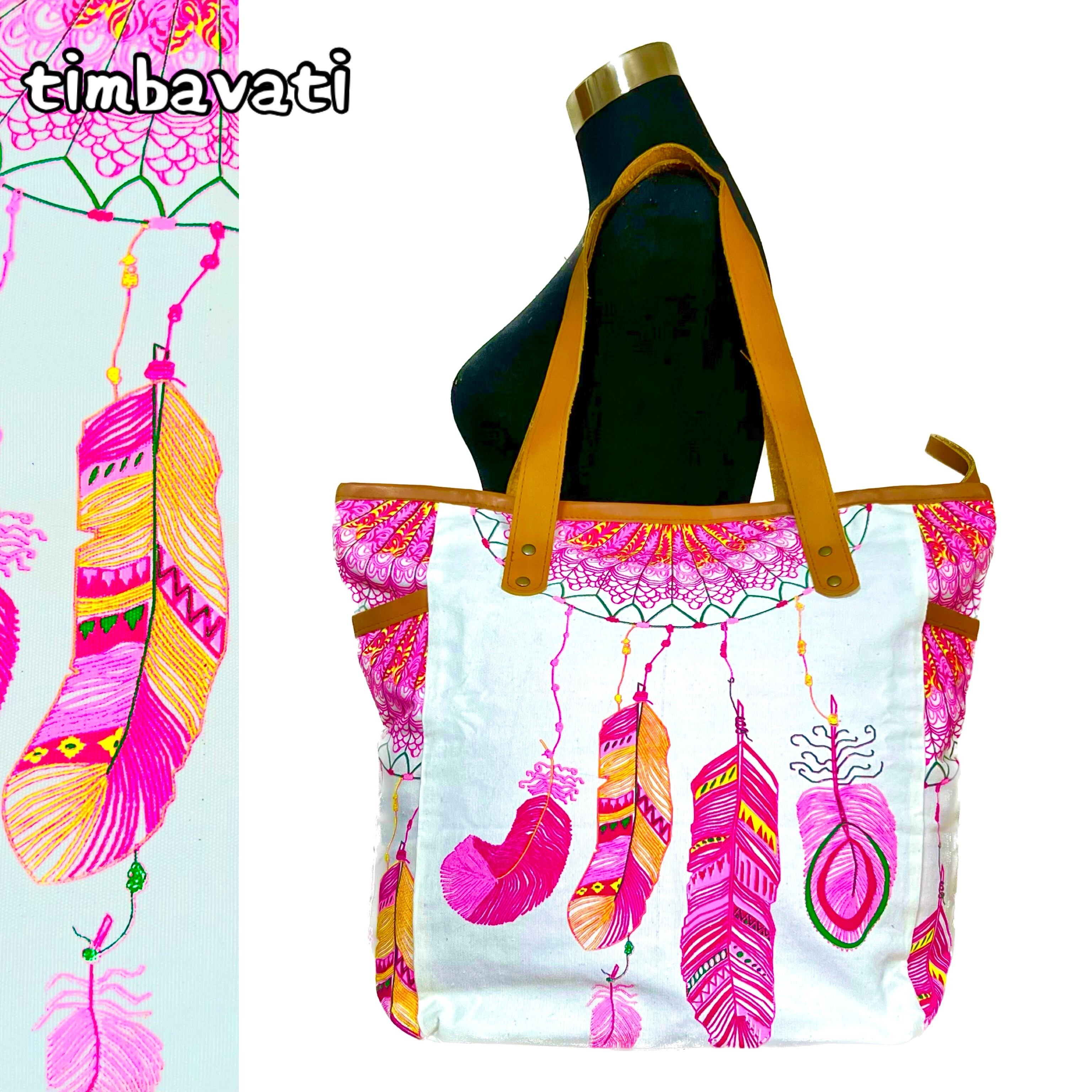 色鮮やかなネオンカラーのエスニックトートバッグ