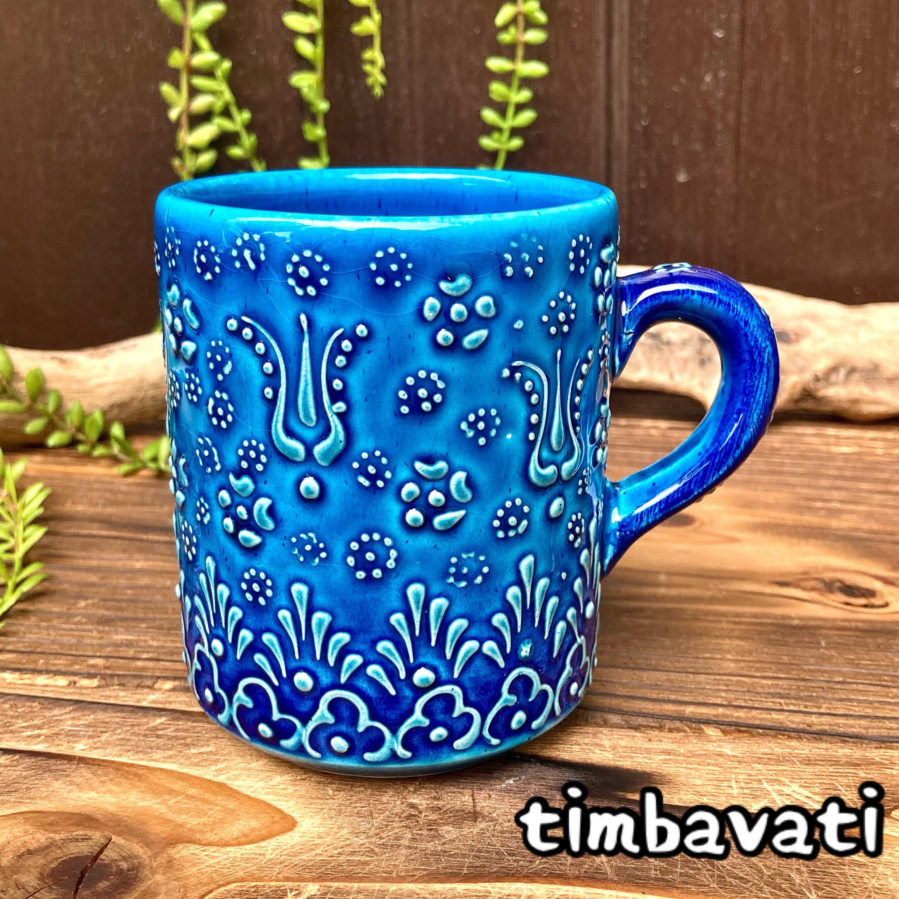 【トルコ陶器】手描き マグカップ*ブルー*キュタフヤ陶器