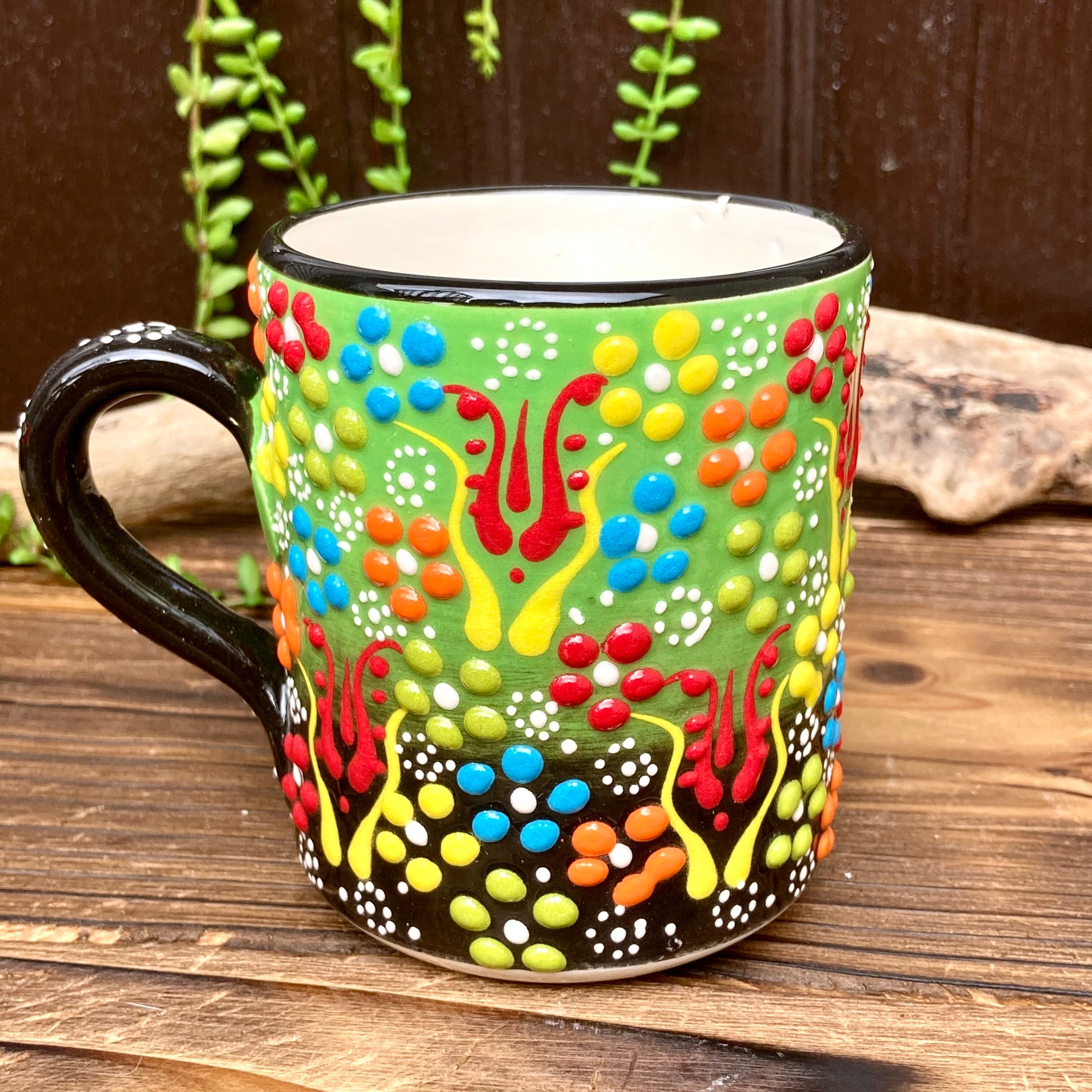 トルコの職人が1点1点絵付けしたカラフルなトルコセラミック陶器のマグカップです
