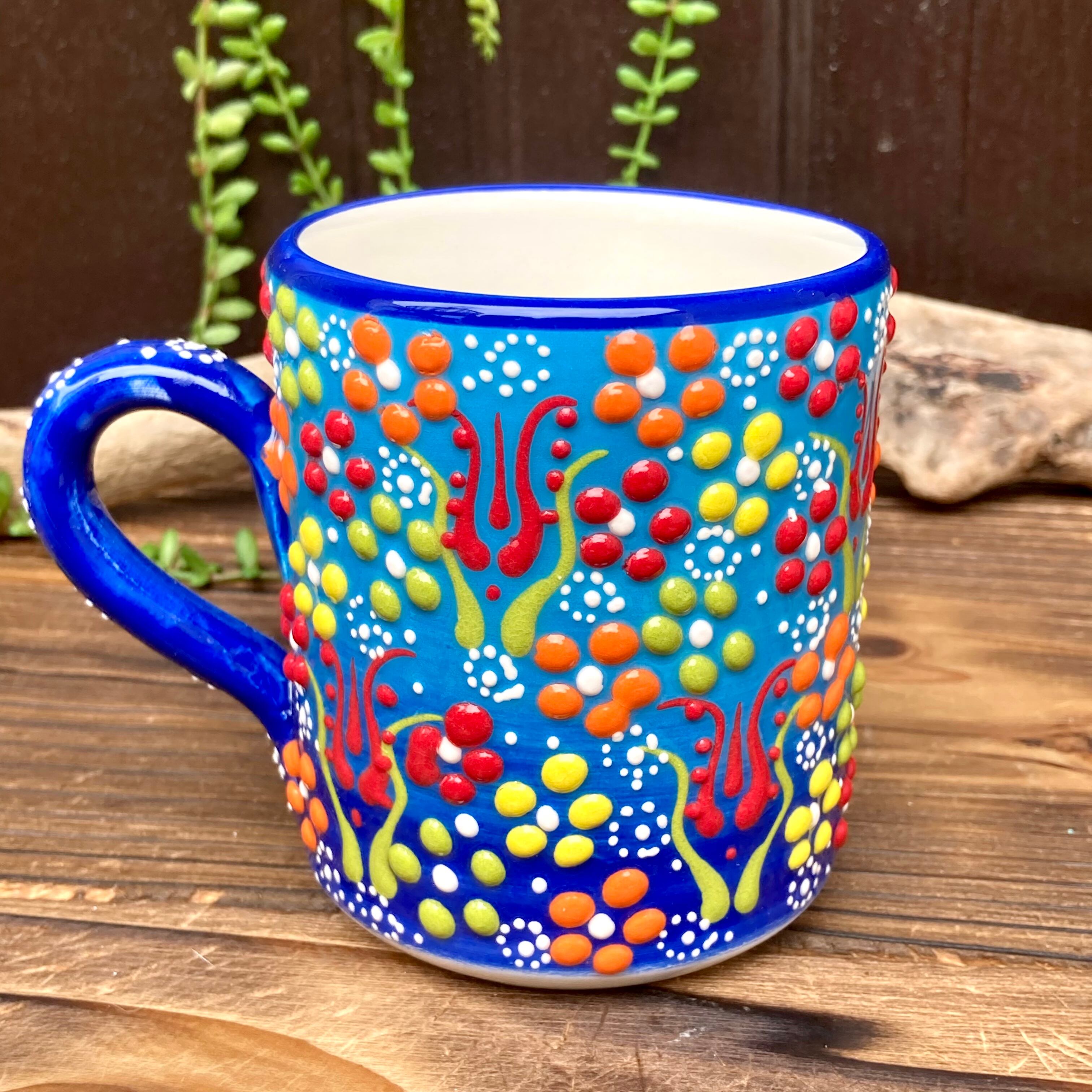 トルコの職人が1点1点絵付けしたカラフルなトルコセラミック陶器のマグカップです