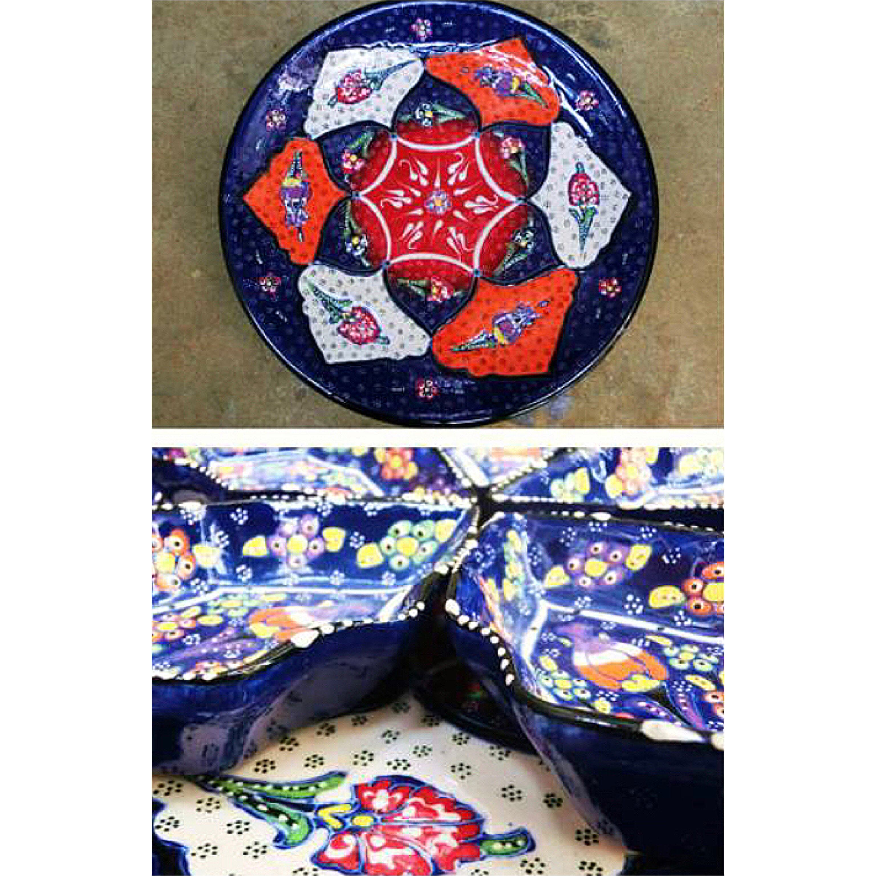 トルコの職人が1点1点絵付けしたかわいいトルコ陶器の大皿&小鉢セット