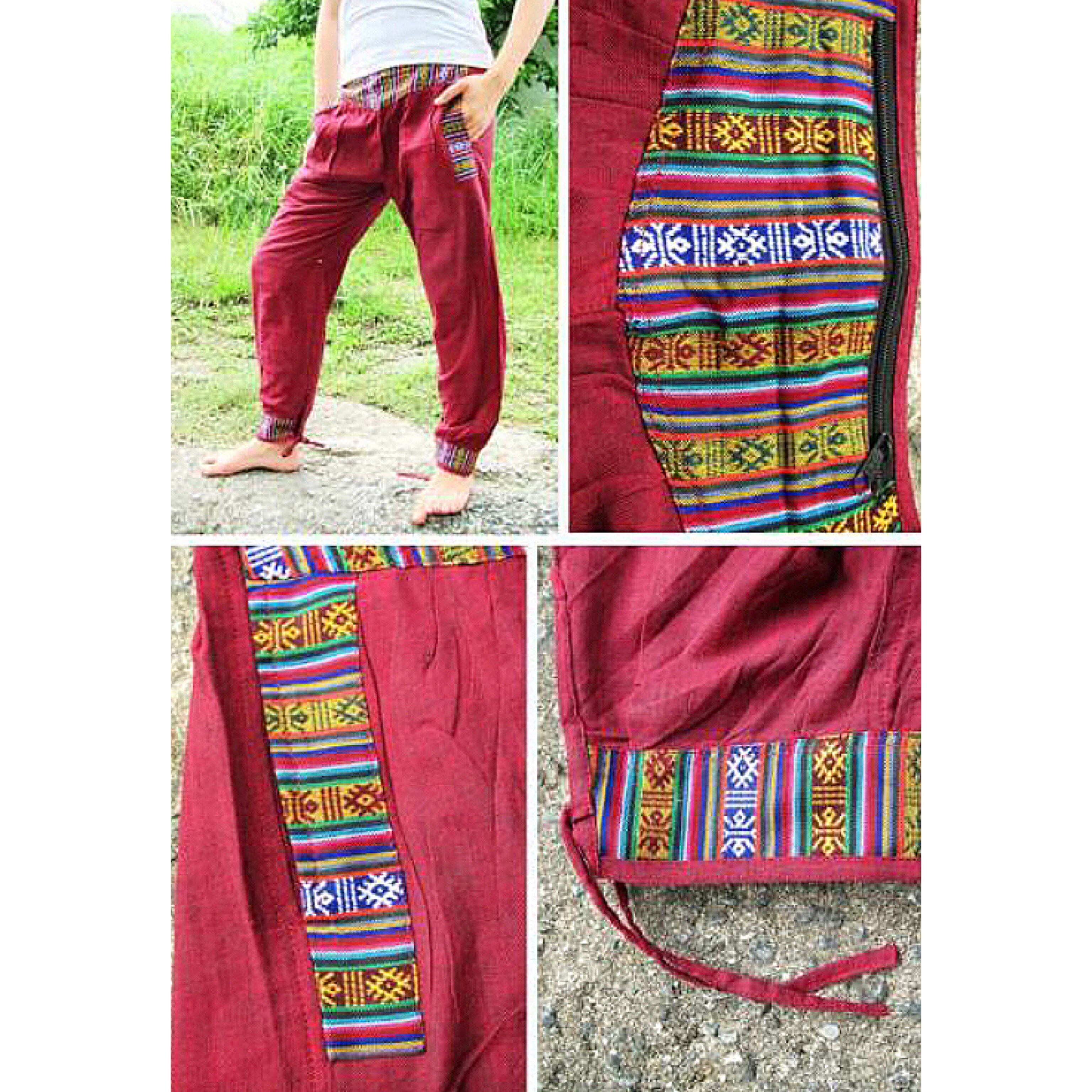 【ネパール】ゲリコットン (ゲリ織) ボトムス *ダークレッド*