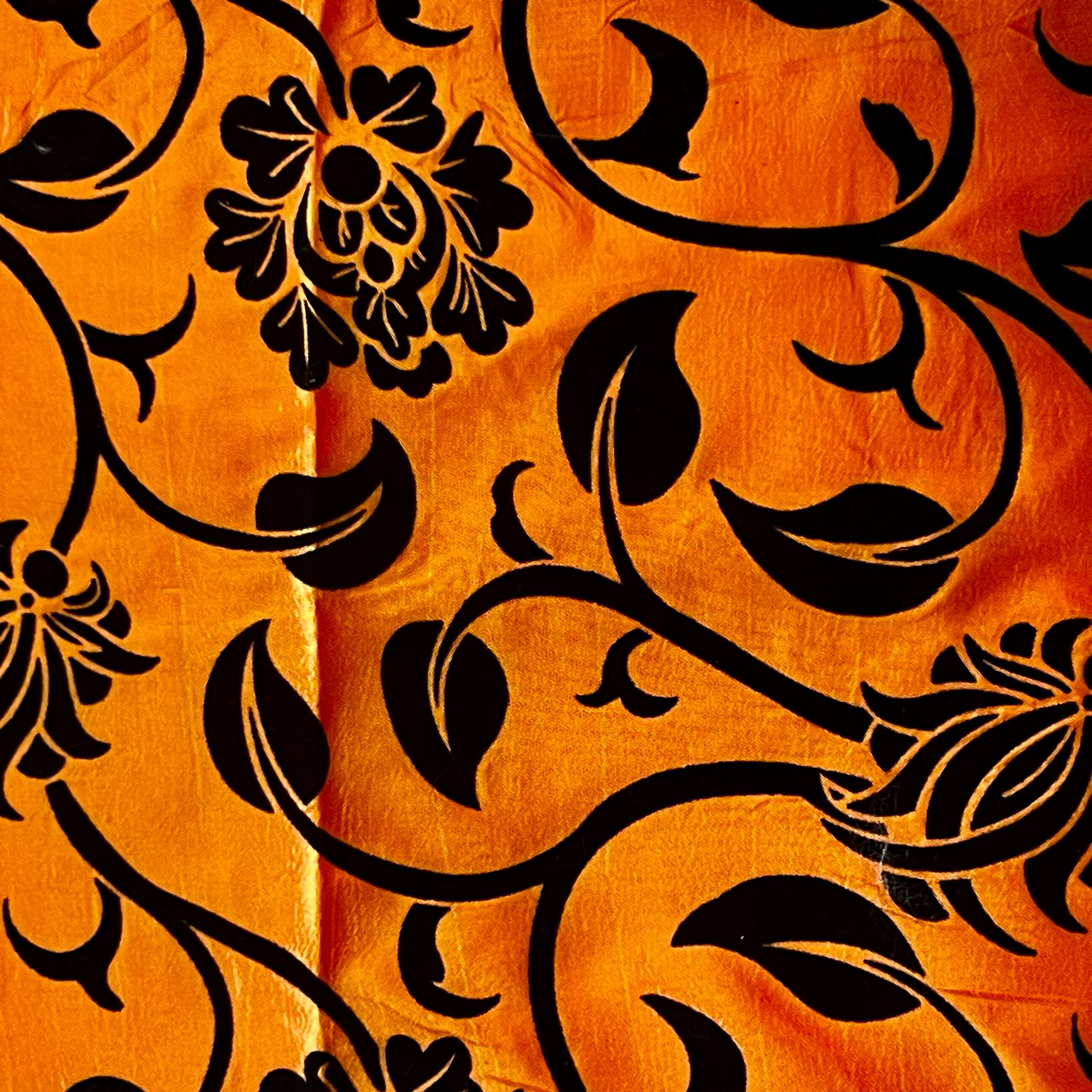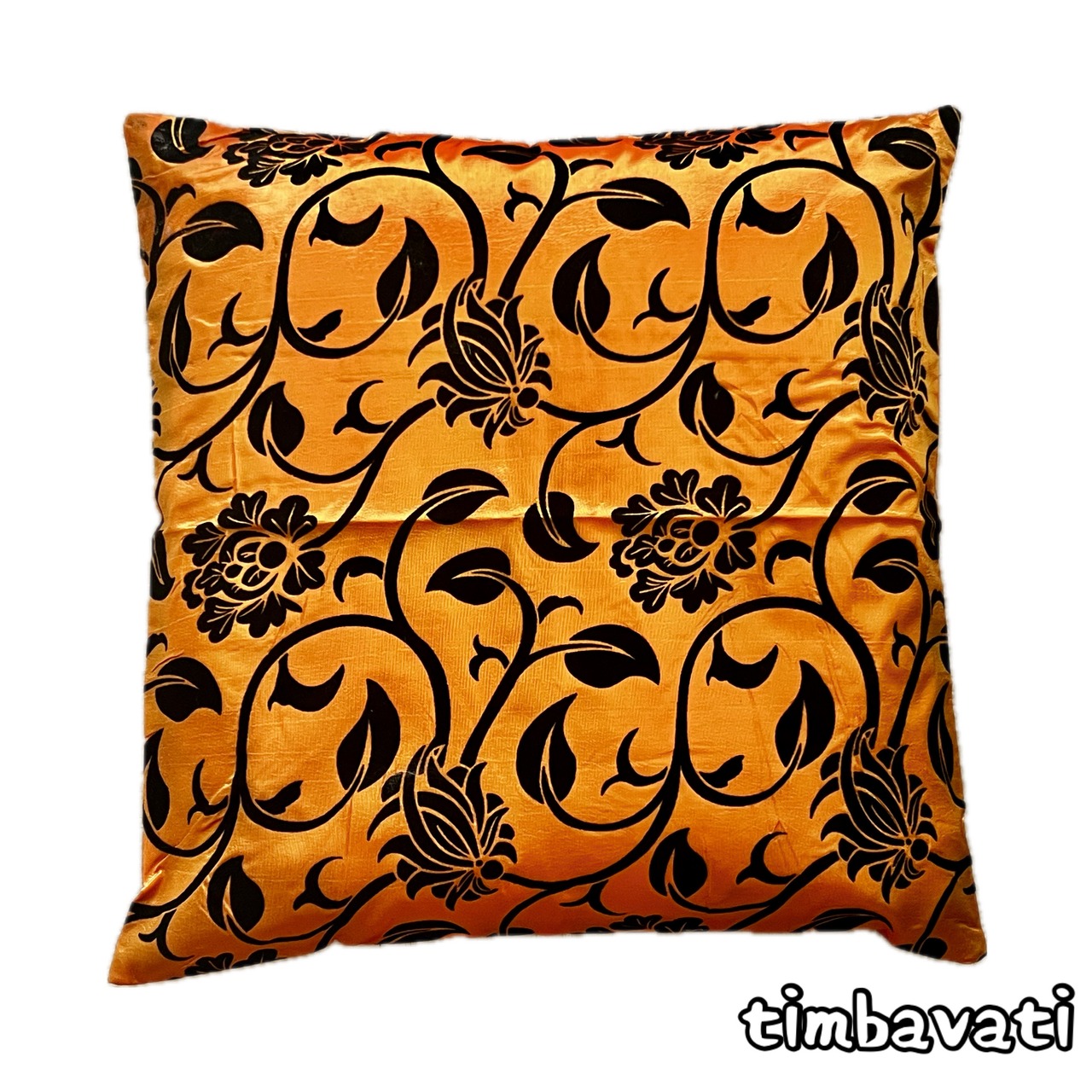 【マレーシア】花柄 光沢 クッションカバー*オレンジ*