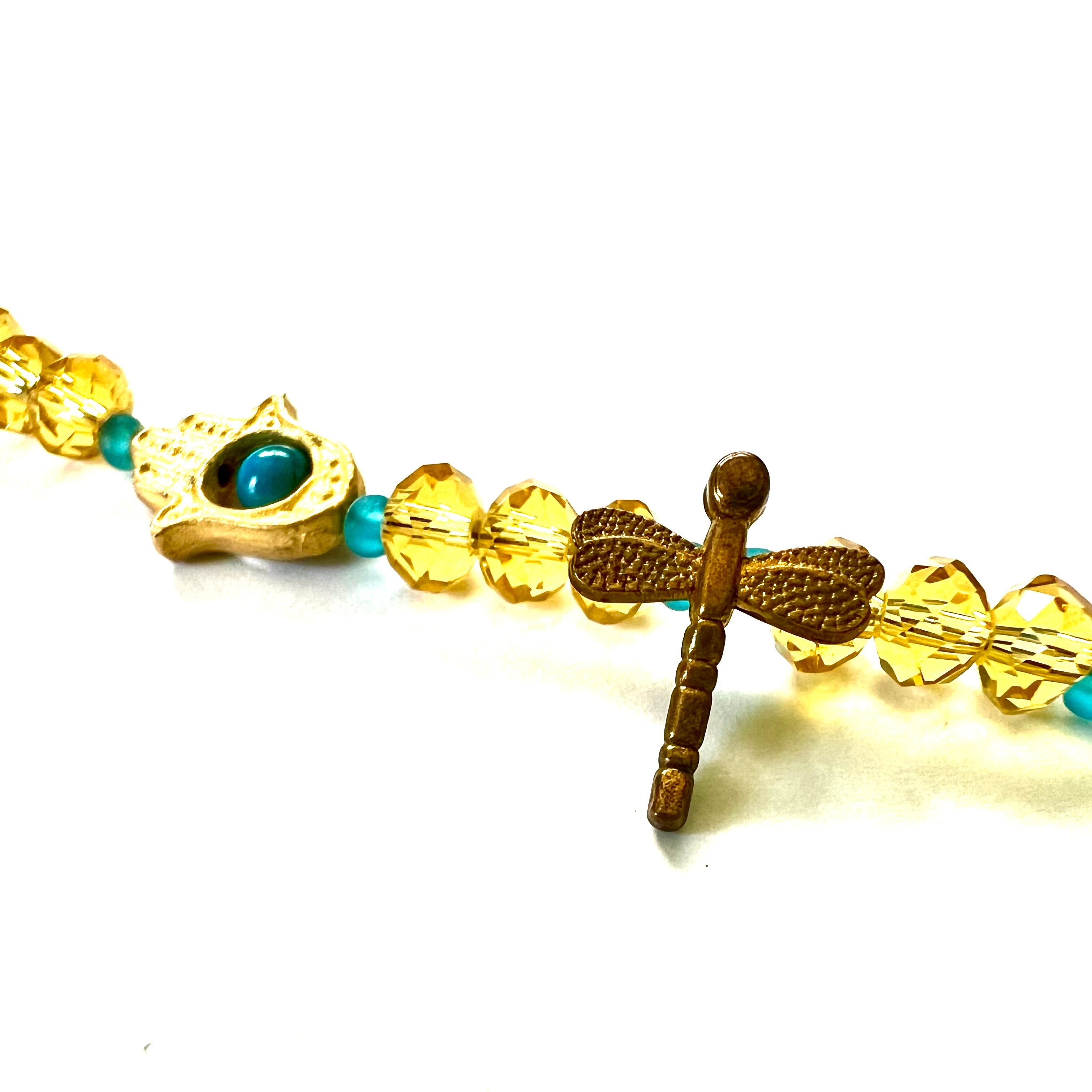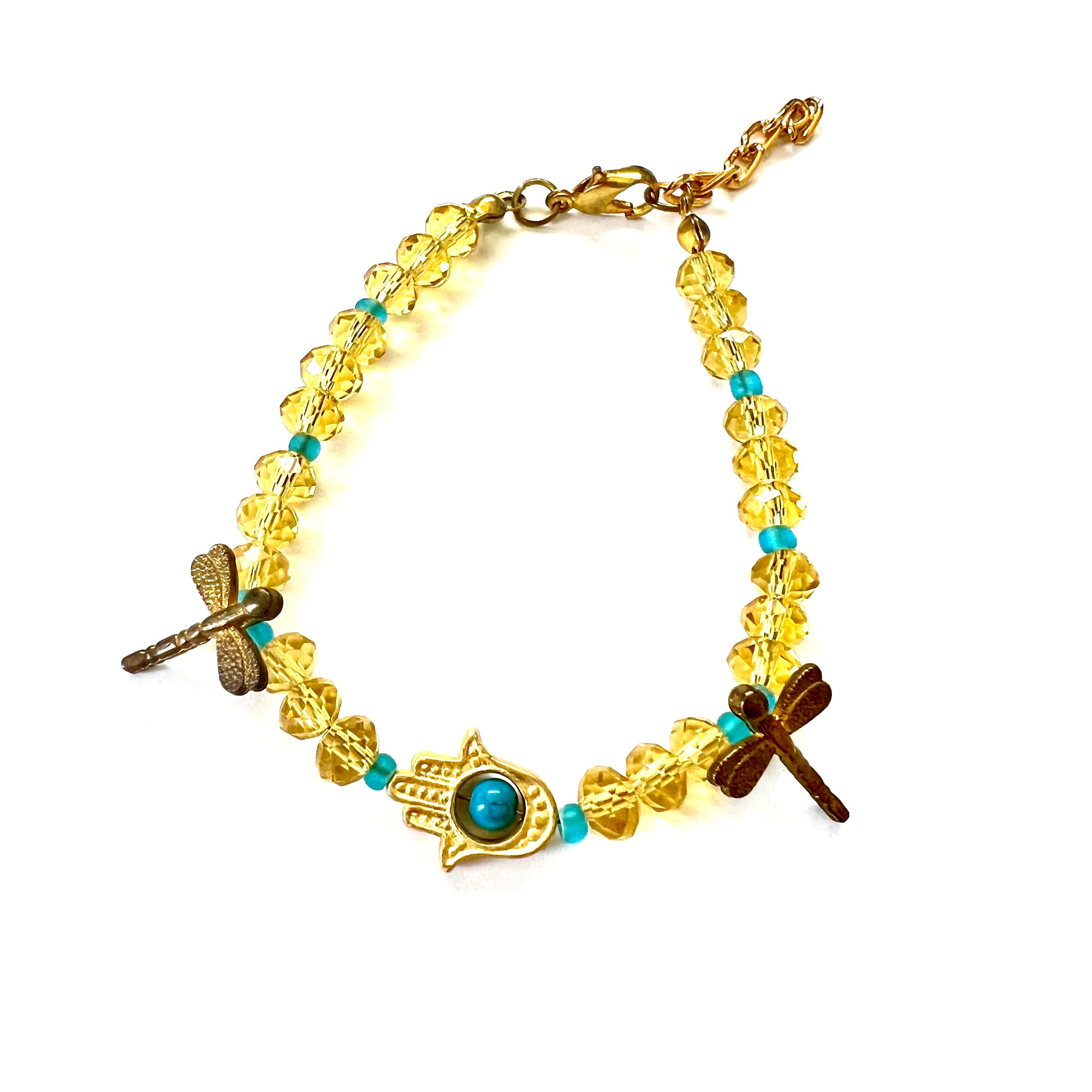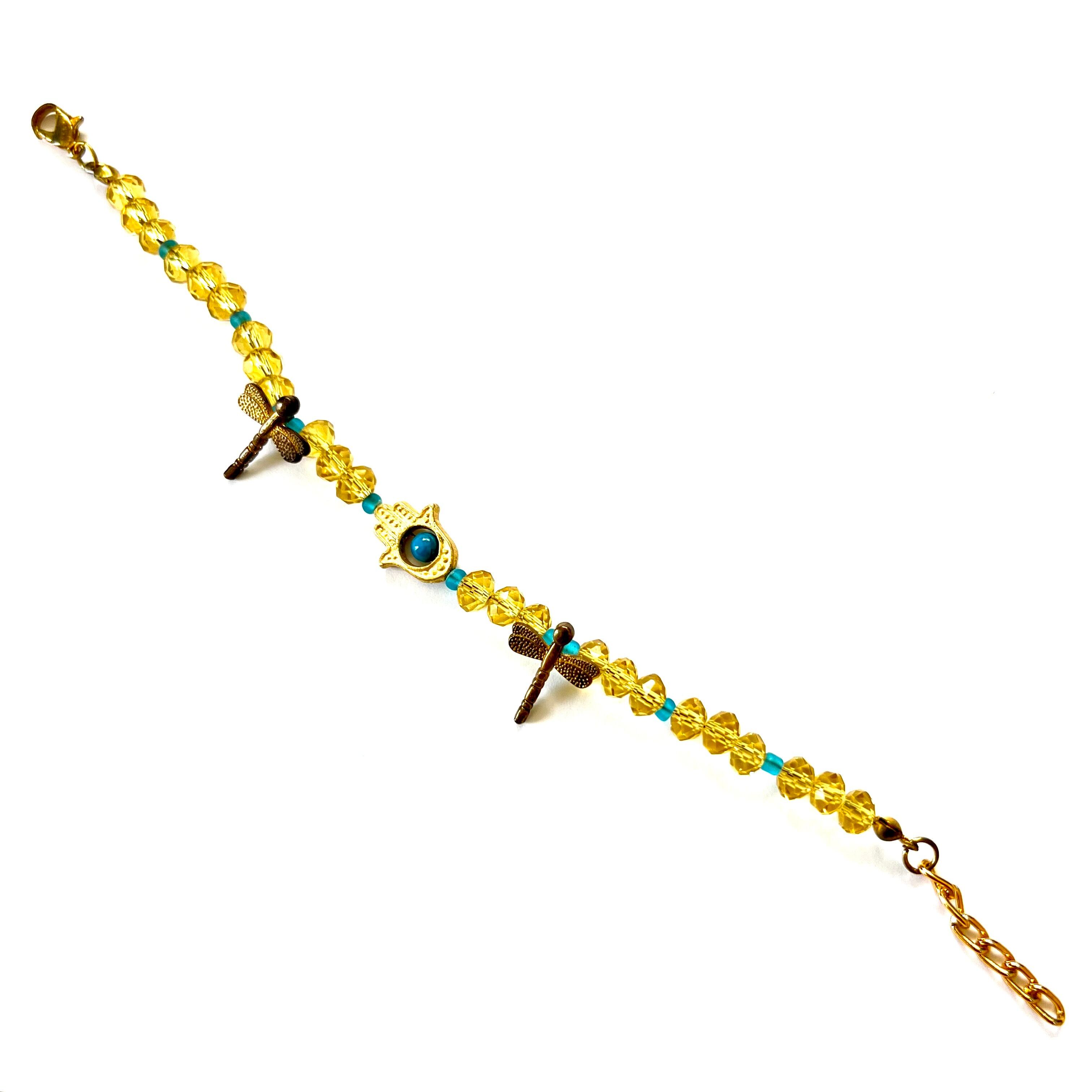 【チュニジア】ハムサ (ファティマの手) トンボ カットビーズ ブレスレット