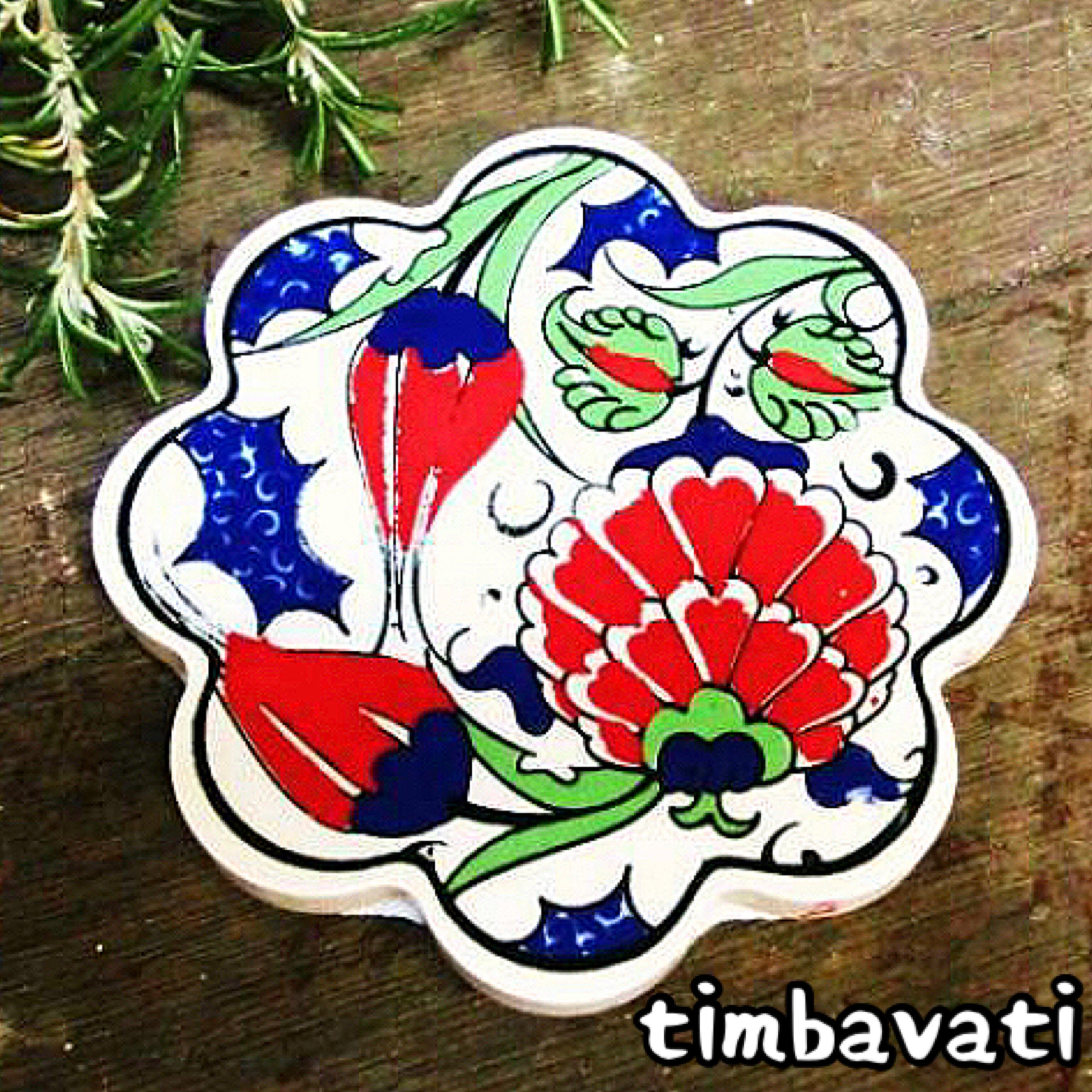トルコの職人が1点1点絵付けしたカラフルなトルコセラミック陶器のコースターです