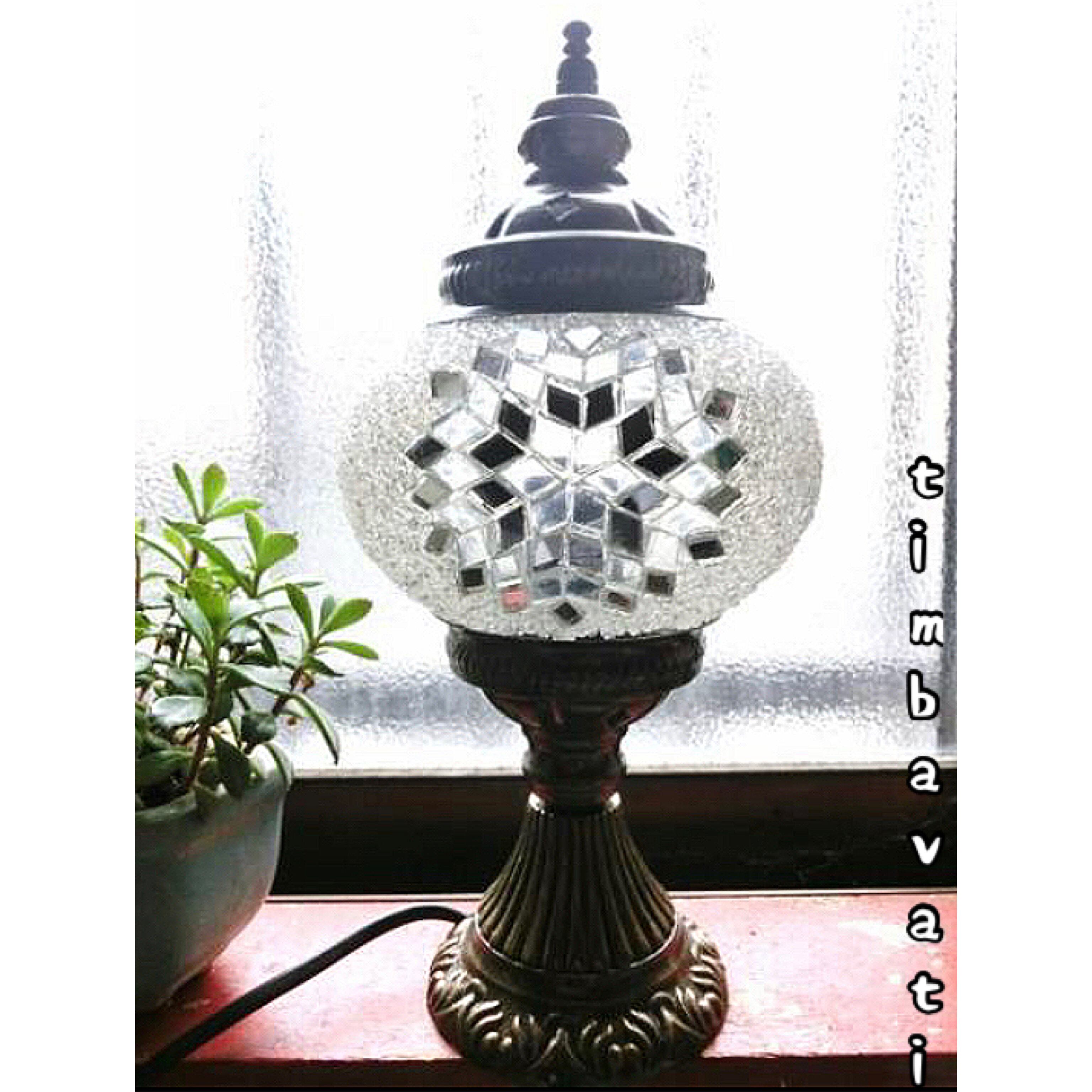 【トルコ】グラス 卓上ランプ モザイク*ホワイト*