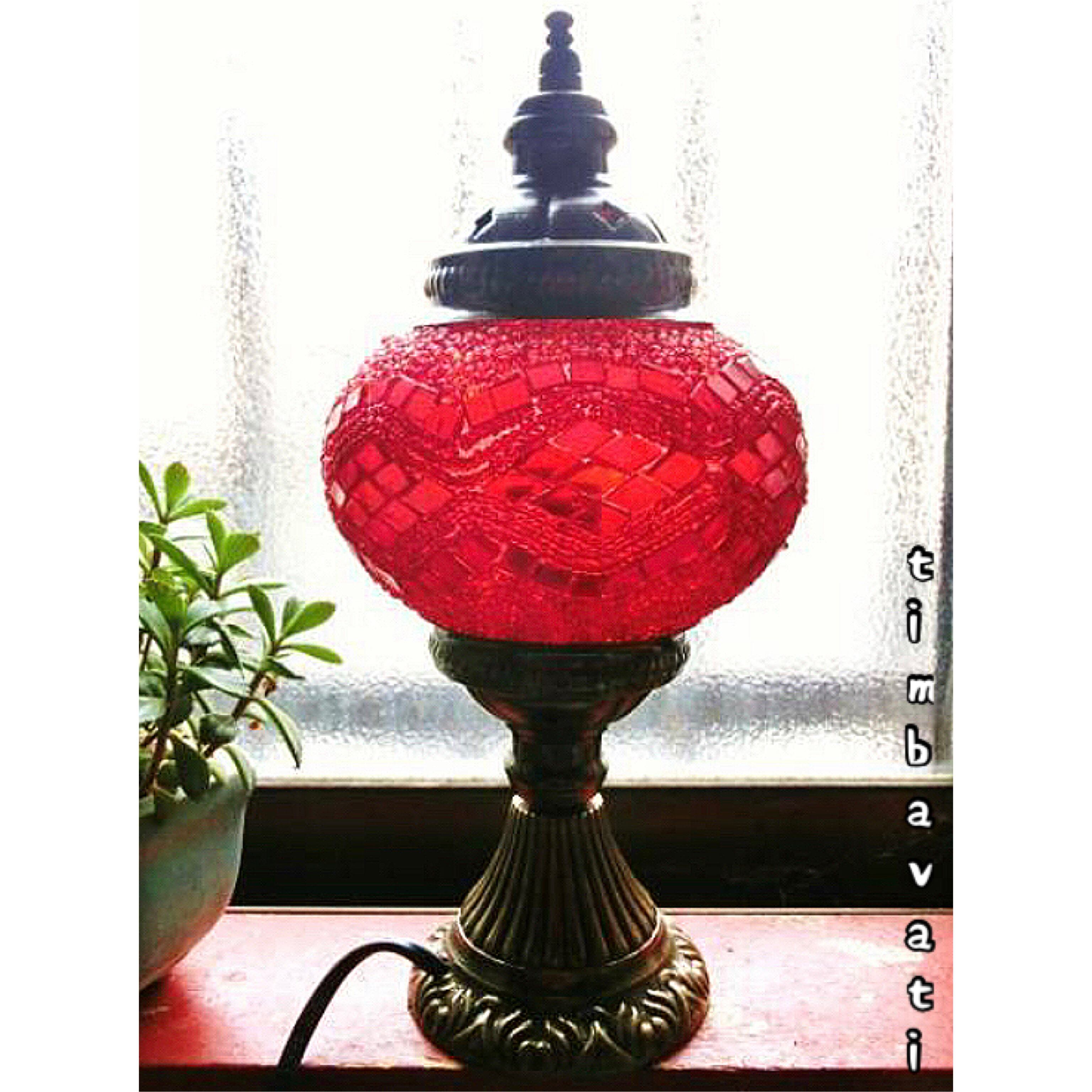 【トルコ】グラス 卓上ランプ モザイク* レッド *