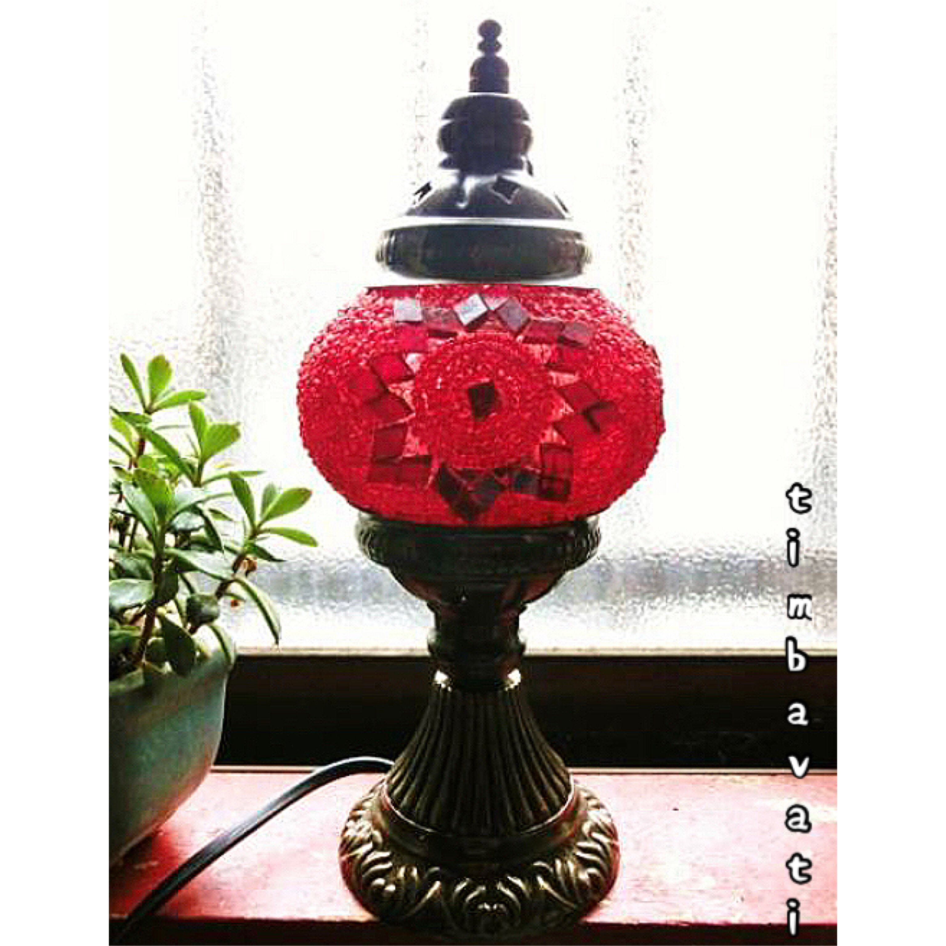 【トルコ】グラス 卓上ランプ モザイク* レッド *