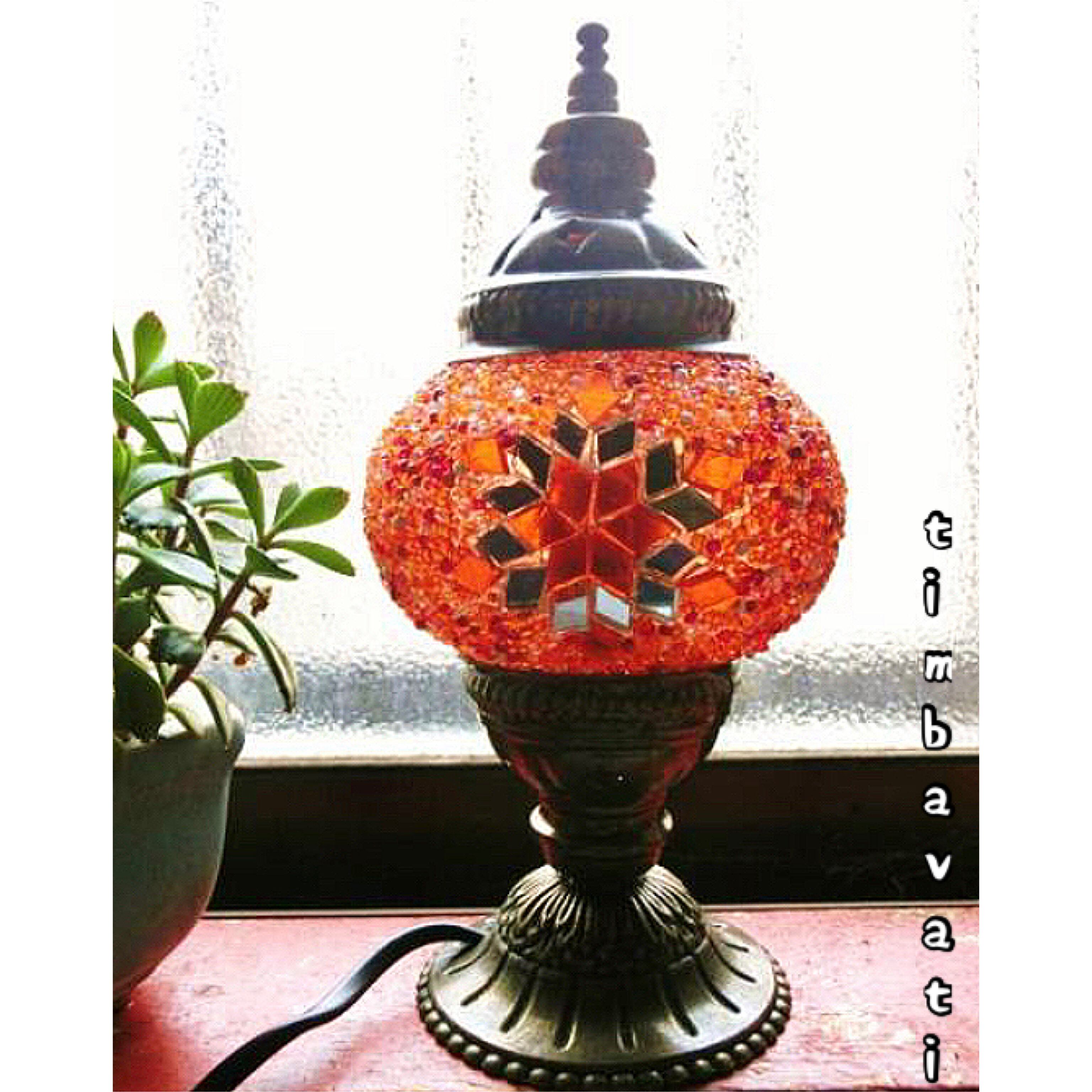 【トルコ】グラス 卓上ランプ モザイク* オレンジ *