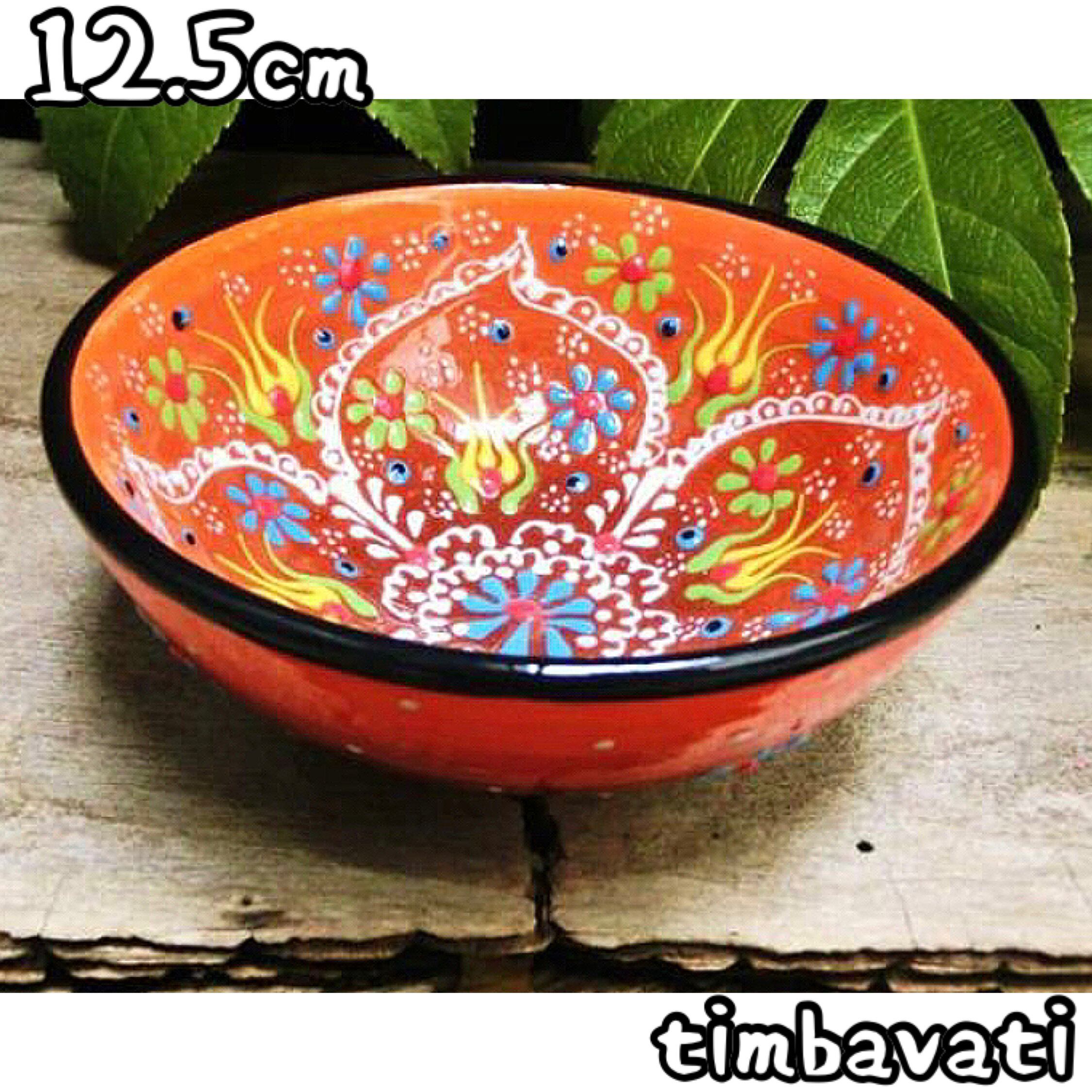 12.5cm【トルコ陶器】手描き ボウル 皿 *オレンジ*キュタフヤ陶器