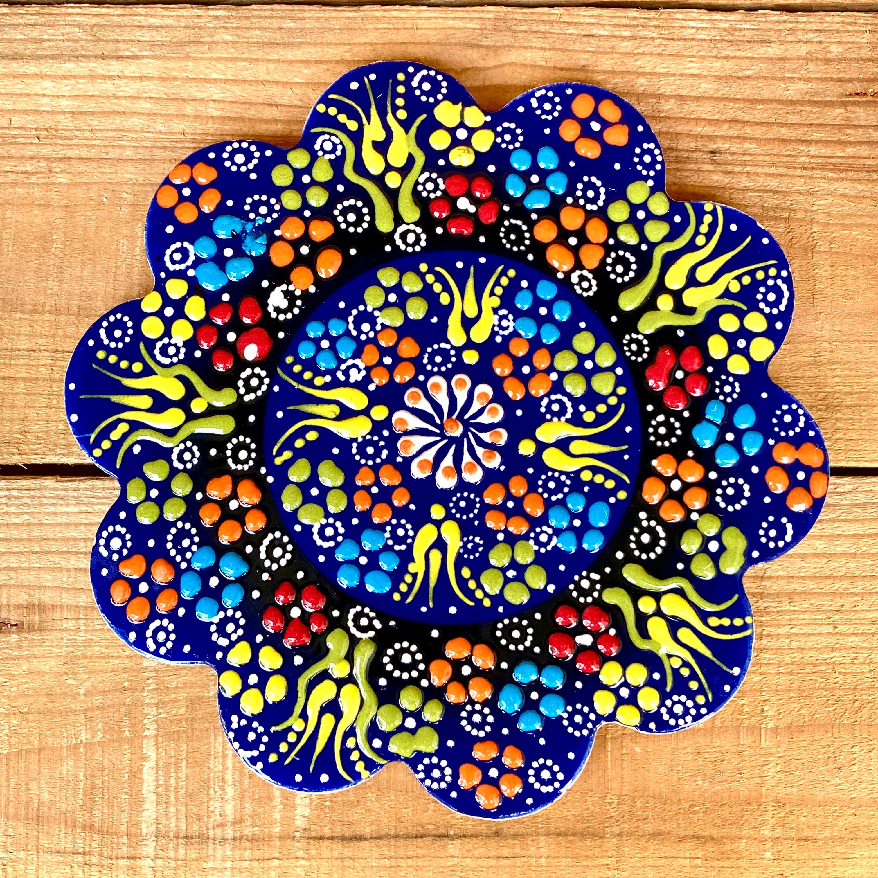 トルコの職人が1点1点絵付けしたカラフルなトルコセラミック陶器の鍋敷きです