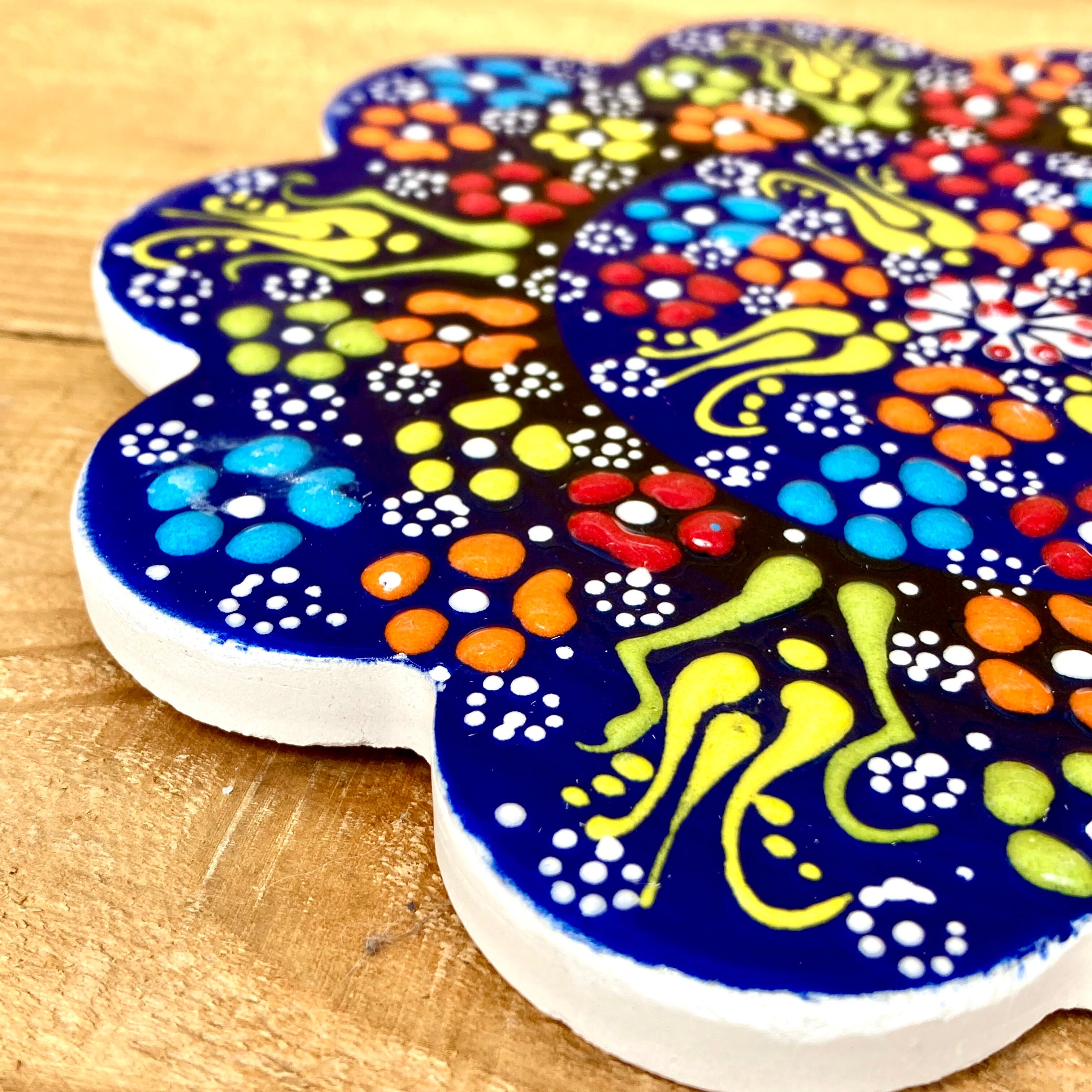 トルコの職人が1点1点絵付けしたカラフルなトルコセラミック陶器の鍋敷きです