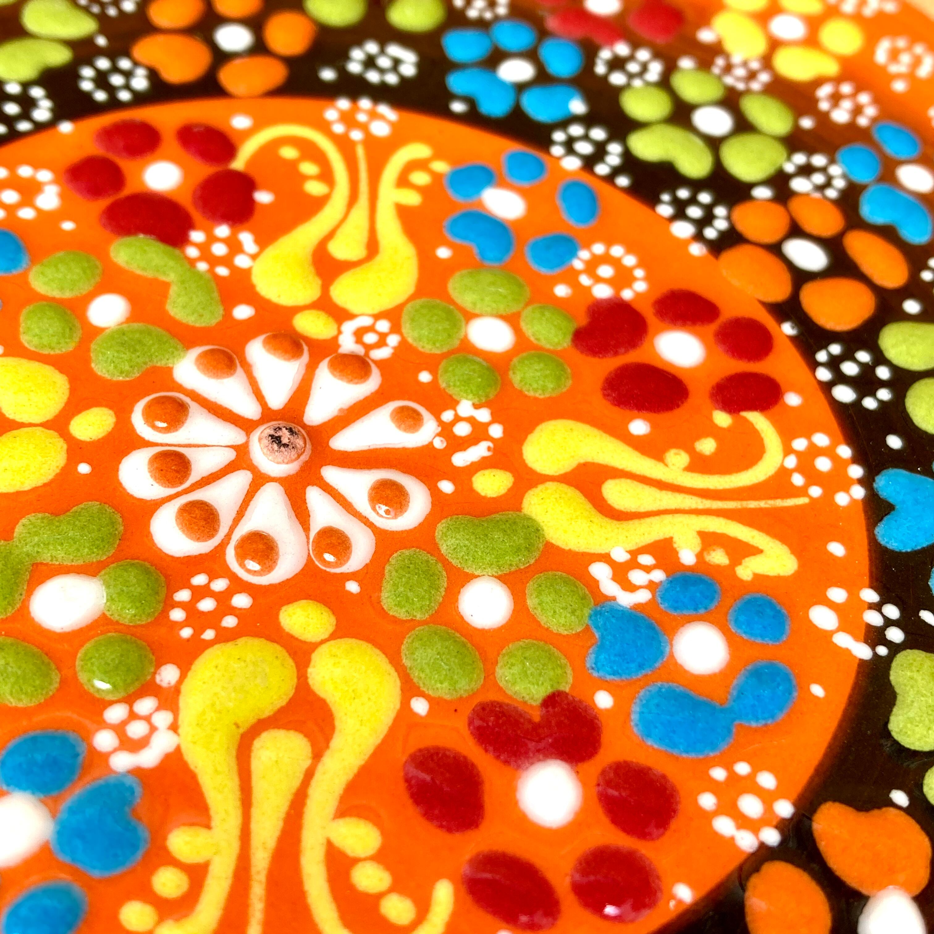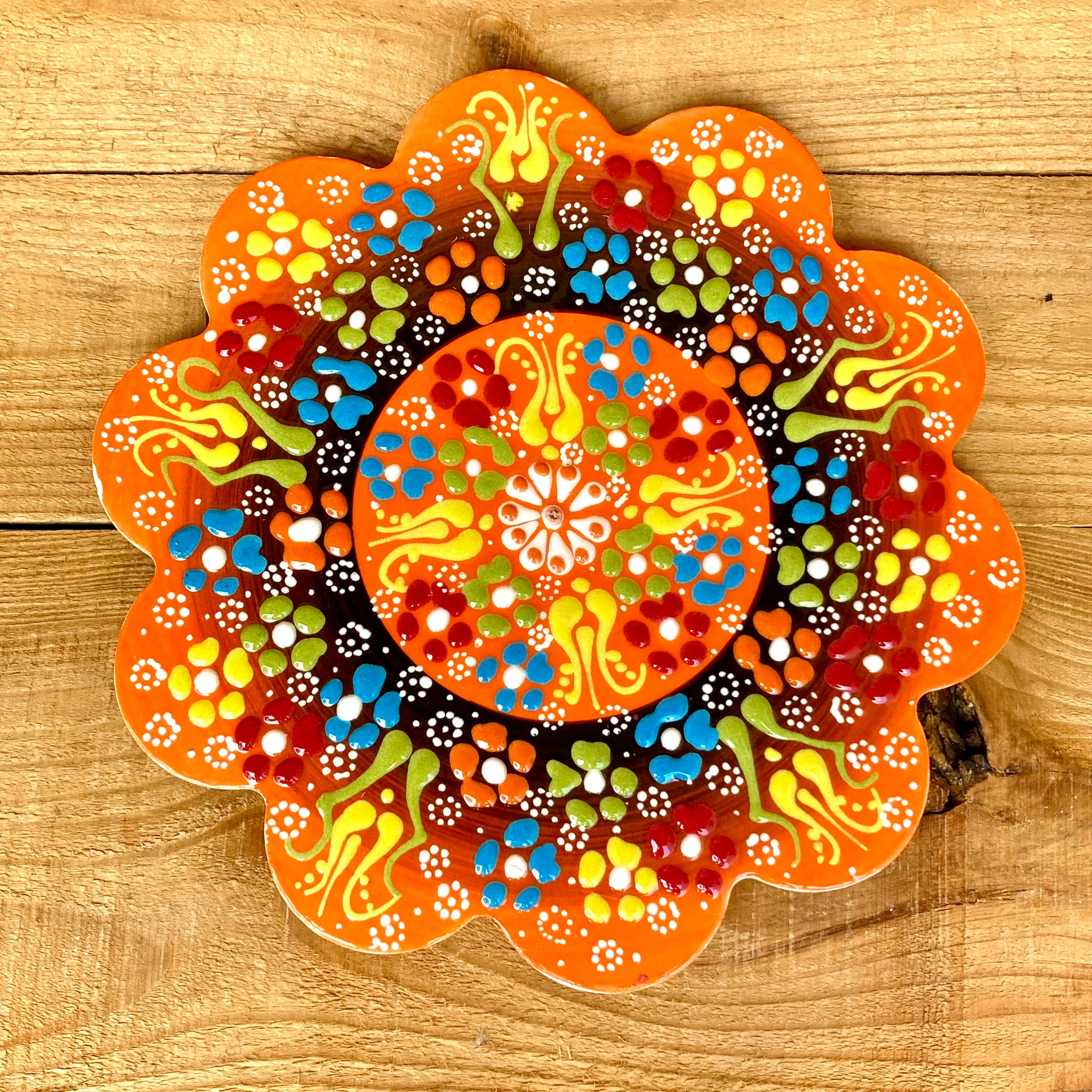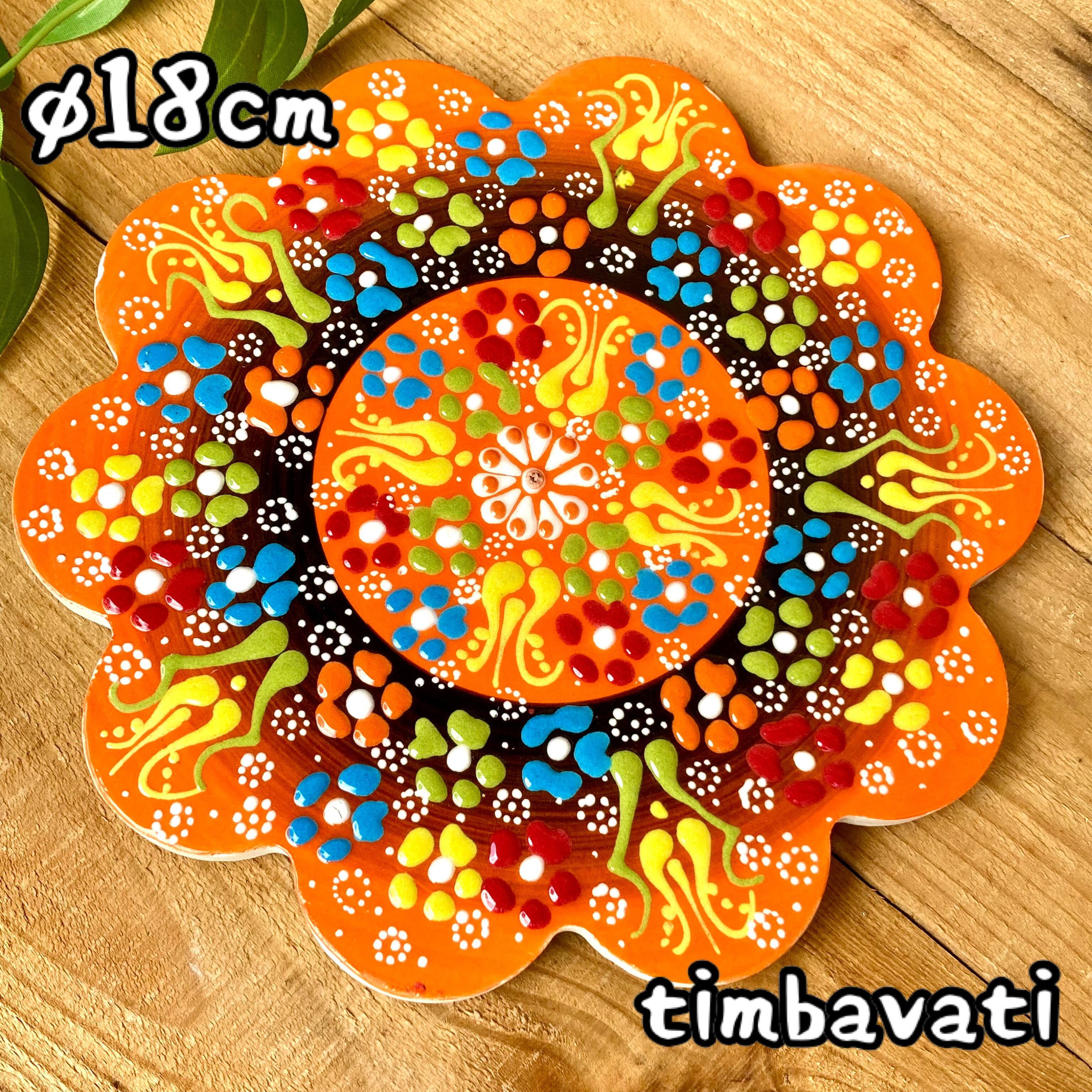 訳あり30%OFF 18cm【トルコ陶器】手描き 鍋敷き 壁掛け タイル * オレンジ * キュタフヤ陶器