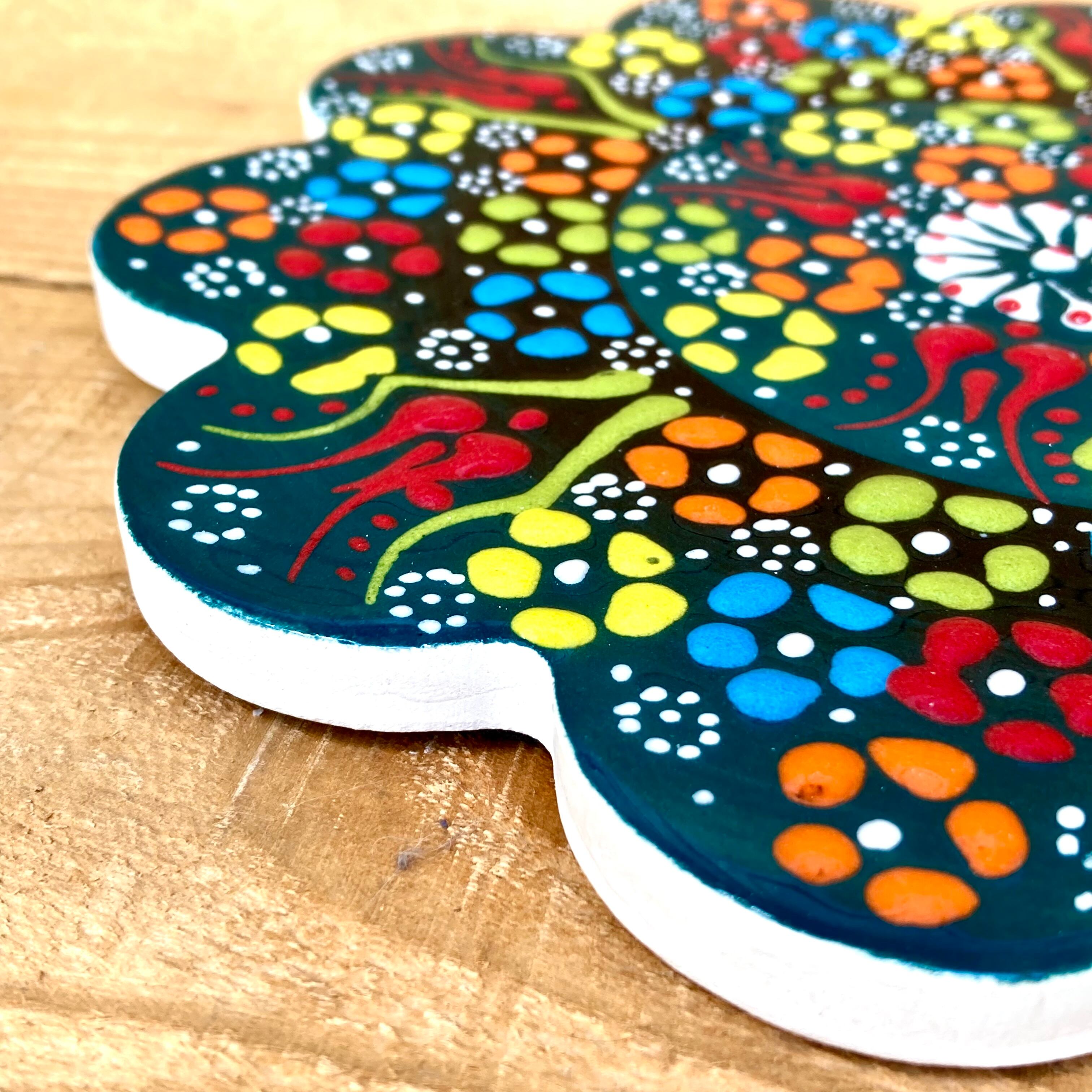 トルコの職人が1点1点絵付けしたカラフルなトルコセラミック陶器の鍋敷きです