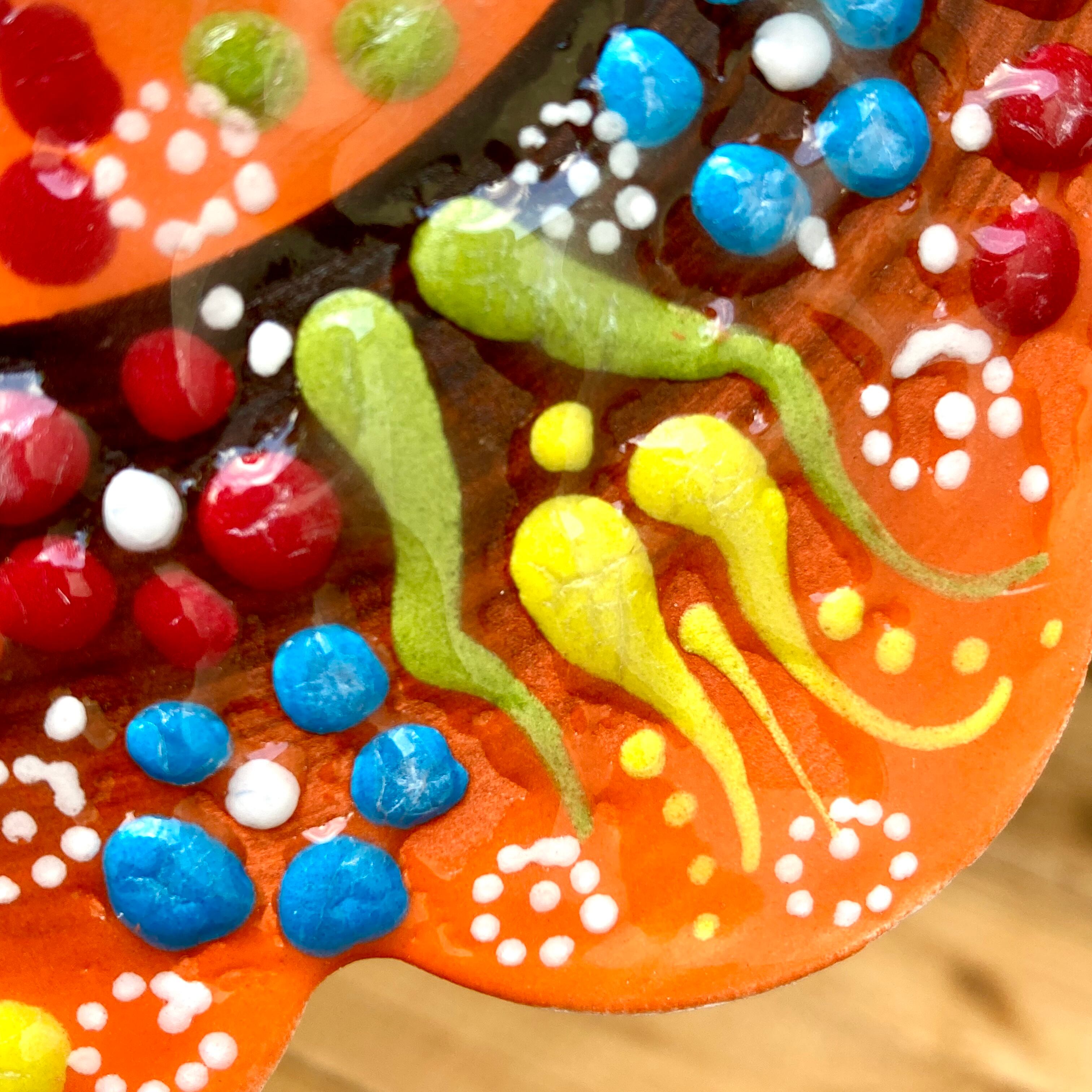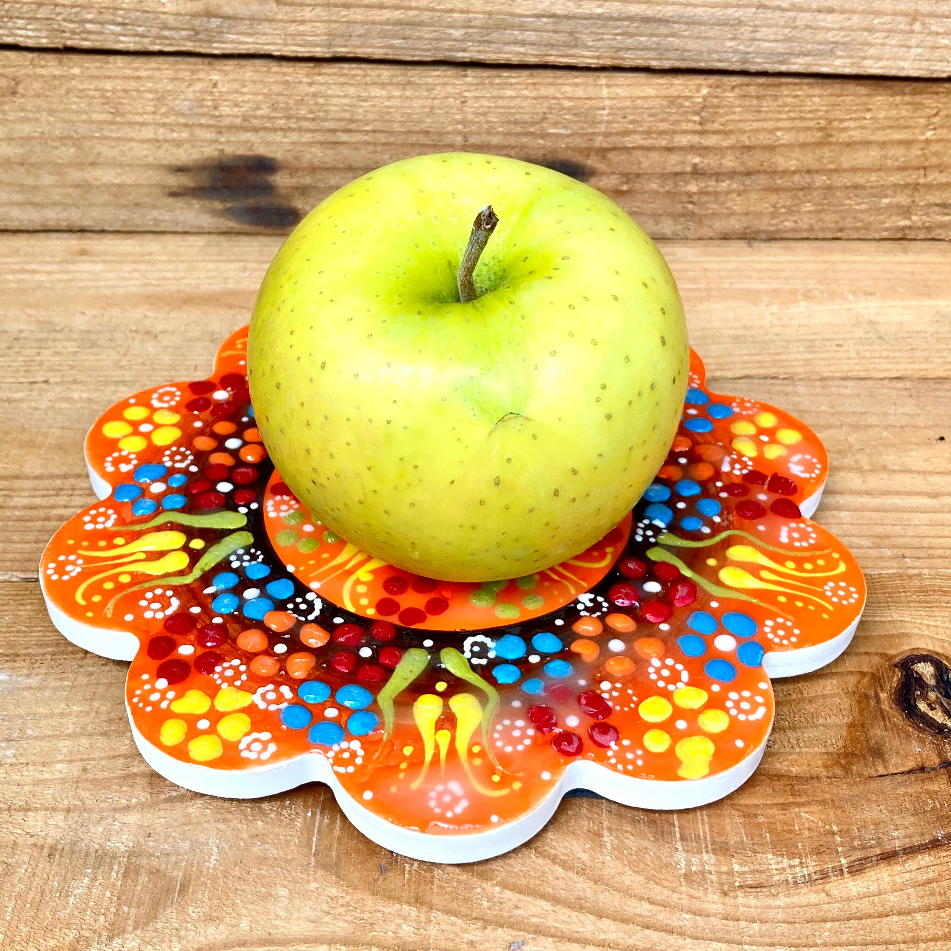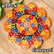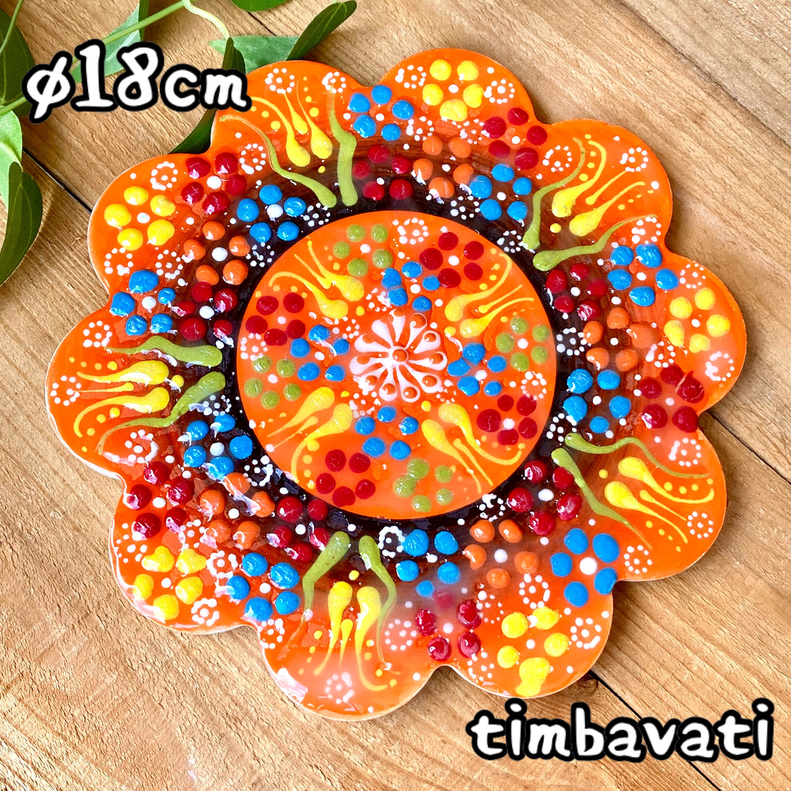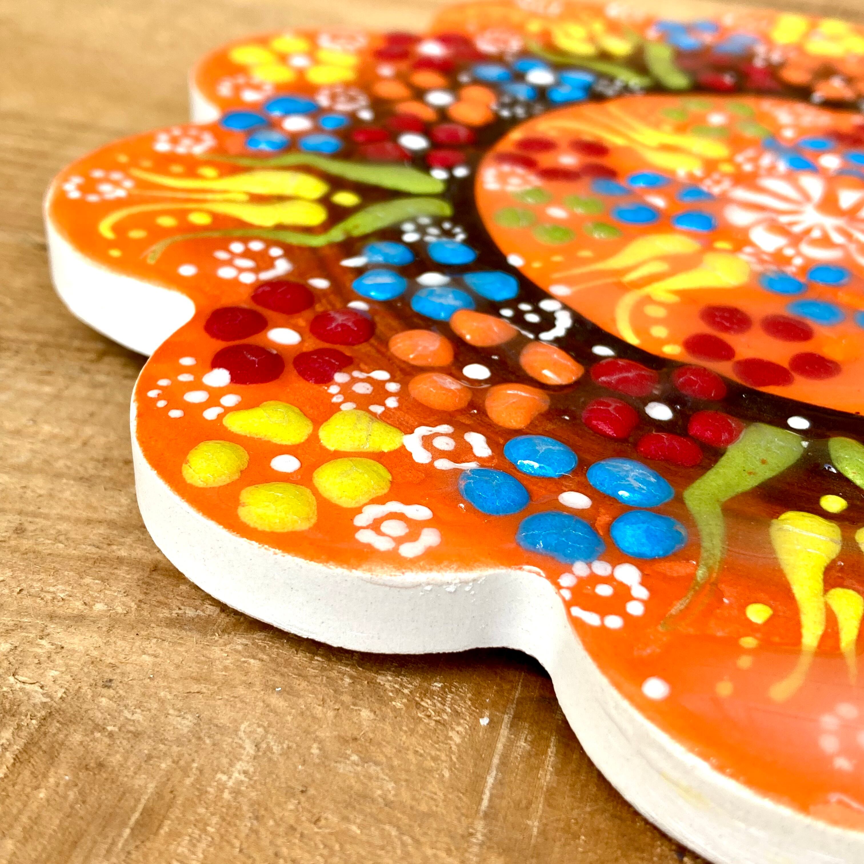 訳あり30%OFF 18cm【トルコ陶器】手描き 鍋敷き 壁掛け タイル * オレンジ * キュタフヤ陶器