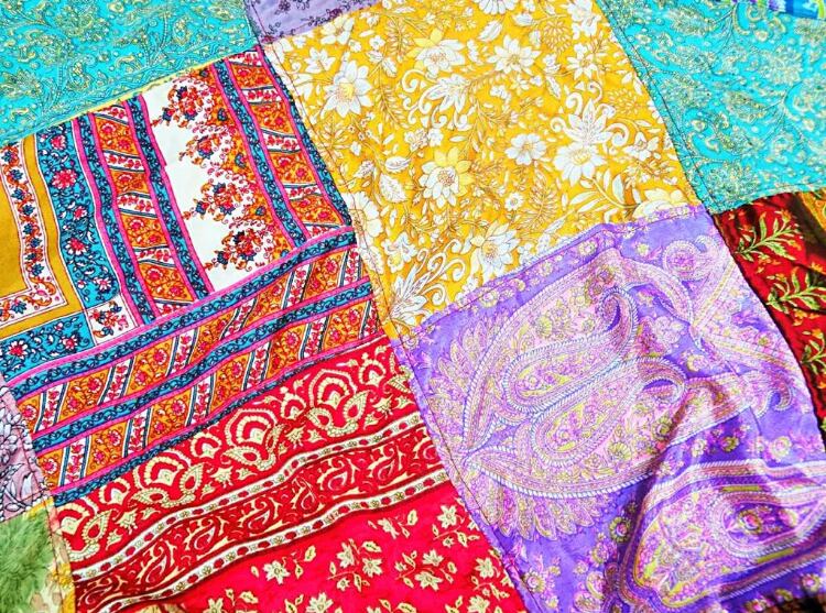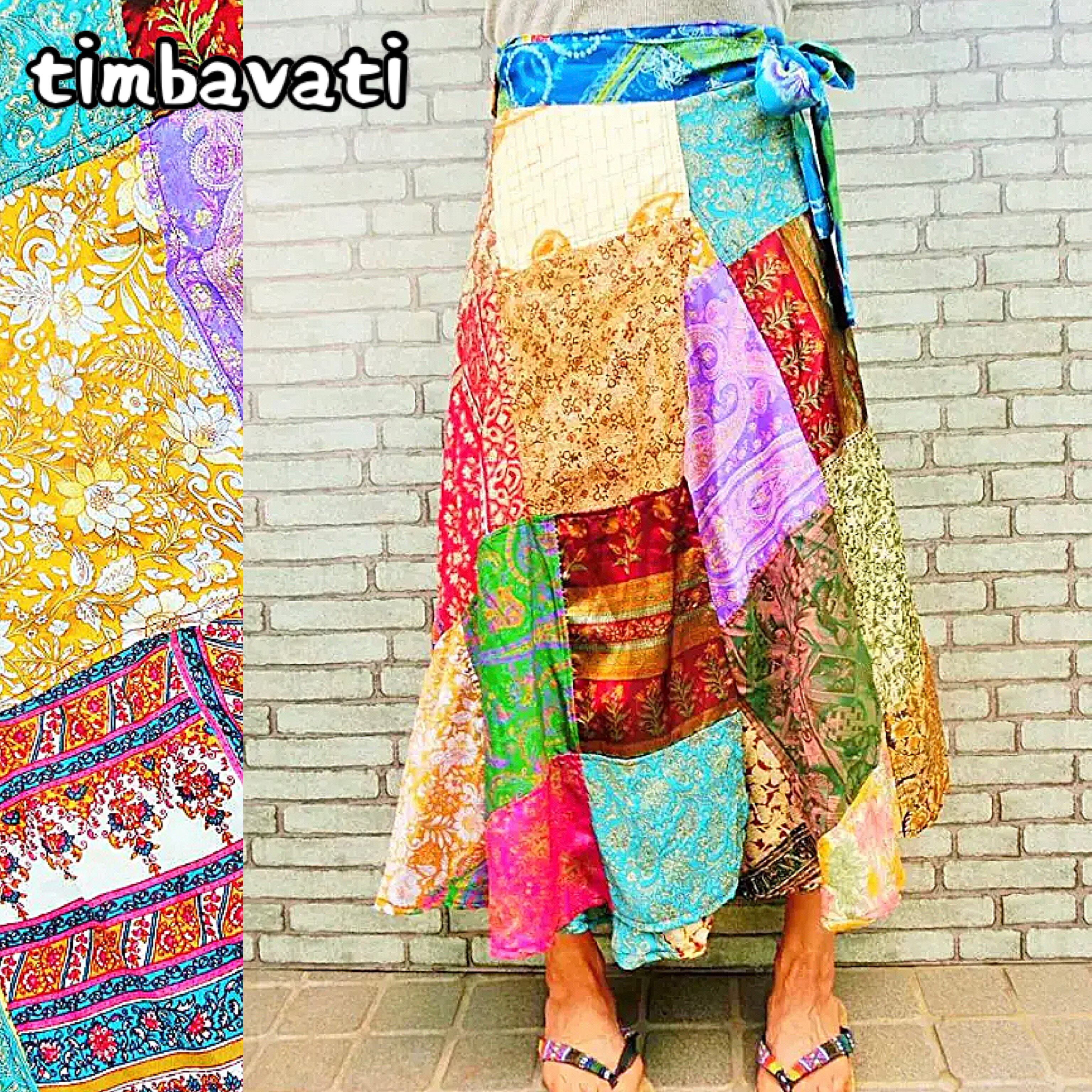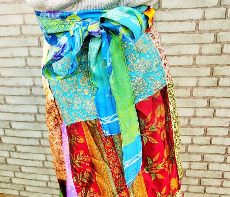 【インド】サリー生地 パッチワーク 巻きスカート *フリーサイズ *
