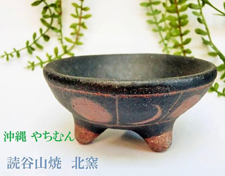 【日本】沖縄 読谷山焼(やちむん)三つ足 小皿 北窯 與那原正守