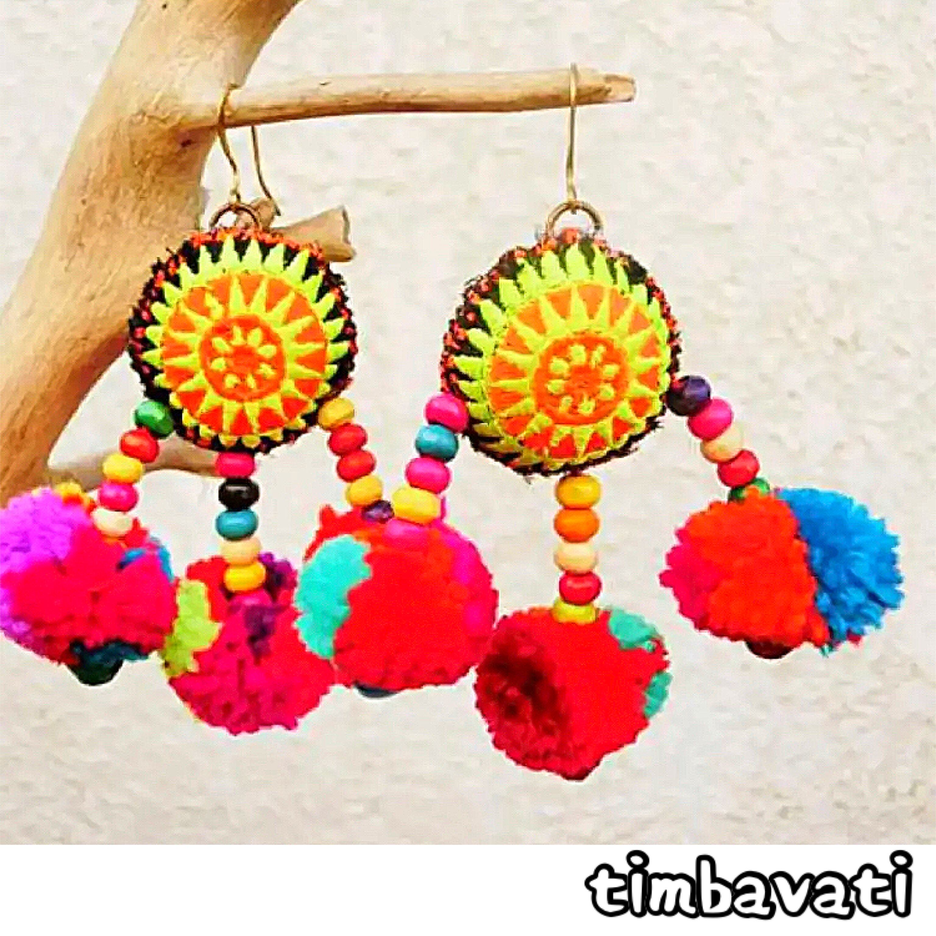 【タイ】モン族 ハンドメイド ポンポン&刺繍&ビーズ ピアス