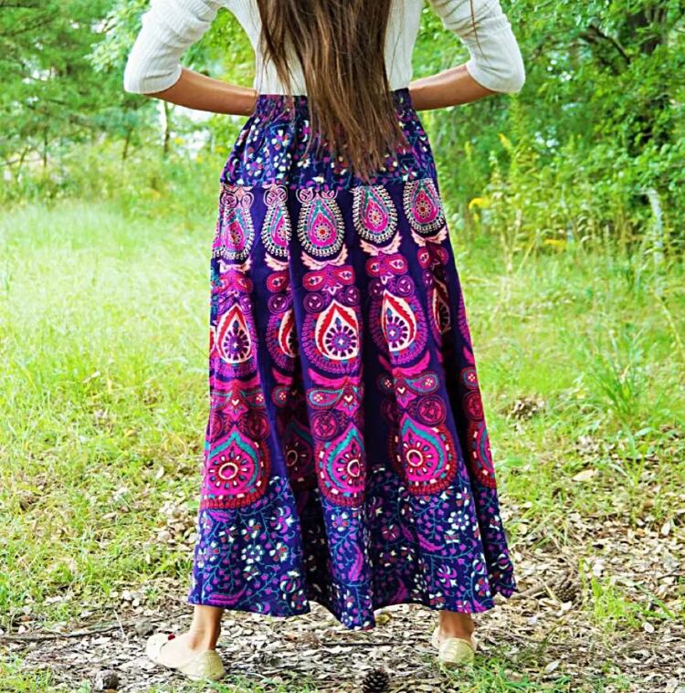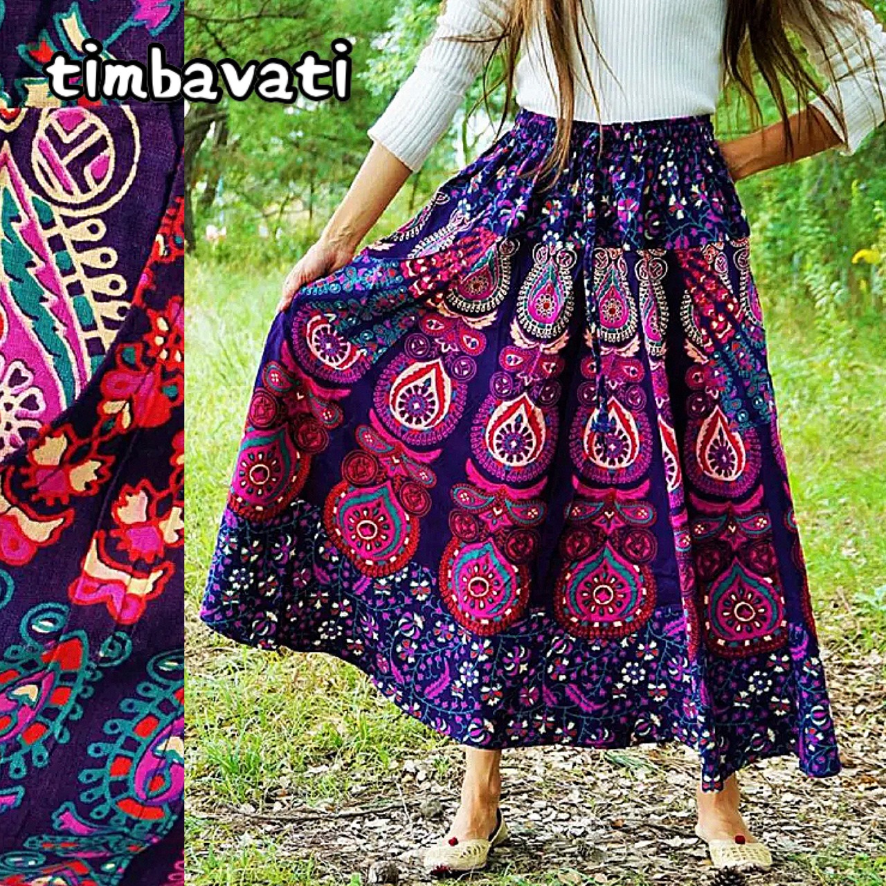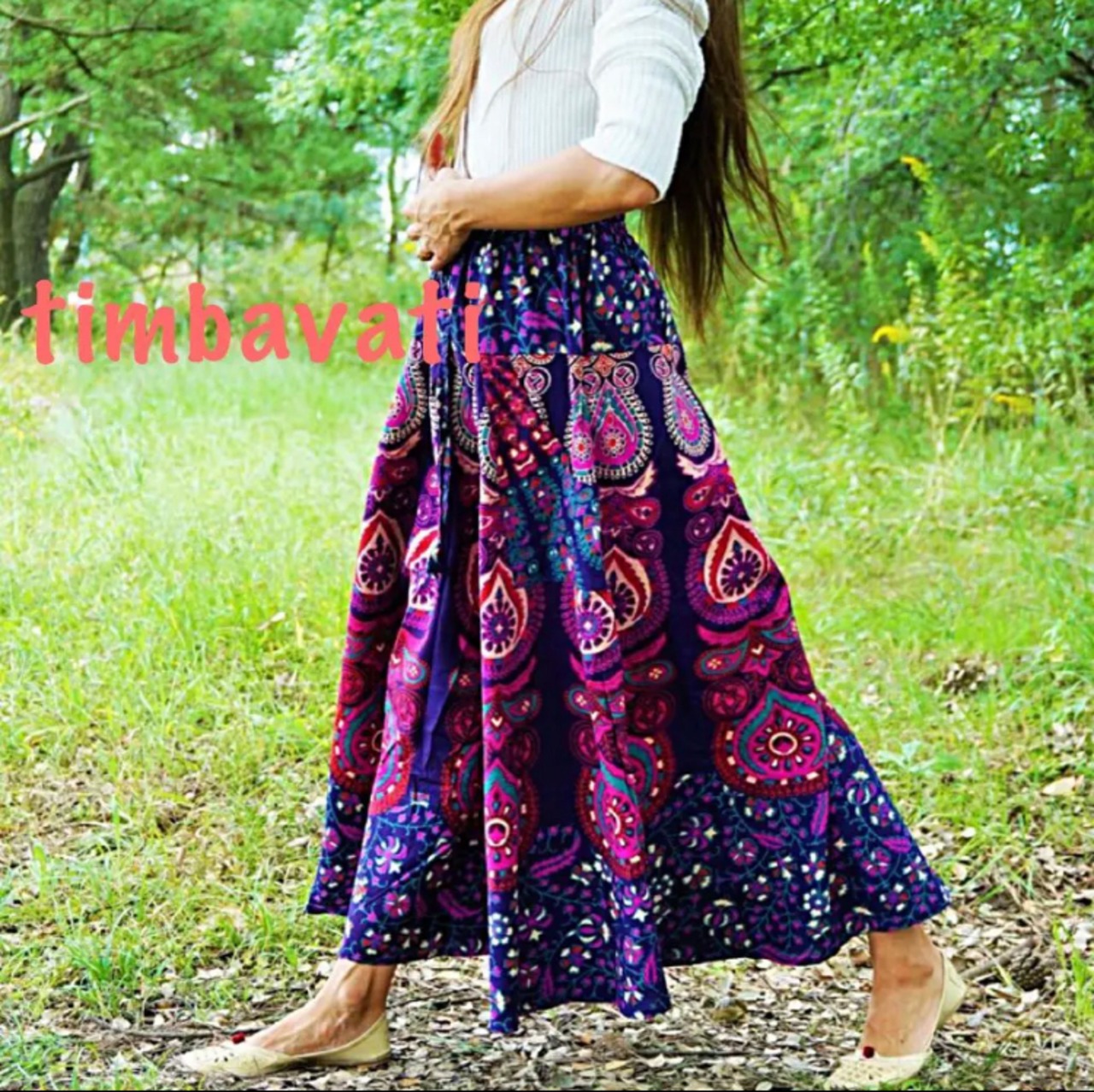 【ネパール】アジアン柄 ロングスカート フリーサイズ (パープル) ポケット×2