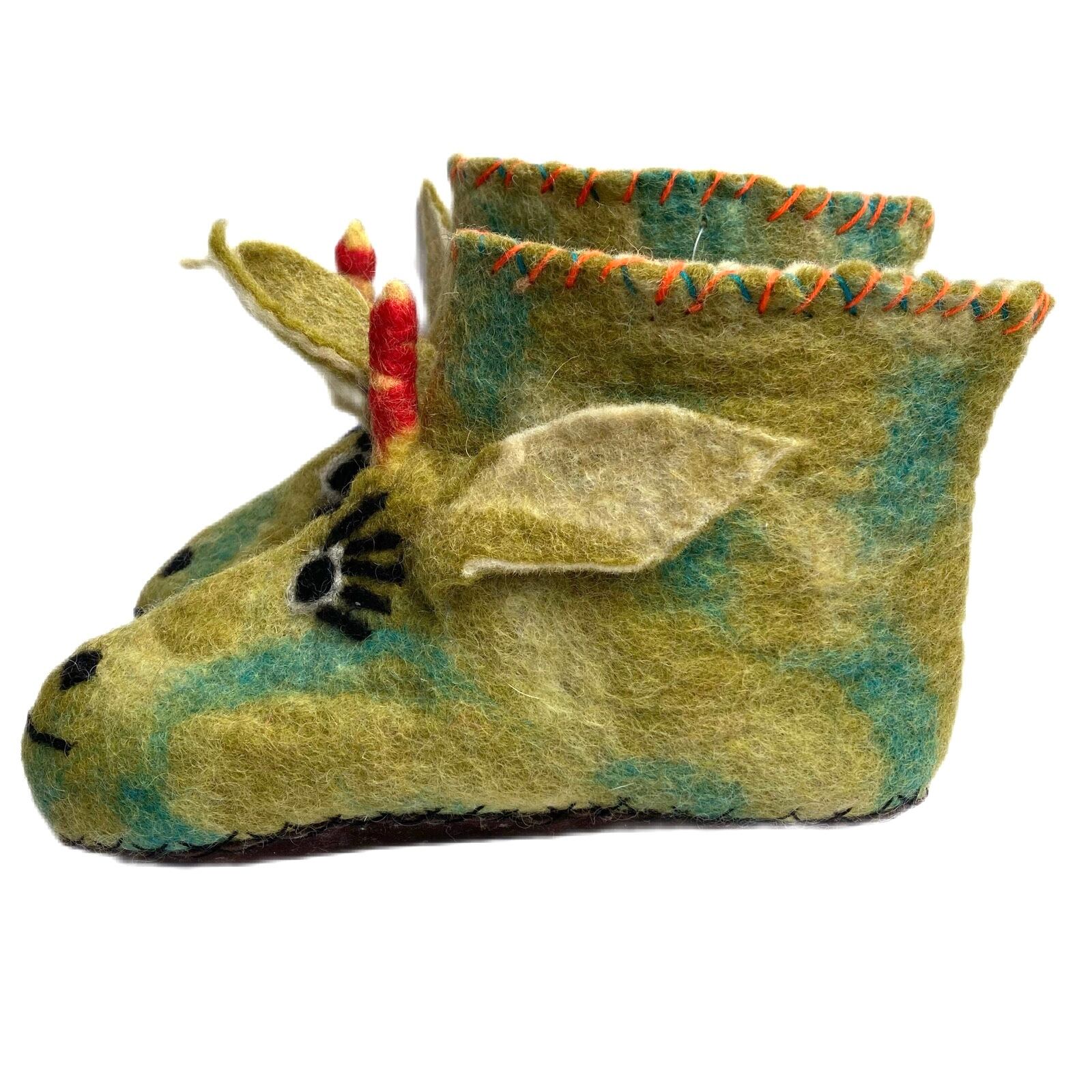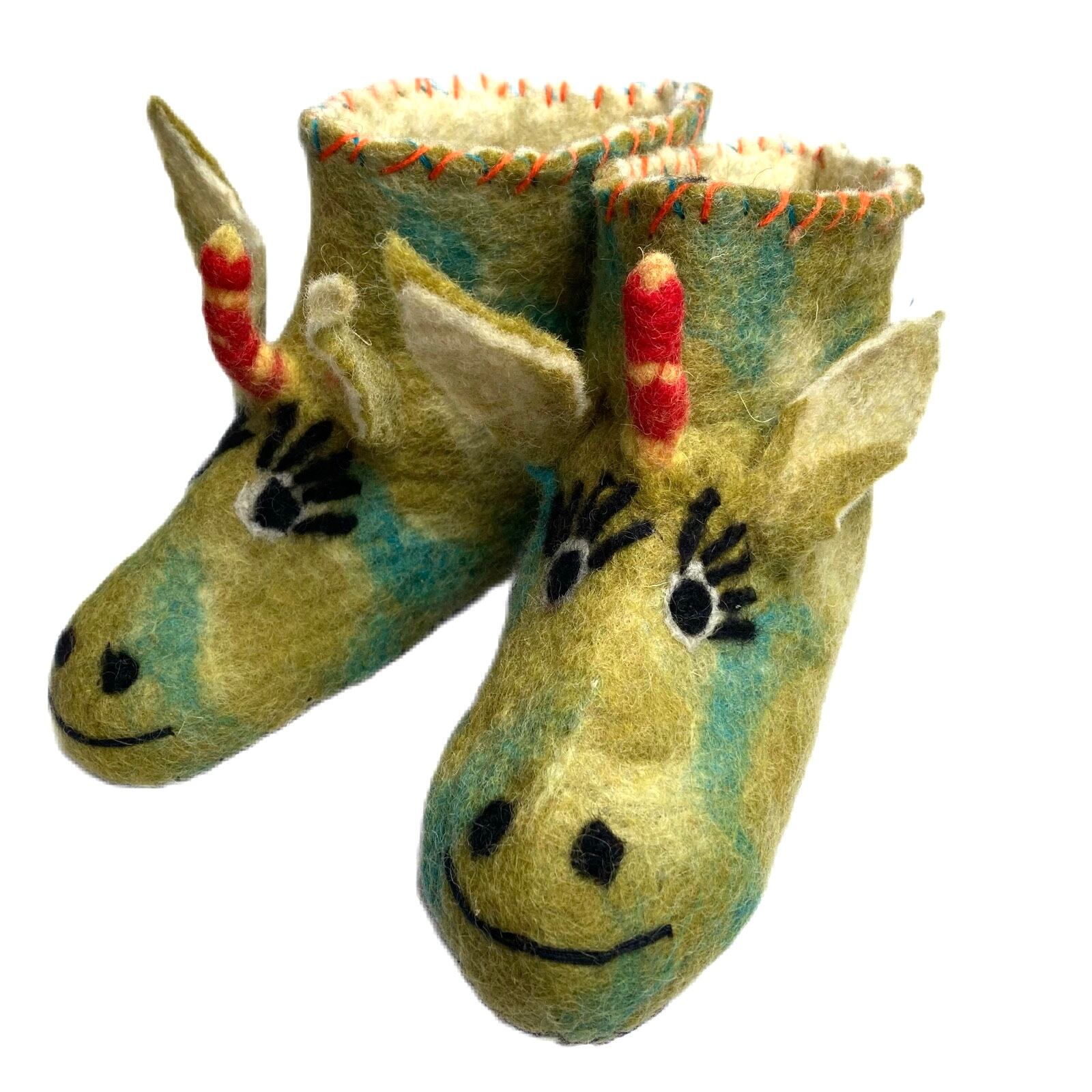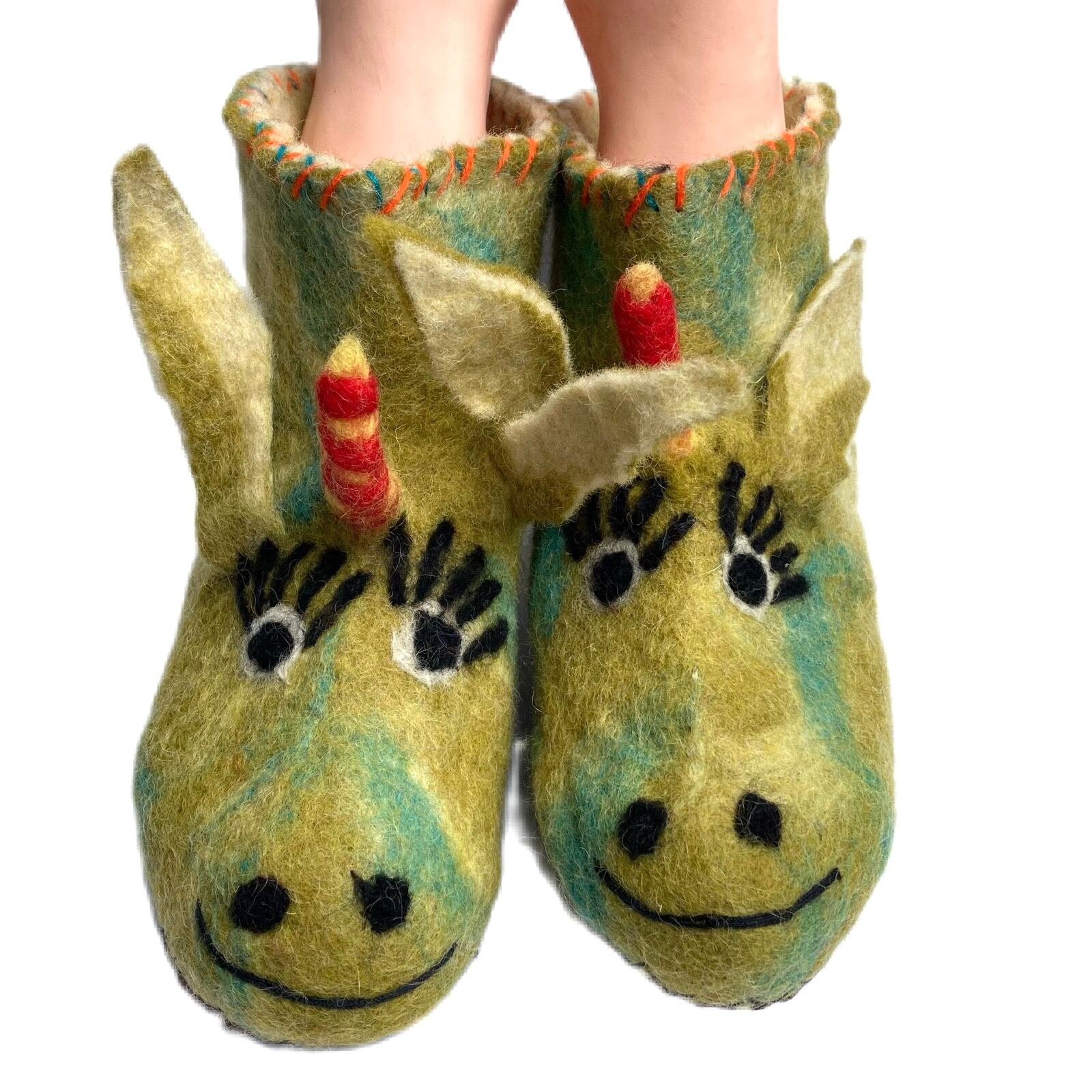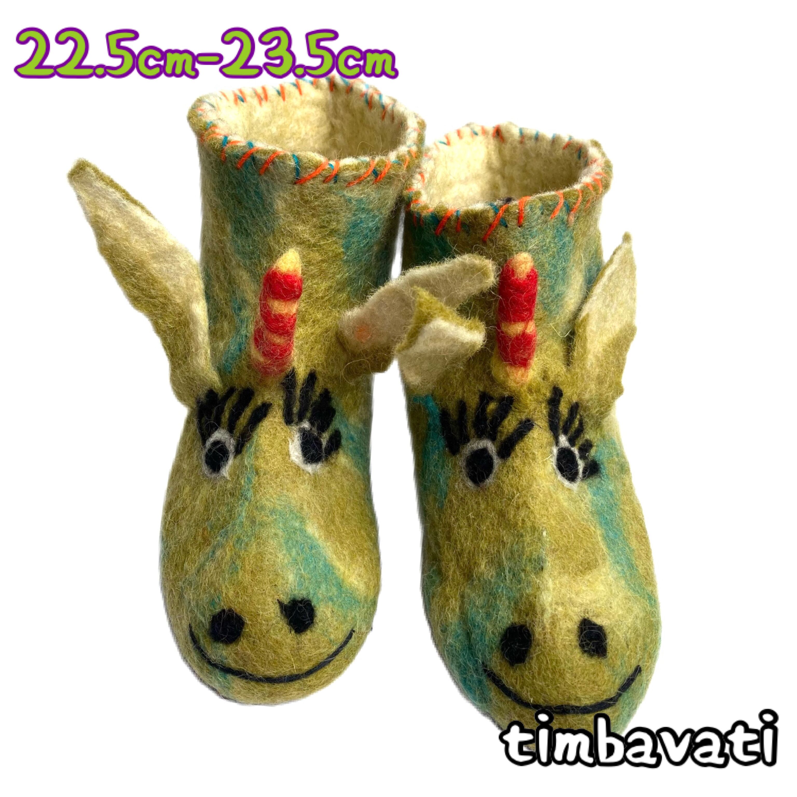 【ネパール】羊毛フェルト ルームシューズ * ユニコーン * グリーン * 22.5cm~23.5cm