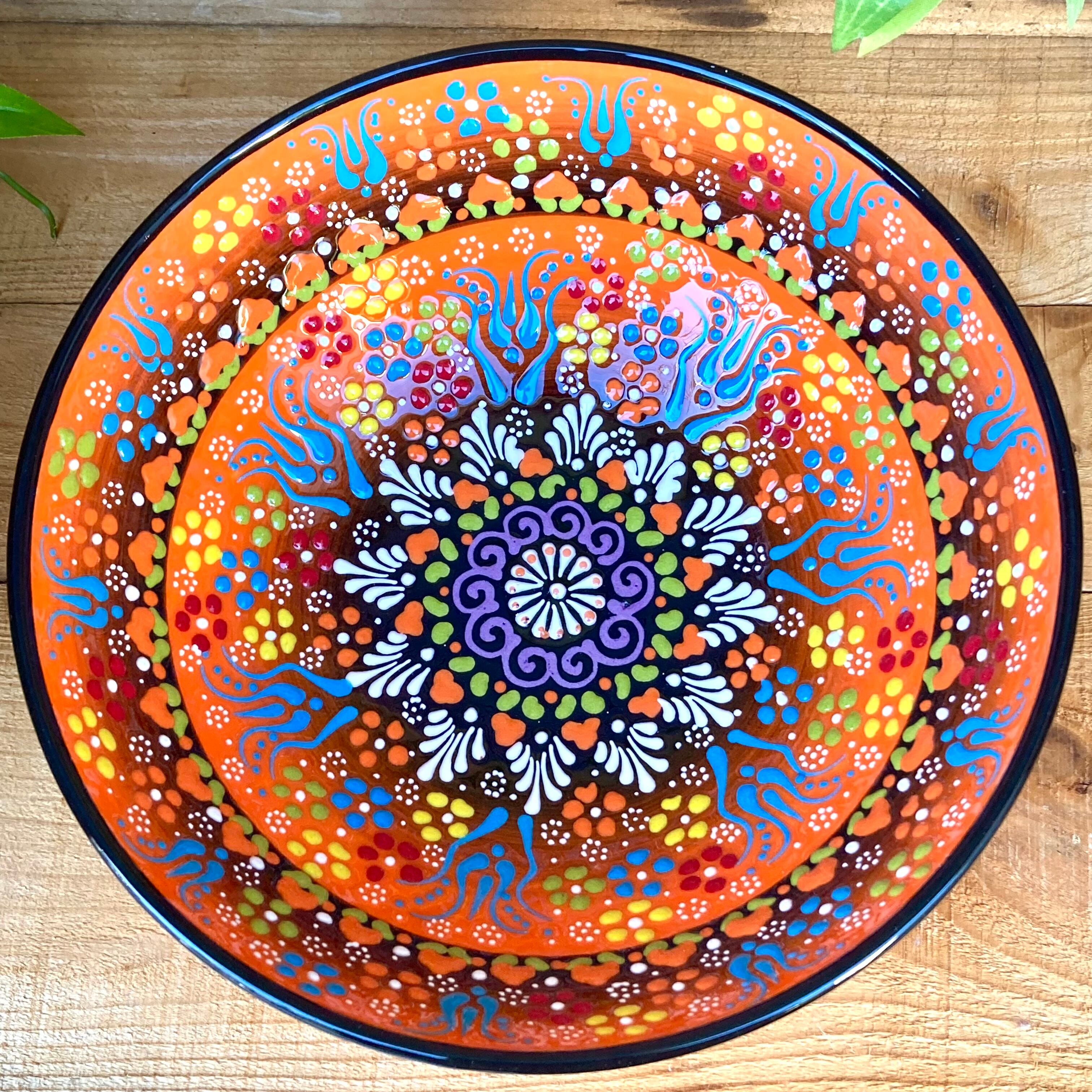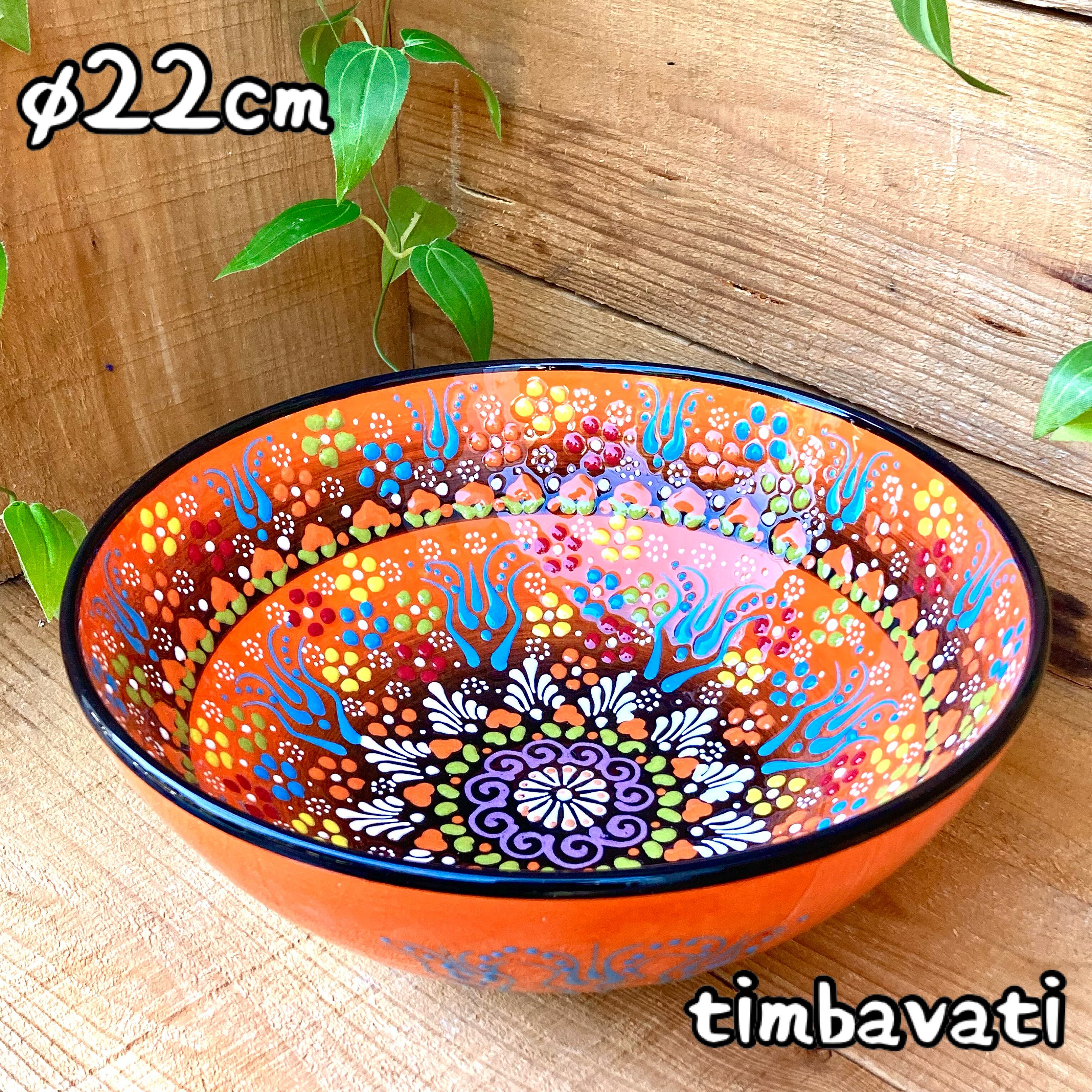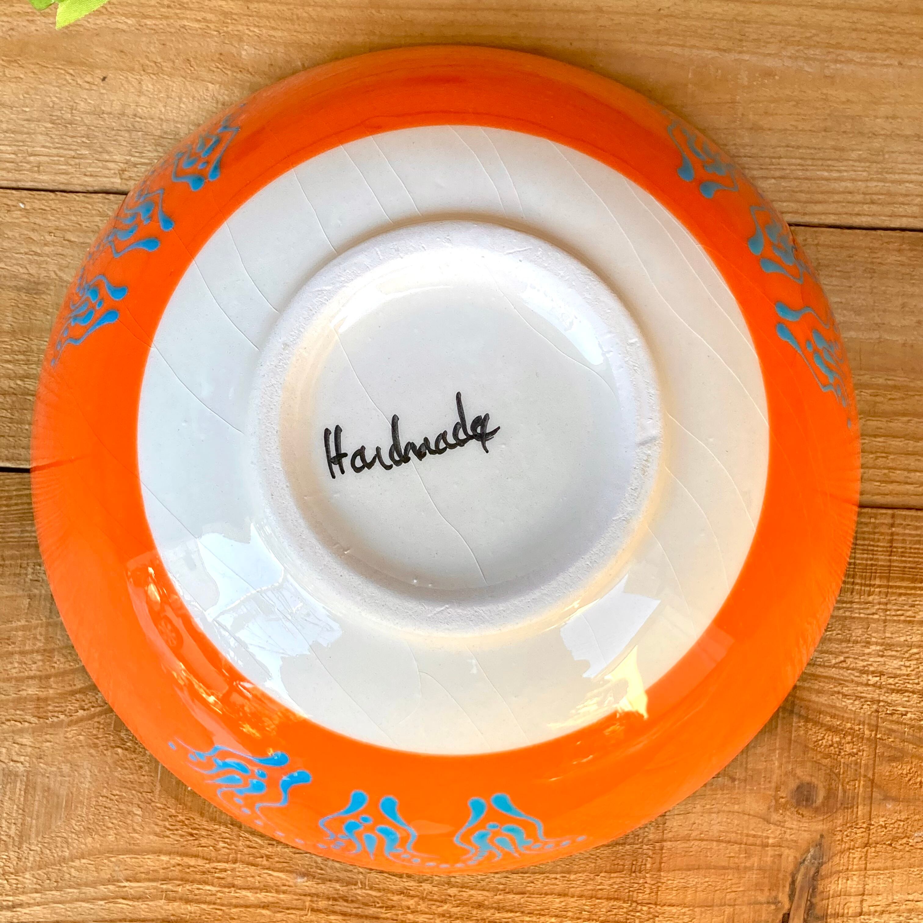 22cm【トルコ陶器】手描き ボウル 皿 *オレンジ*キュタフヤ陶器