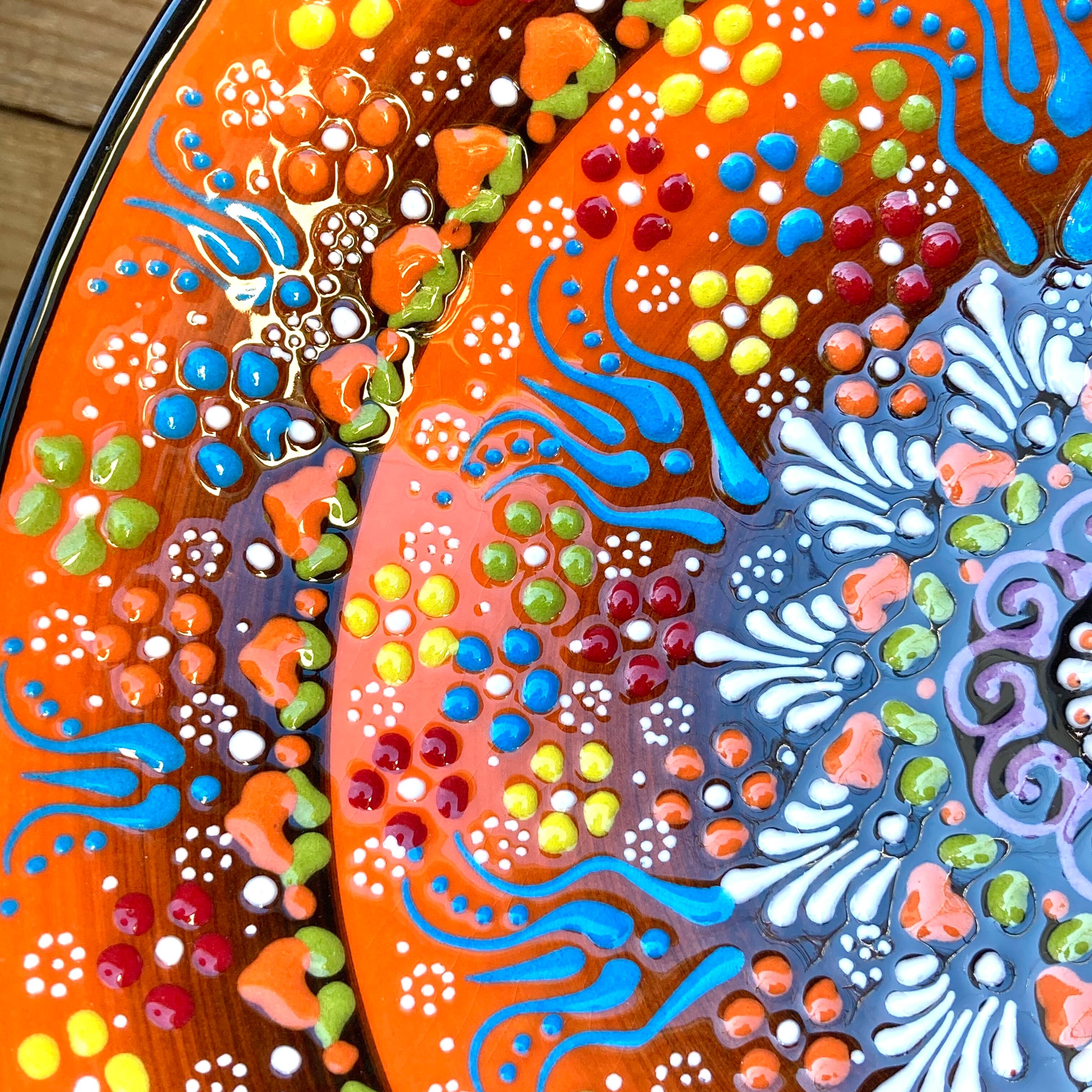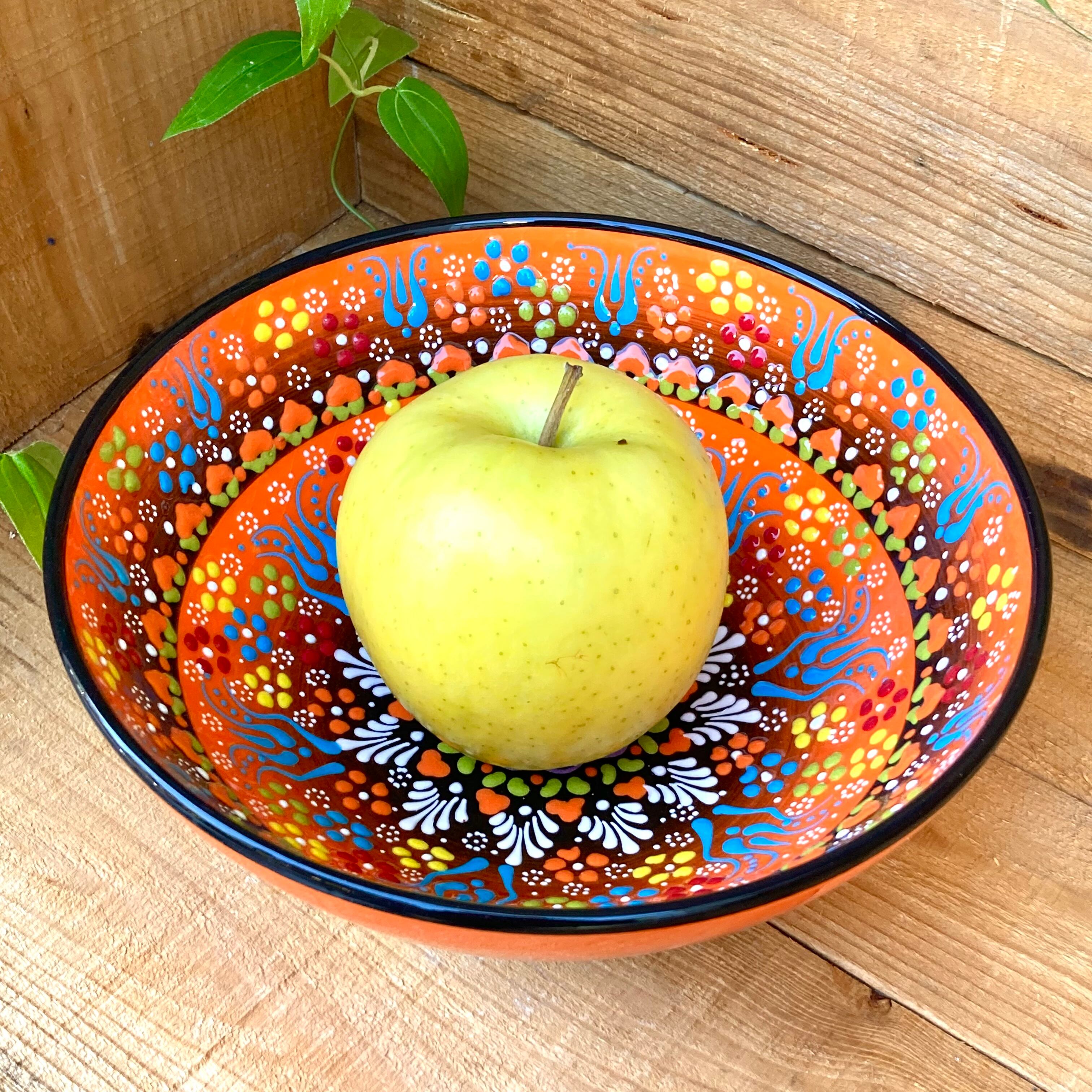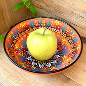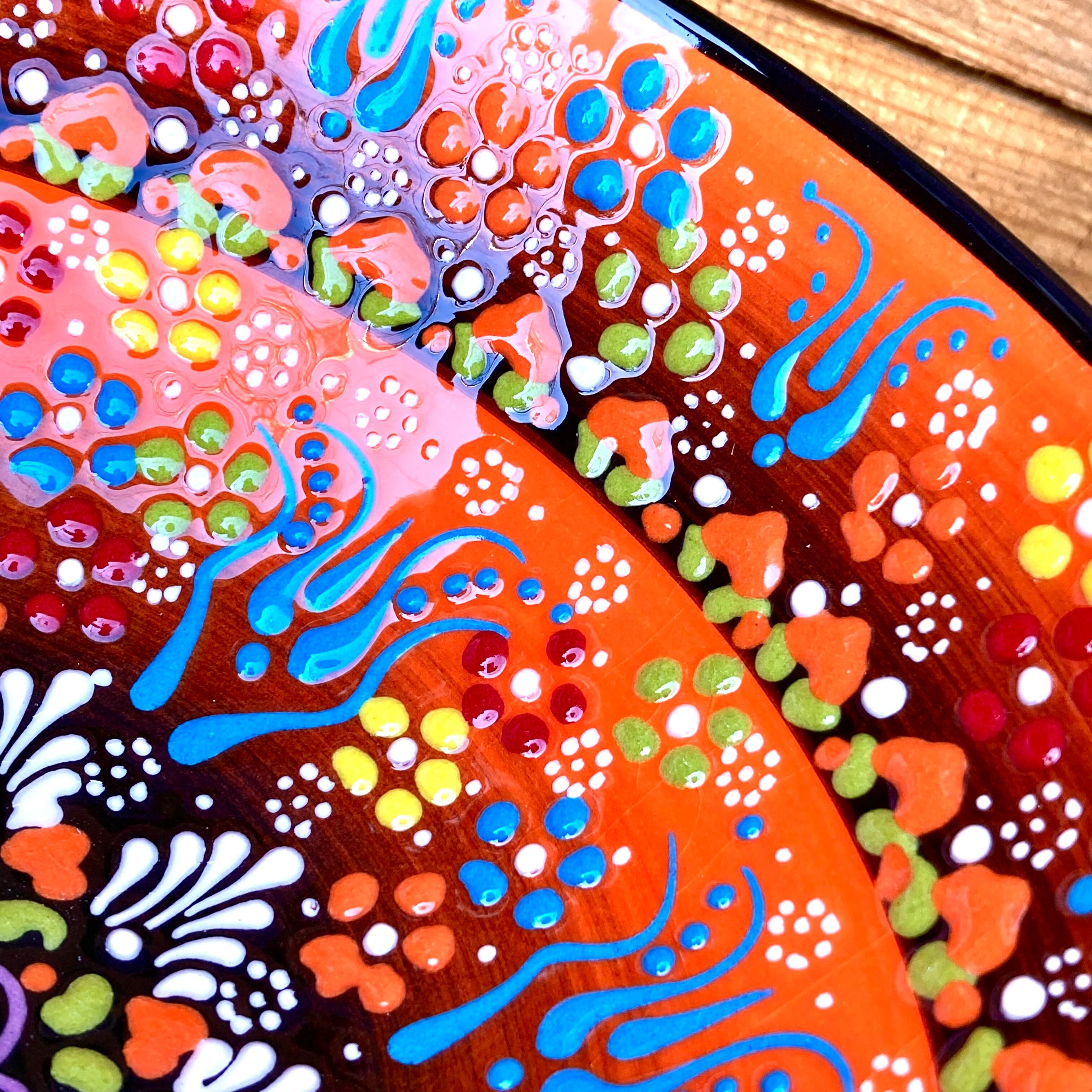 22cm【トルコ陶器】手描き ボウル 皿 *オレンジ*キュタフヤ陶器