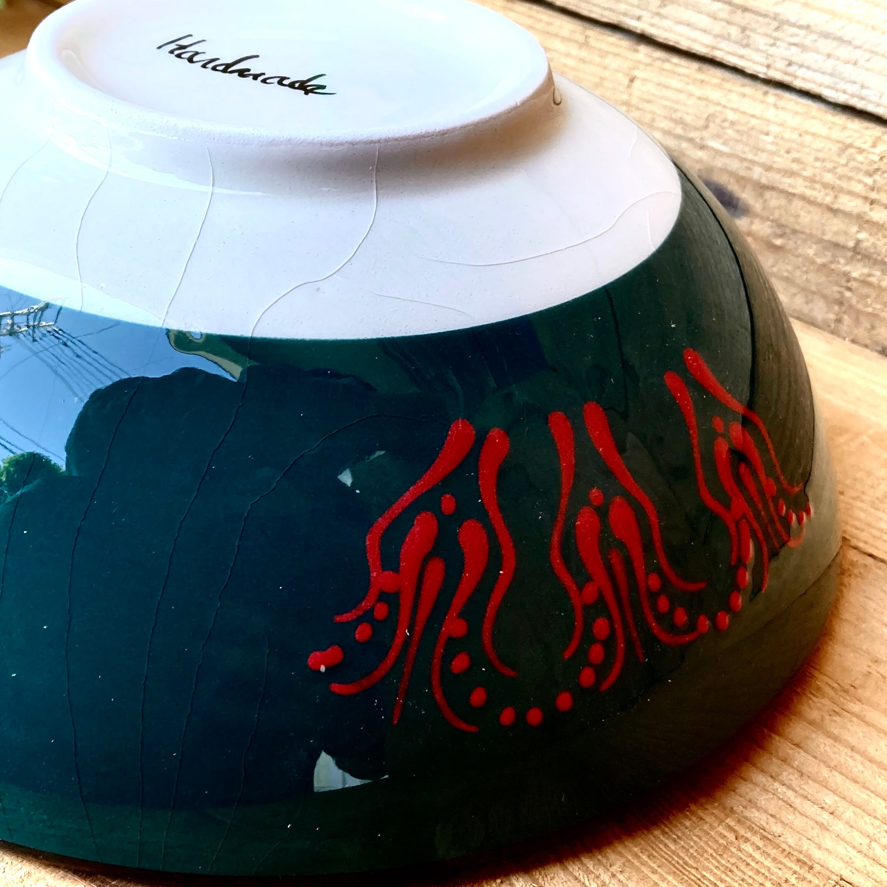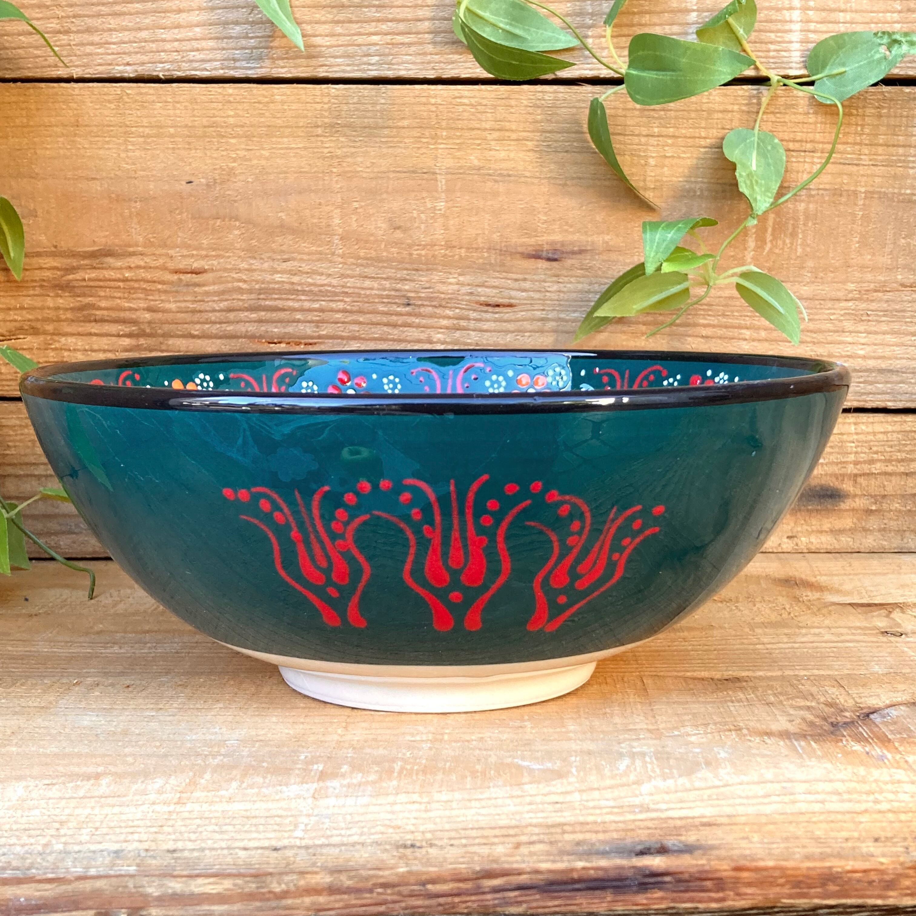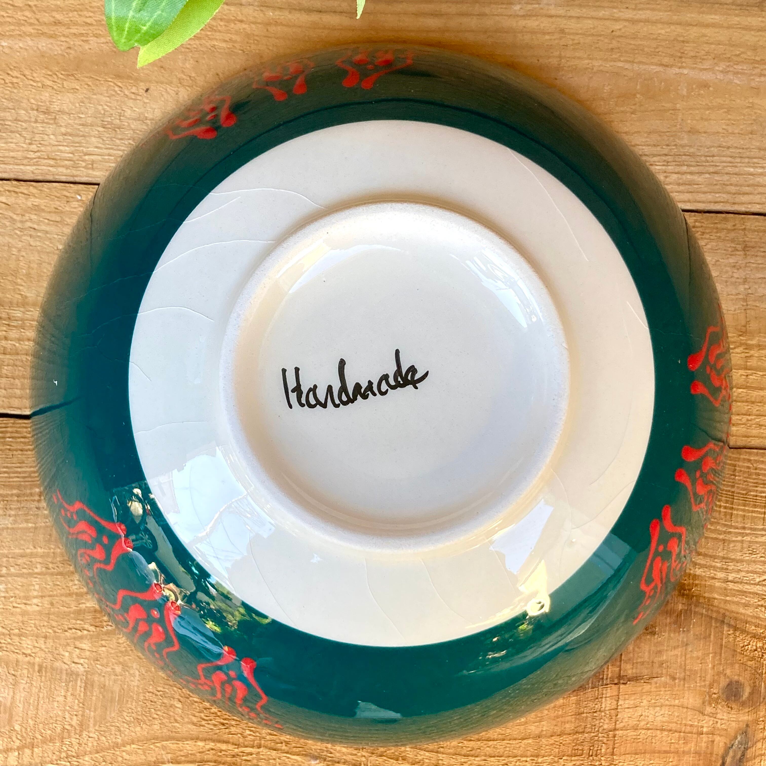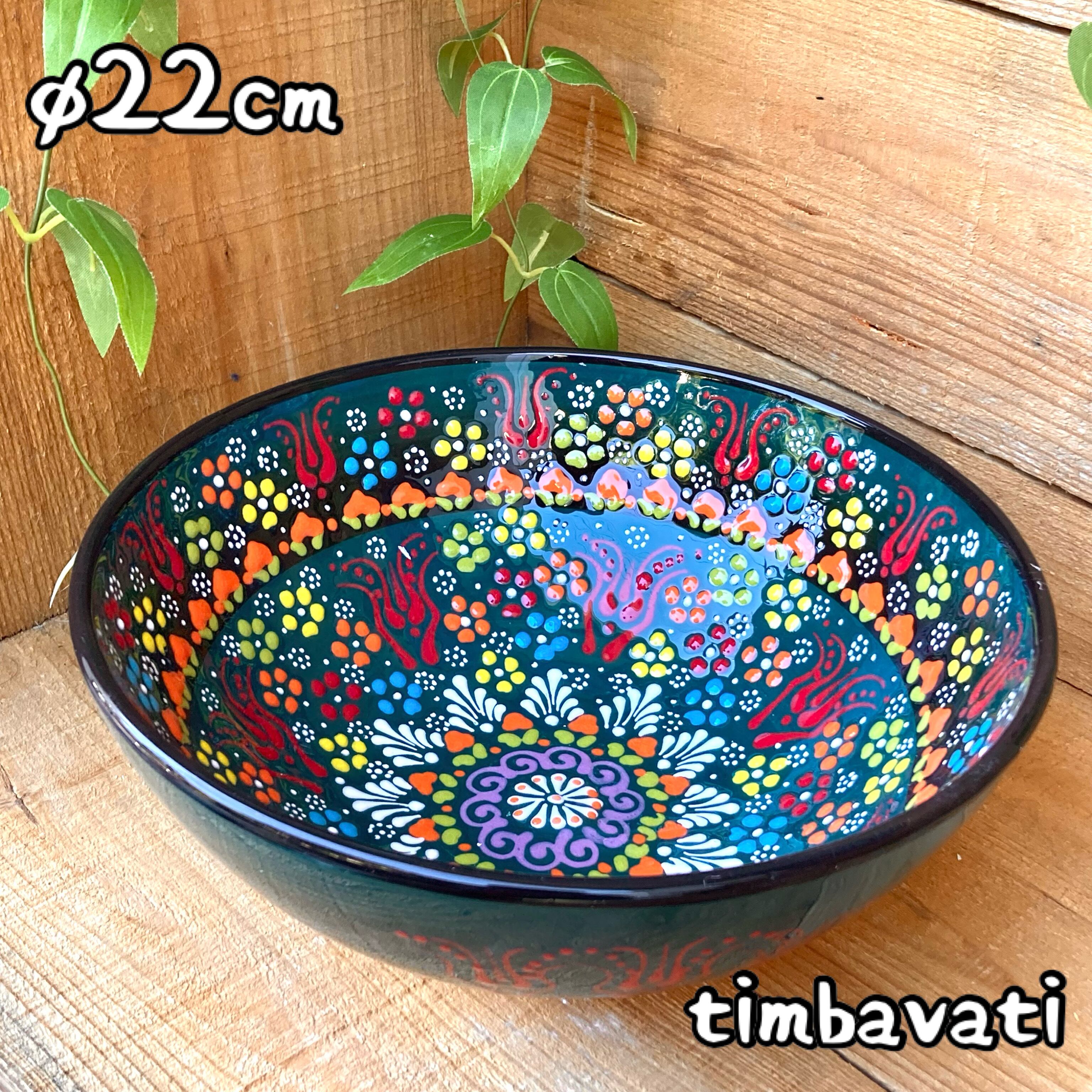 22cm【トルコ陶器】手描き ボウル 皿 *ダークグリーン*キュタフヤ陶器