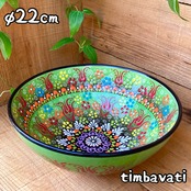 22cm【トルコ陶器】手描き ボウル 皿 *ライトグリーン*キュタフヤ陶器
