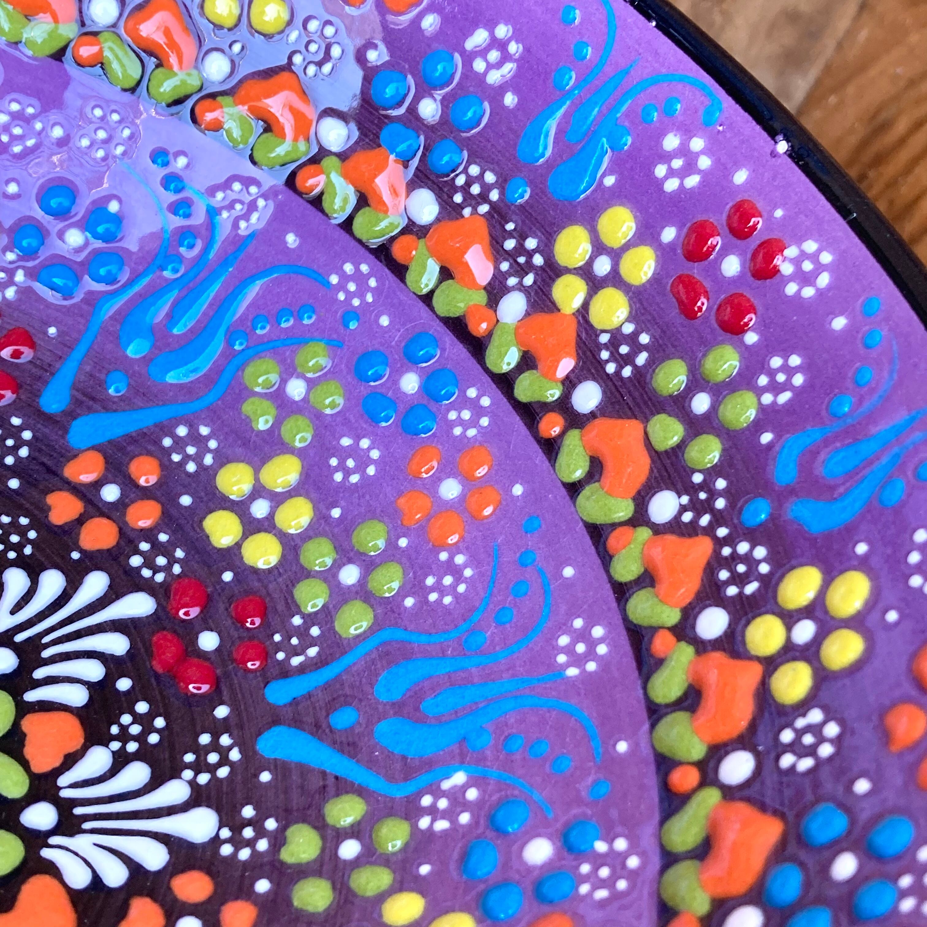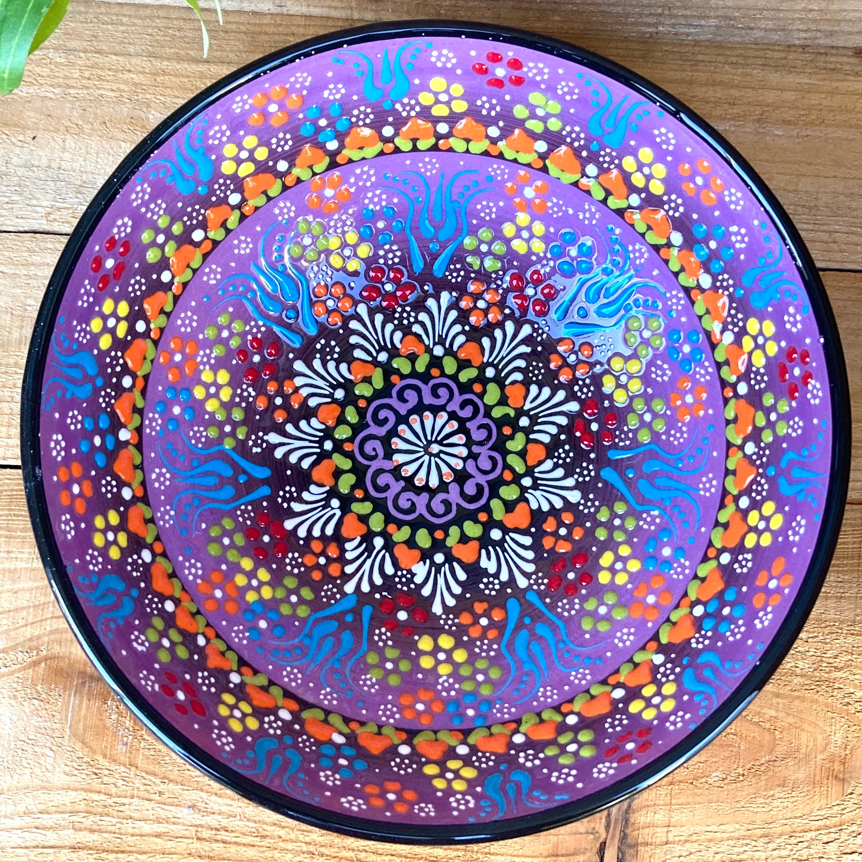 22cm【トルコ陶器】手描き ボウル 皿 *パープル*キュタフヤ陶器
