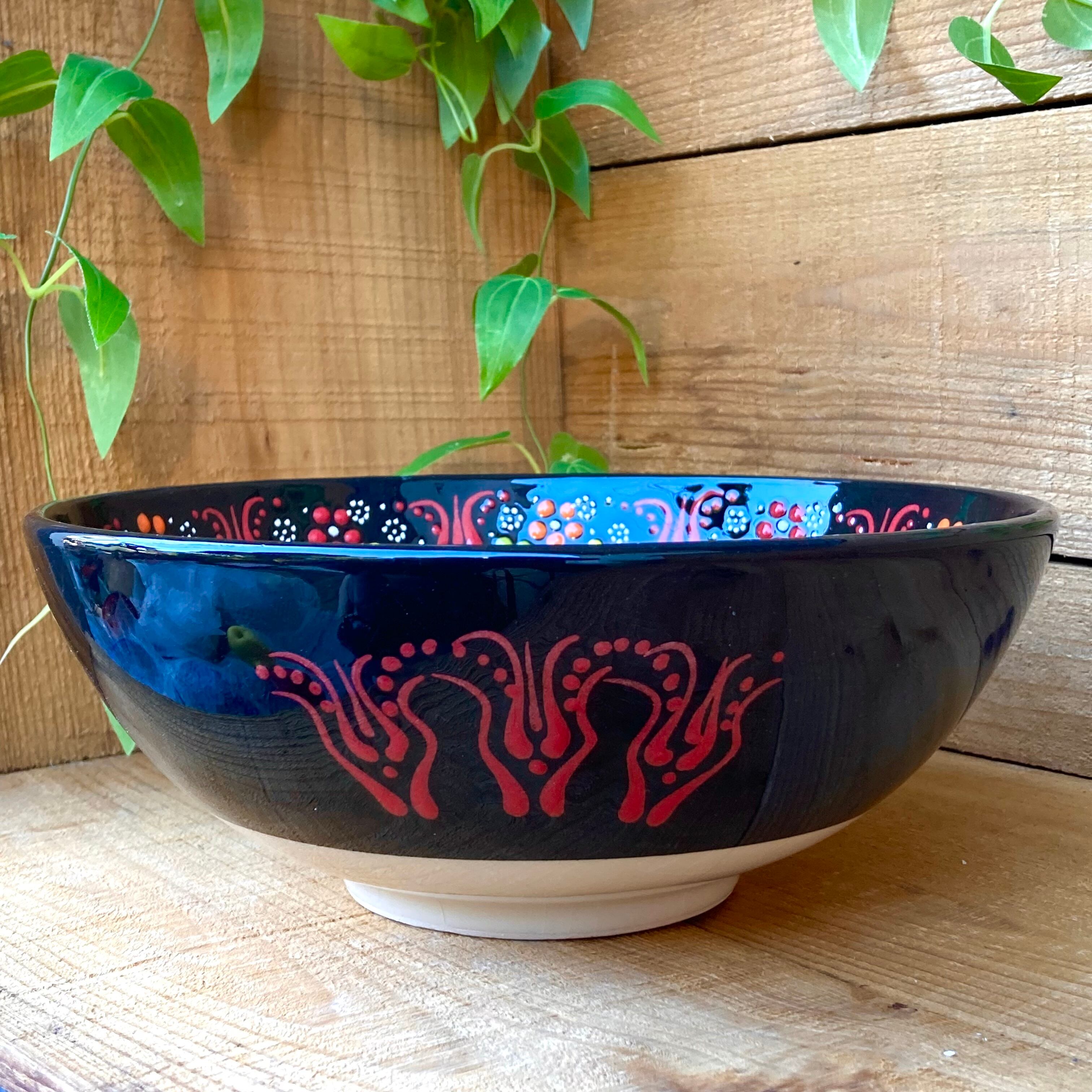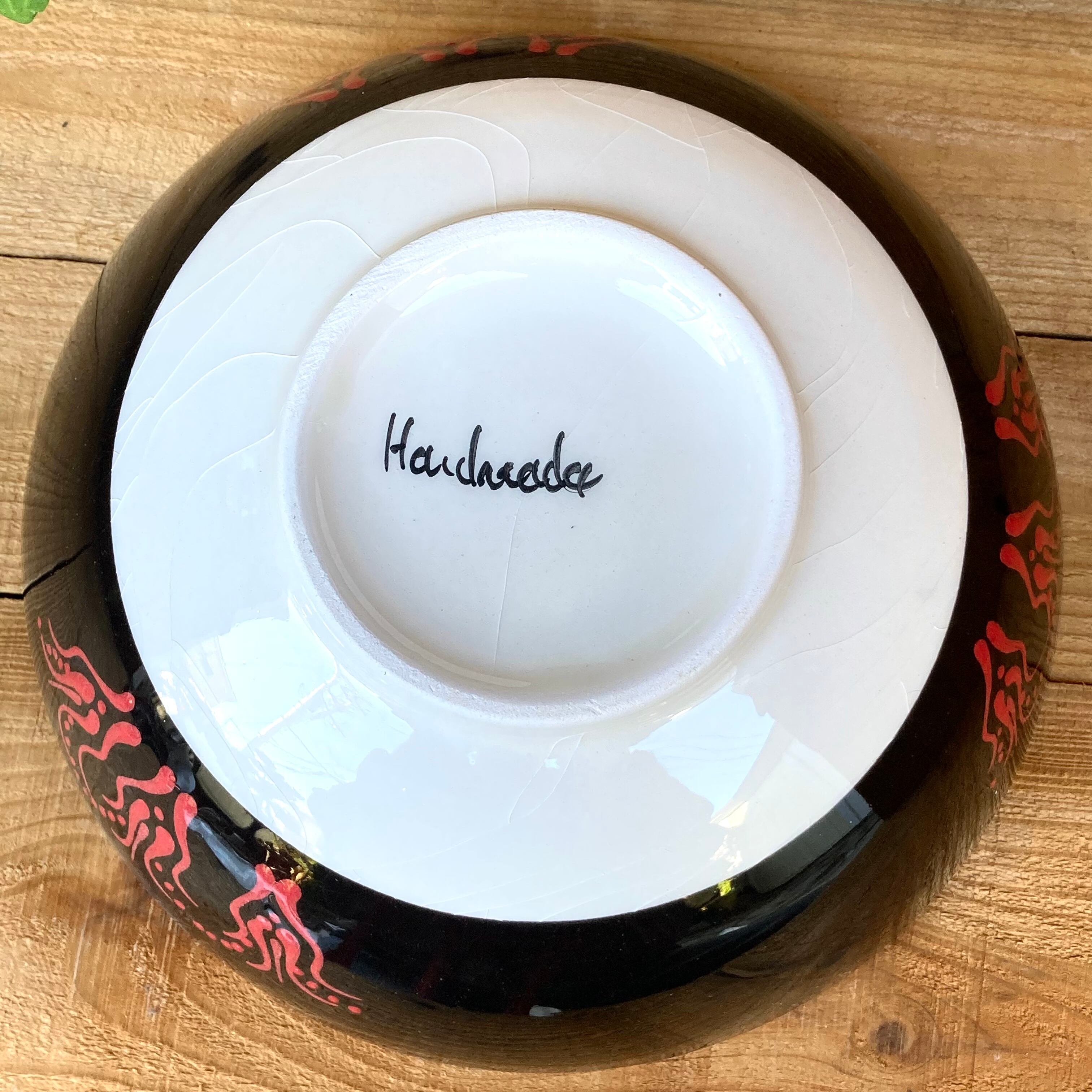 22cm【トルコ陶器】手描き ボウル 皿 *ブラック*キュタフヤ陶器