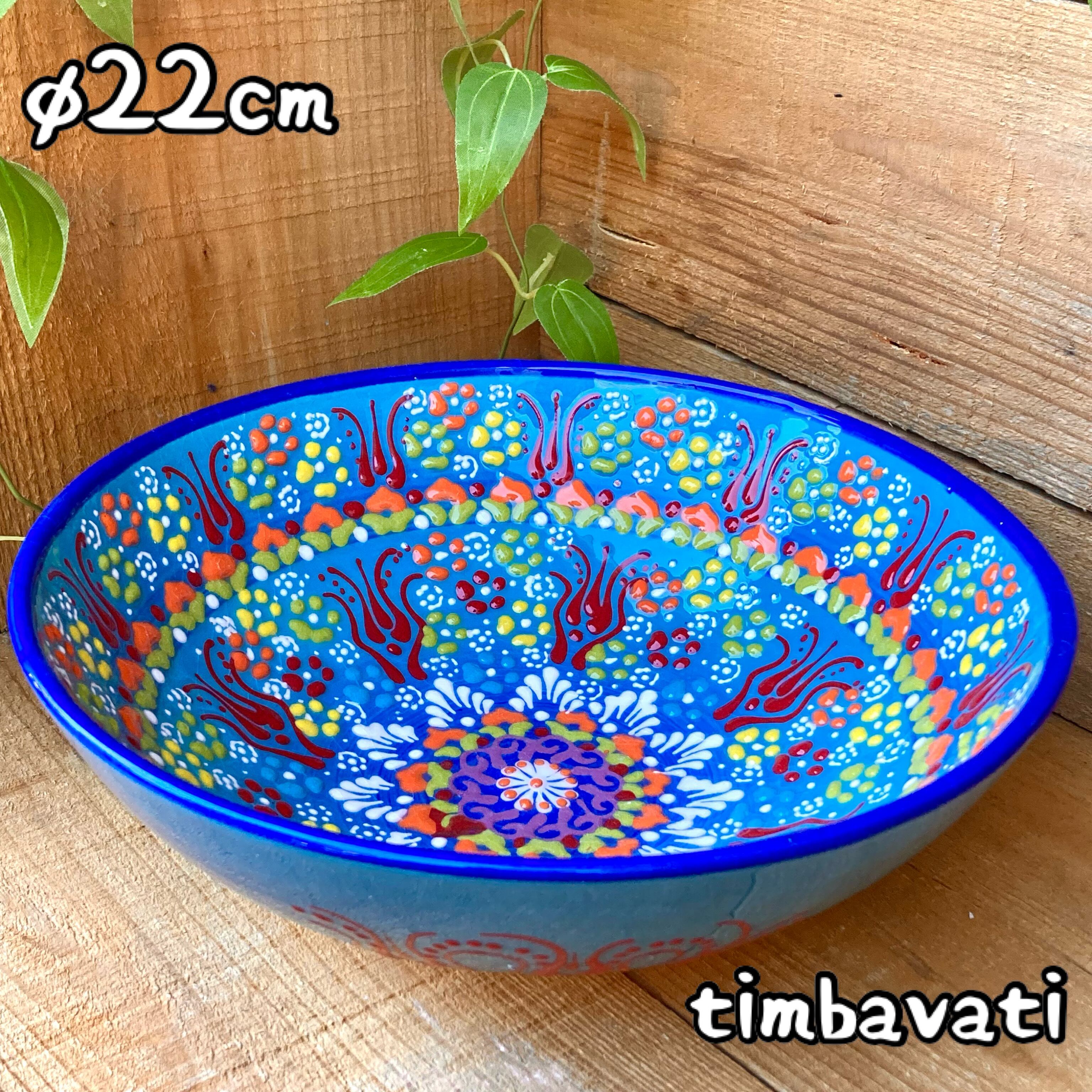 22cm【トルコ陶器】手描き ボウル 皿 *ライトブルー*キュタフヤ陶器