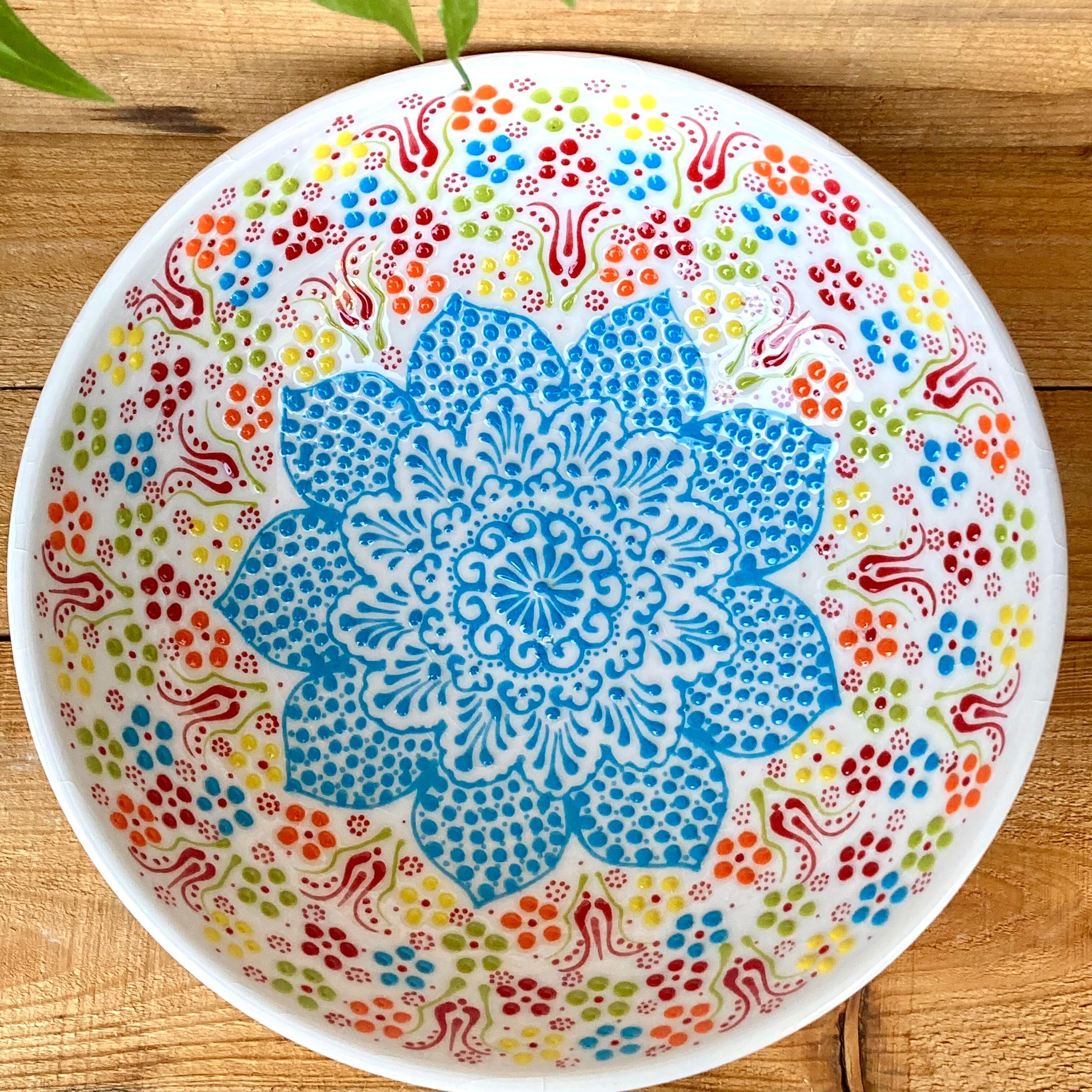 トルコの職人が1点1点絵付けしたカラフルなトルコセラミック陶器のボウル皿です