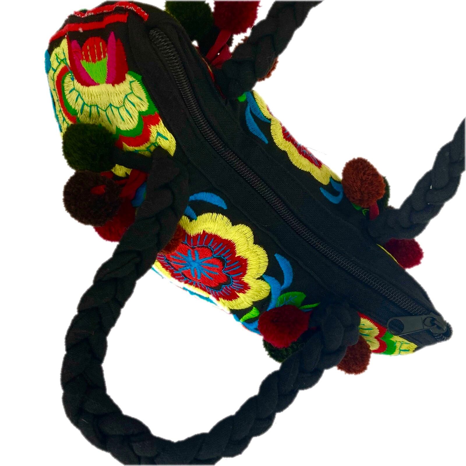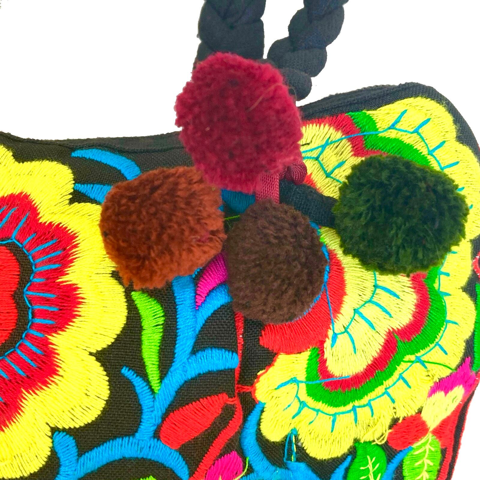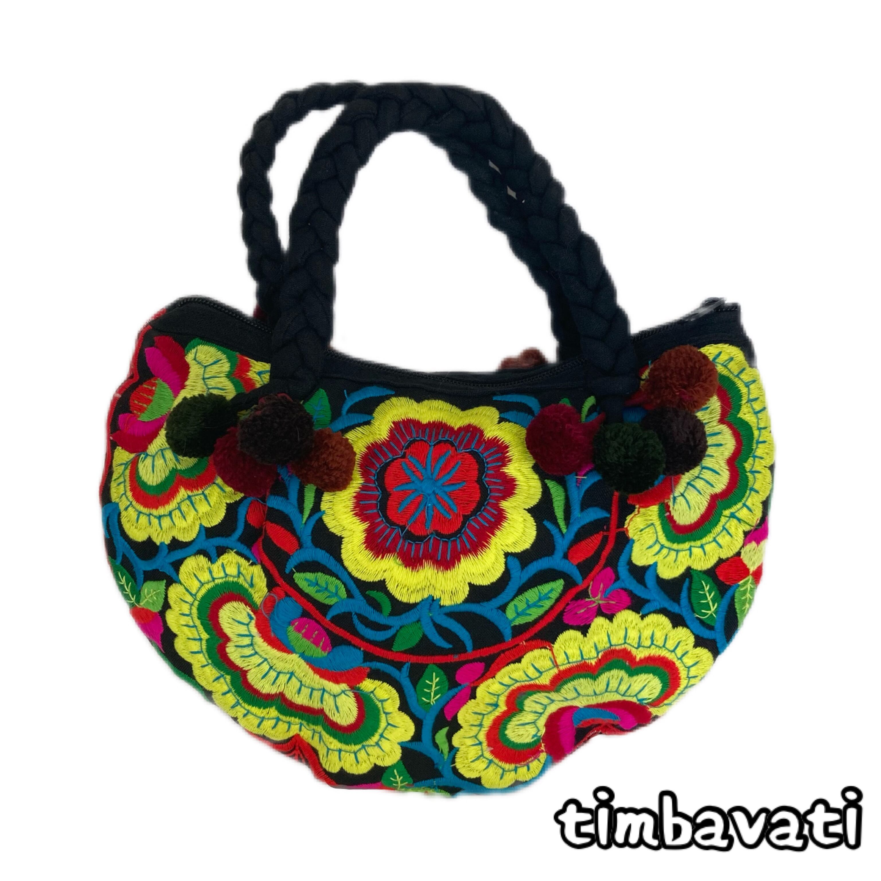 【タイ】モン族 刺繍 ポンポン ハンドバッグ