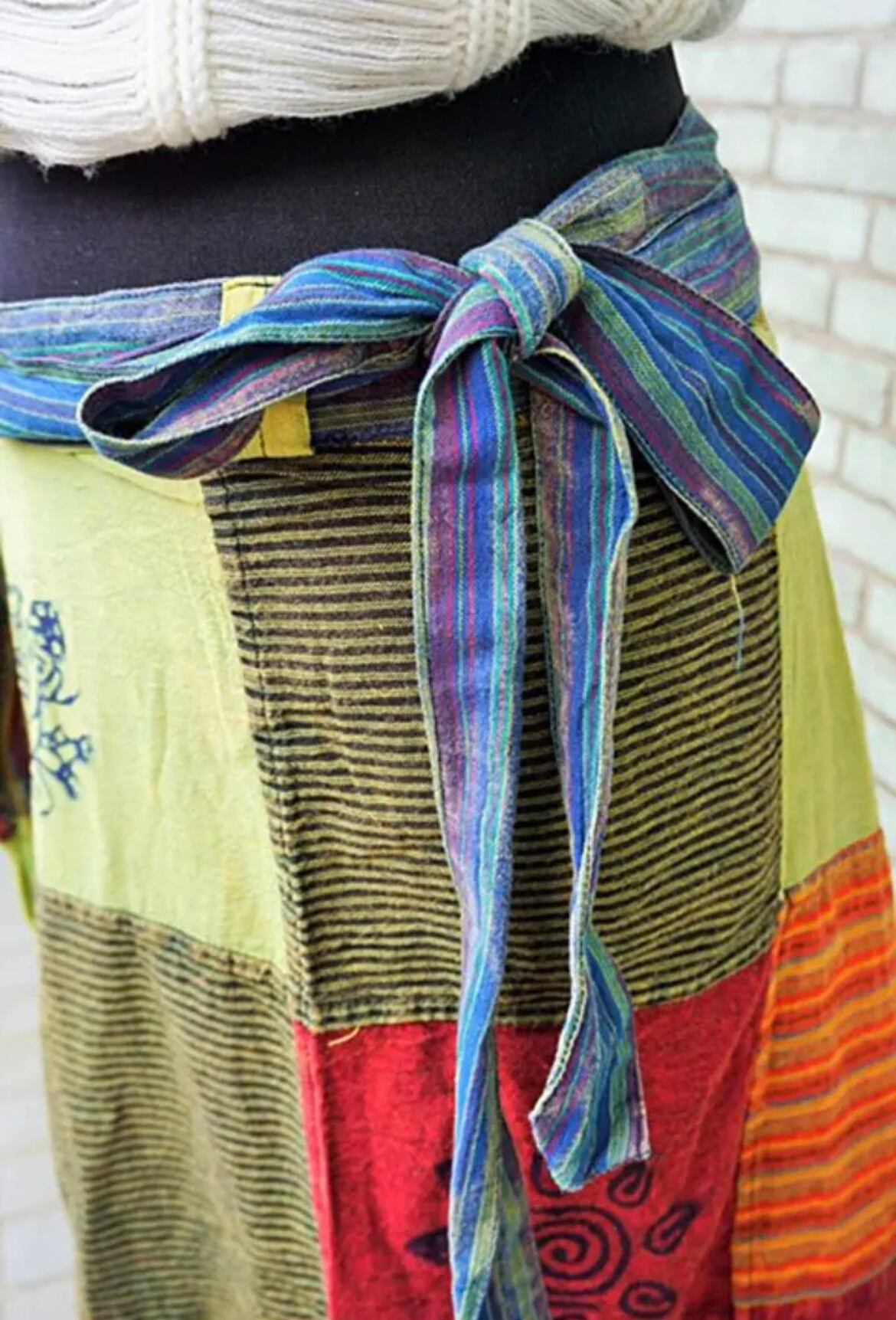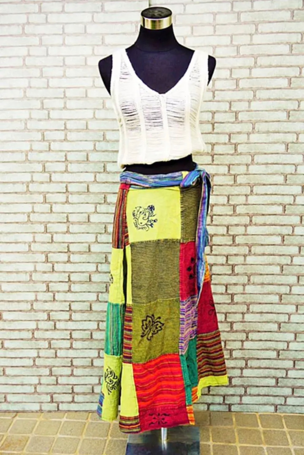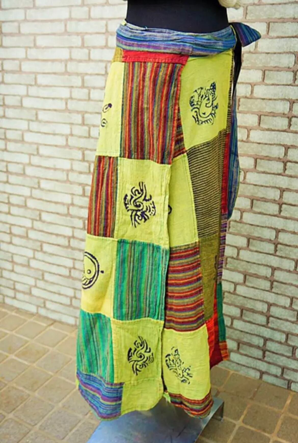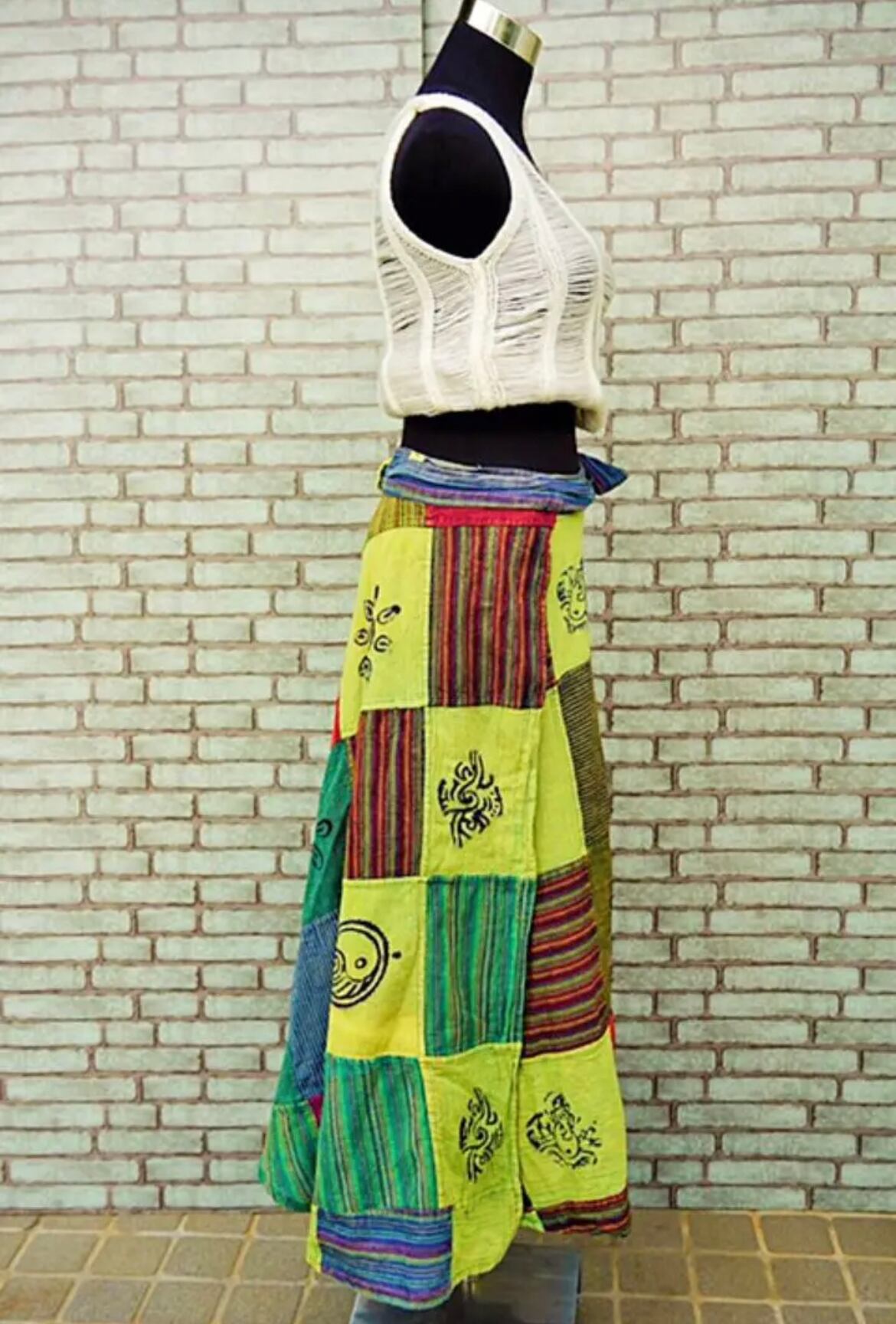【ネパール】ヒンドゥー柄 巻きスカート ロング丈 *フリーサイズ*